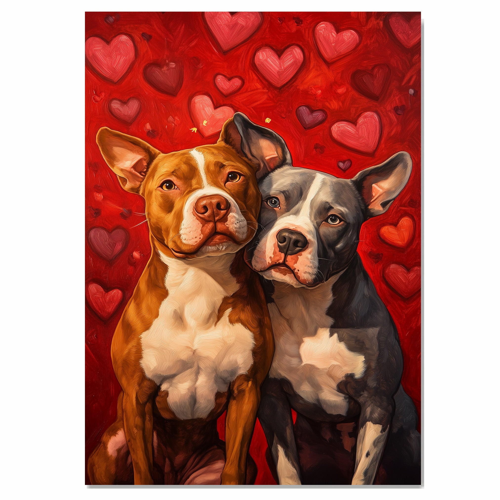 Celebrate strength, affection, and loyalty with this beautiful painting featuring a Pitbull couple against a vibrant red...