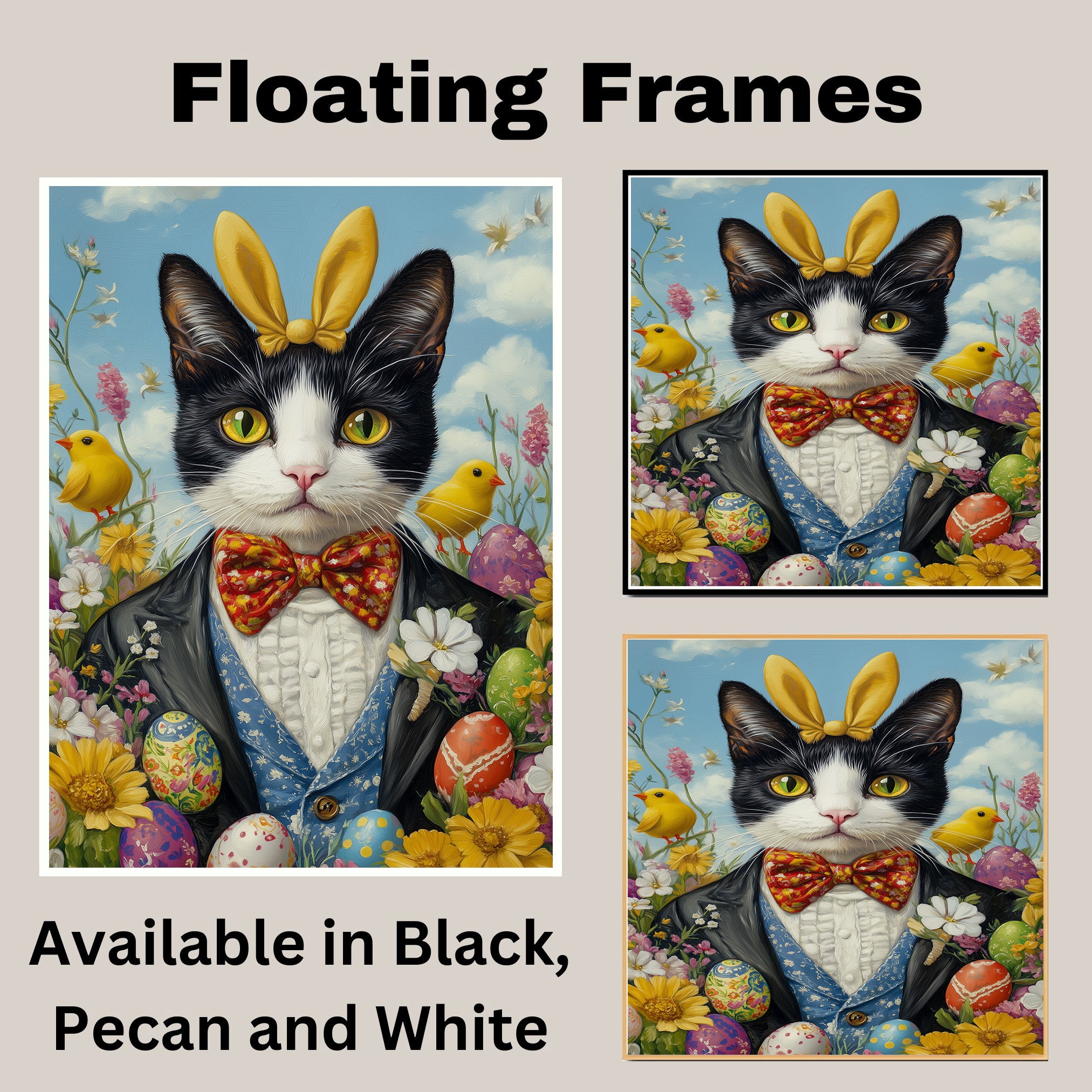 Playful Charm: Black and White Tuxedo Cat Dressed in a Vibrant Easter Ensemble on Ready to Hang 1.5" Thick Canvas Wrap, Floating Framed Canvas, Flat Rolled Canvas