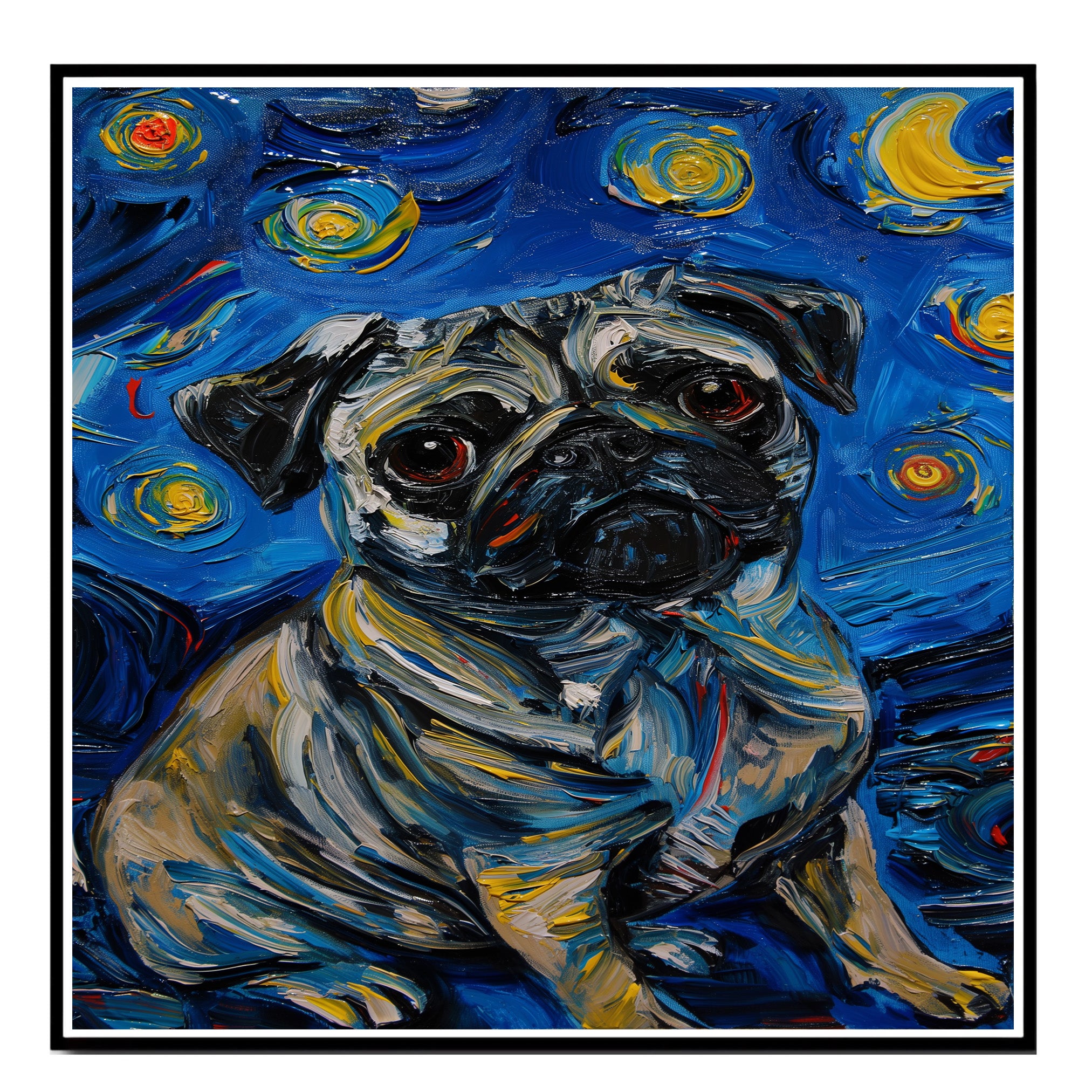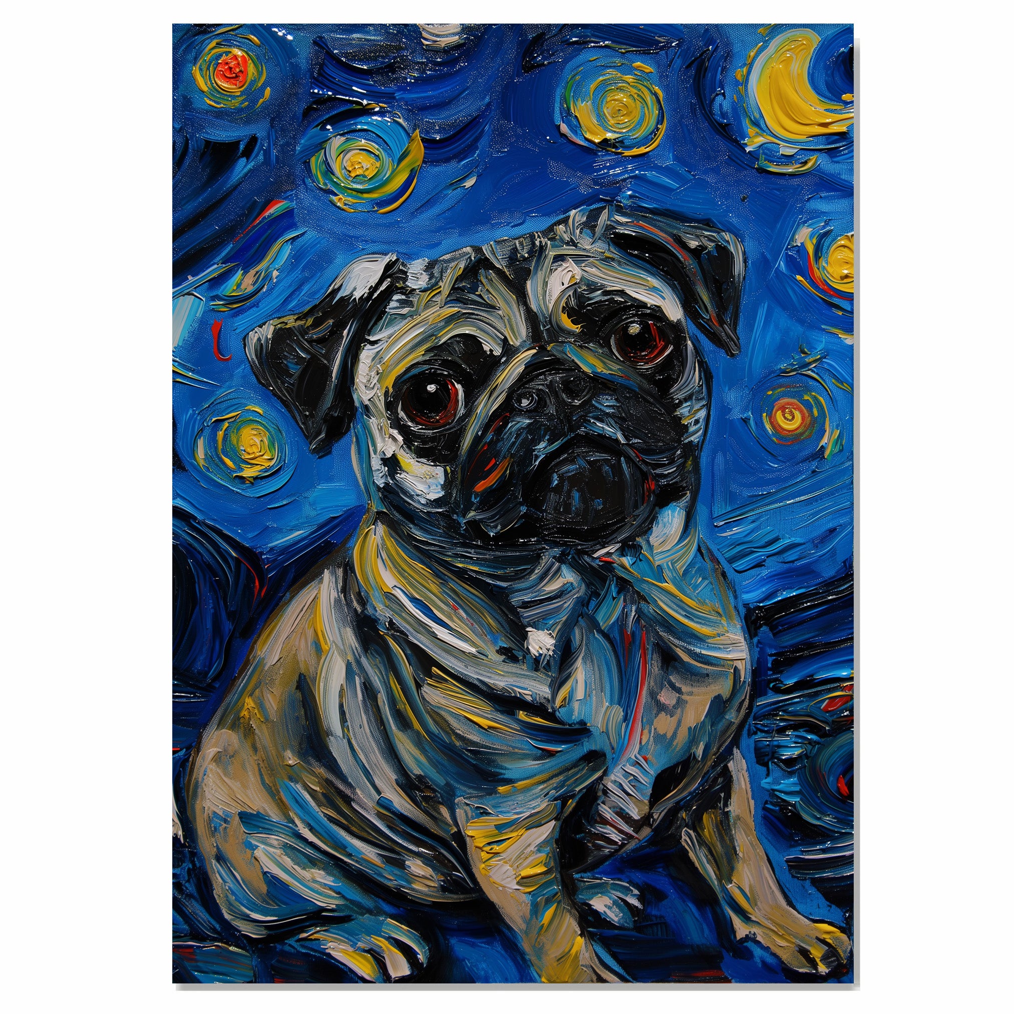 This stunning artwork combines the charm of a pug with the iconic swirls of Van Gogh’s Starry...