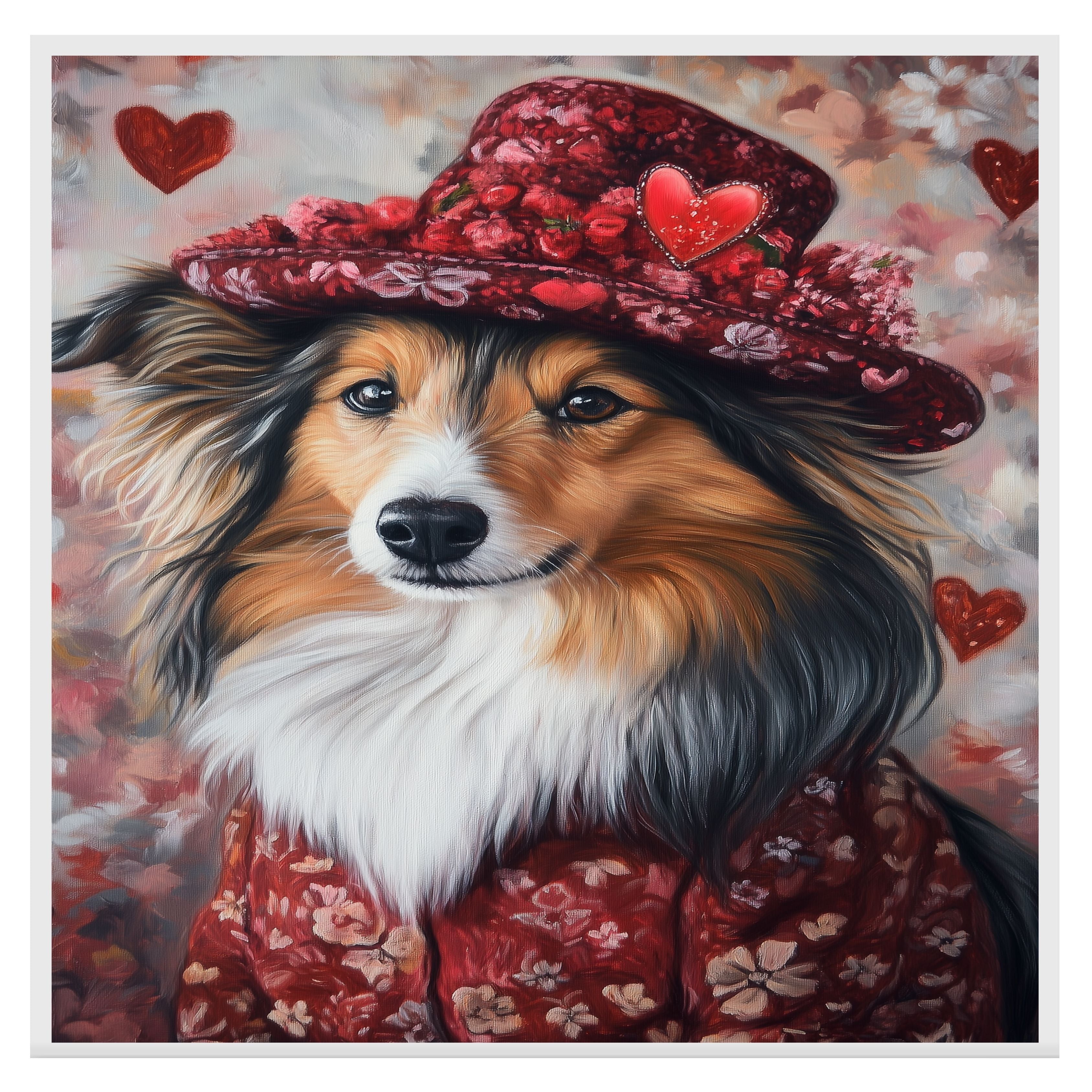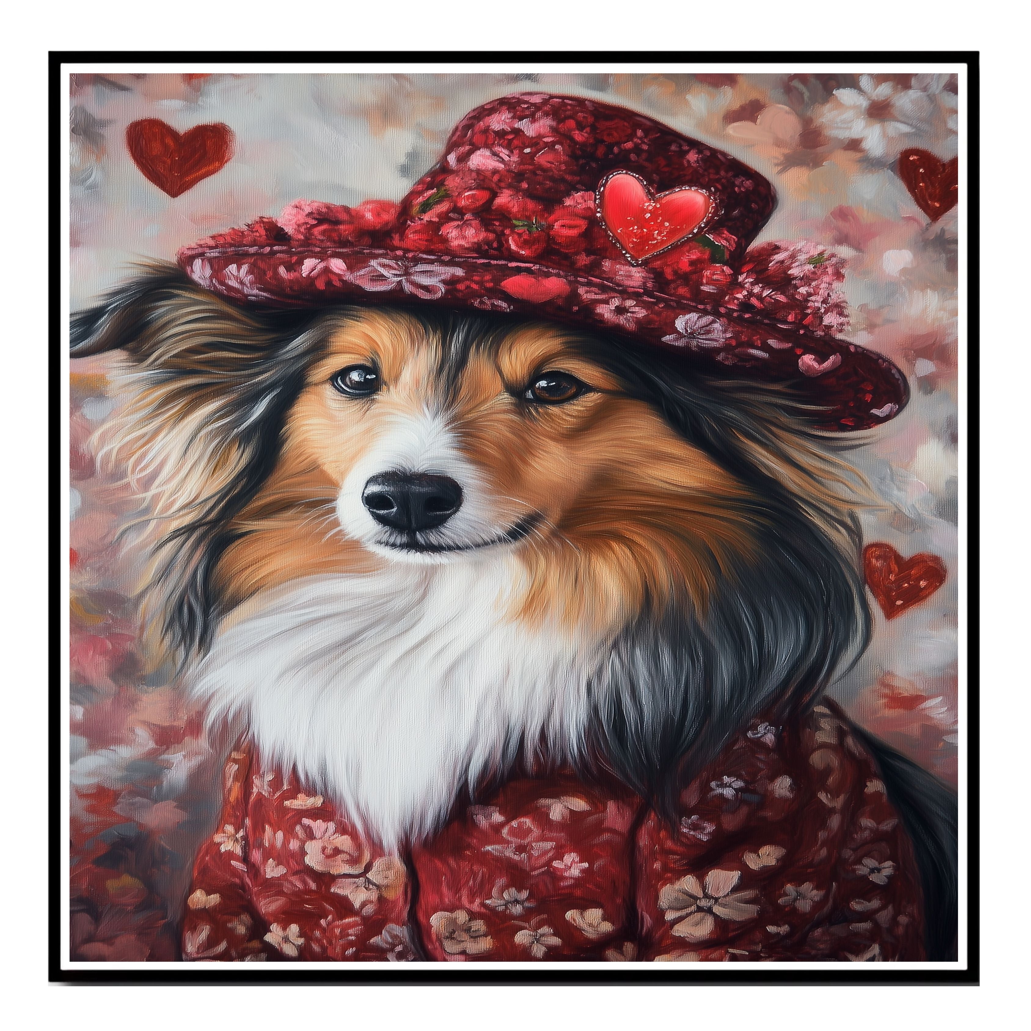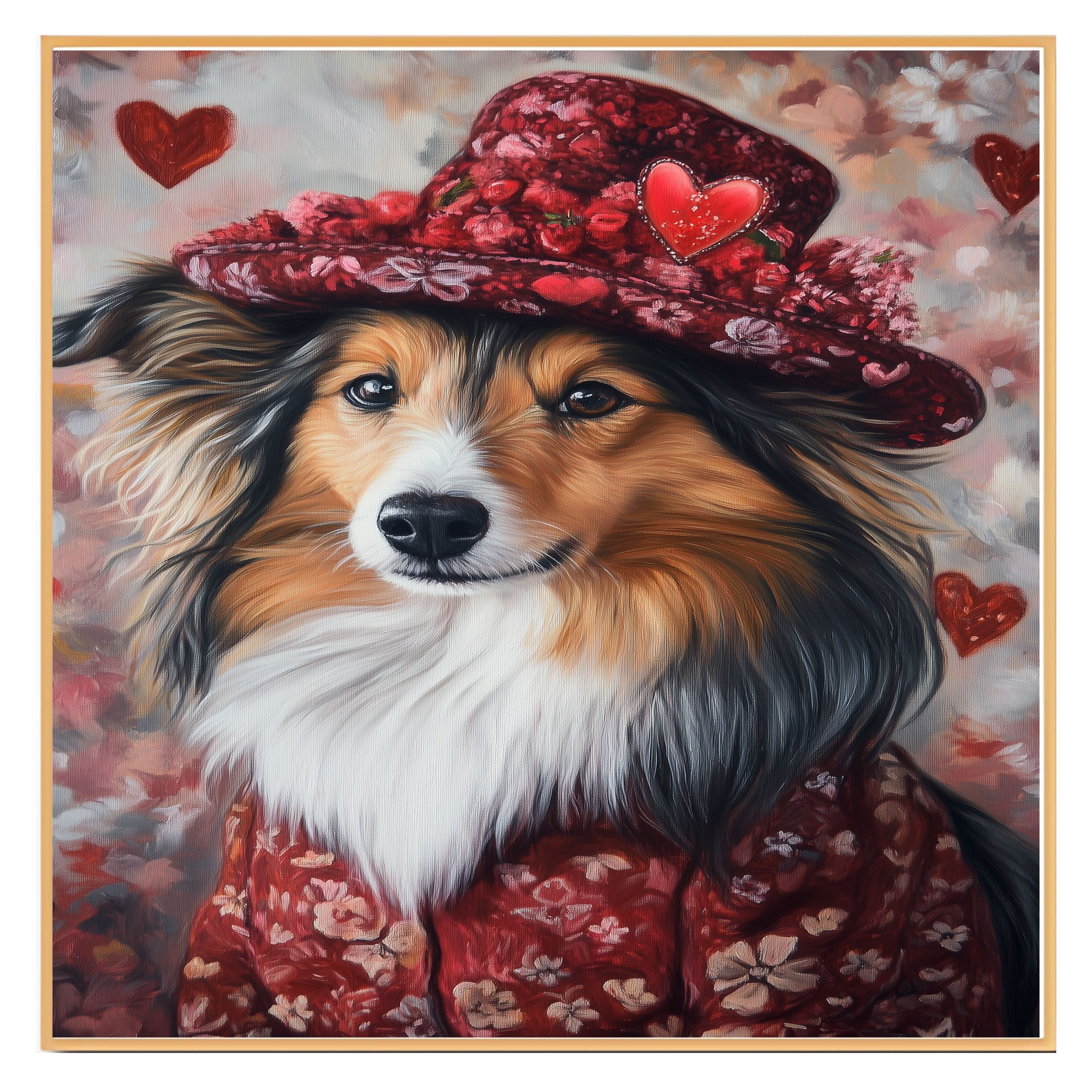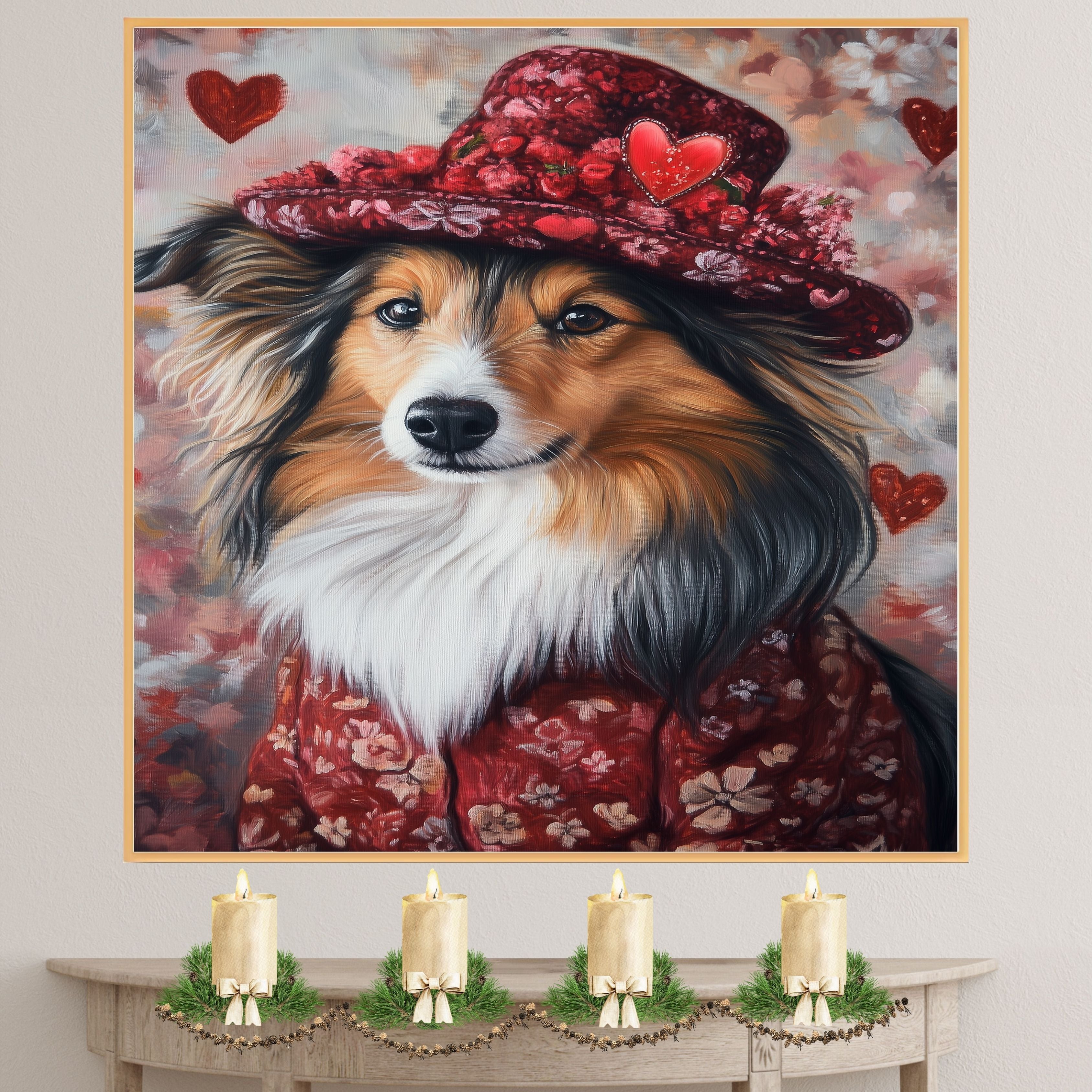 "Refined Elegance" Canvas beautifully showcases the dignified charm of a Shetland Sheepdog dressed in a striking red suit and matching hat. This sophisticated portrait blends classic style with the Shelties natural grace, creating an artwork that exudes poise and refinement. The bold red hues and exquisite detailing make this piece a standout addition to any space. Available on a 1.5" thick canvas wrap, floating framed canvas, or as a flat rolled canvas, this artwork is perfect for dog lovers, art enthusiasts, and those who appreciate timeless elegance in their decor. A distinguished and memorable gift for any occasion.