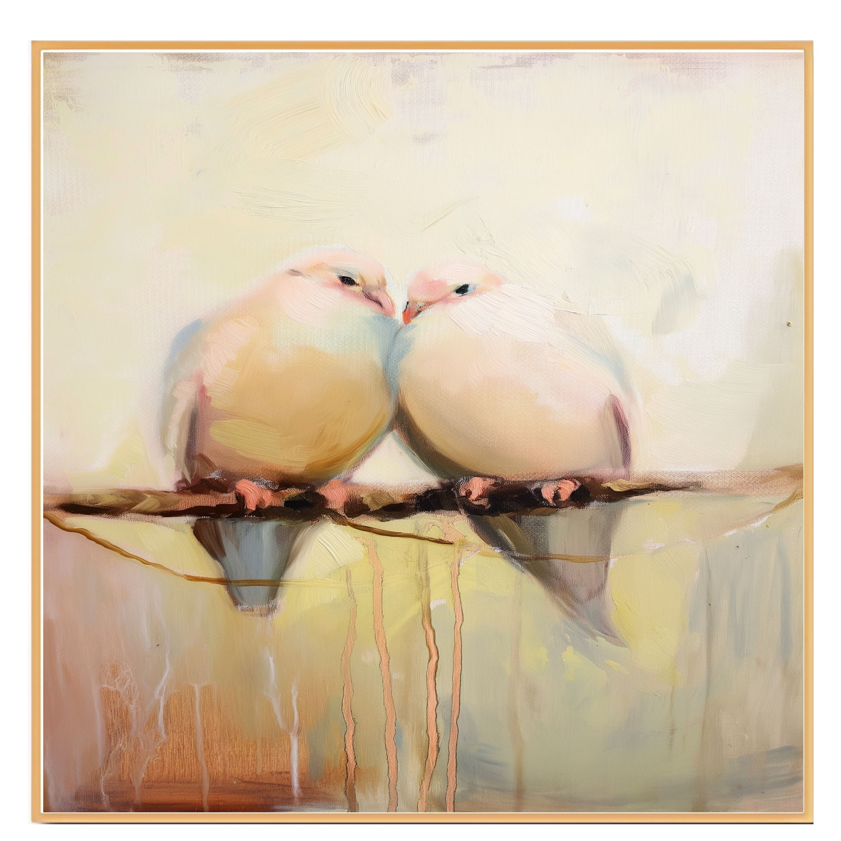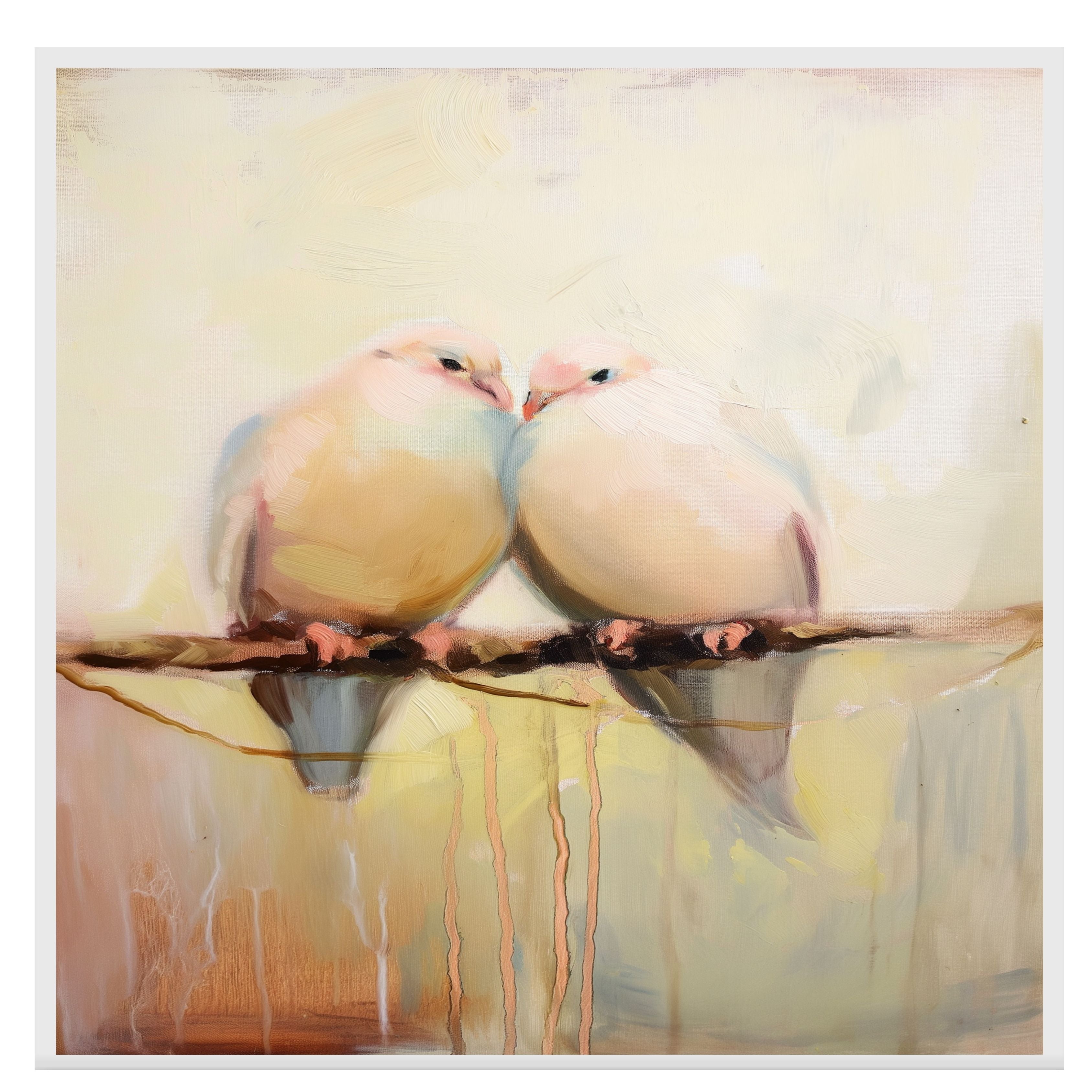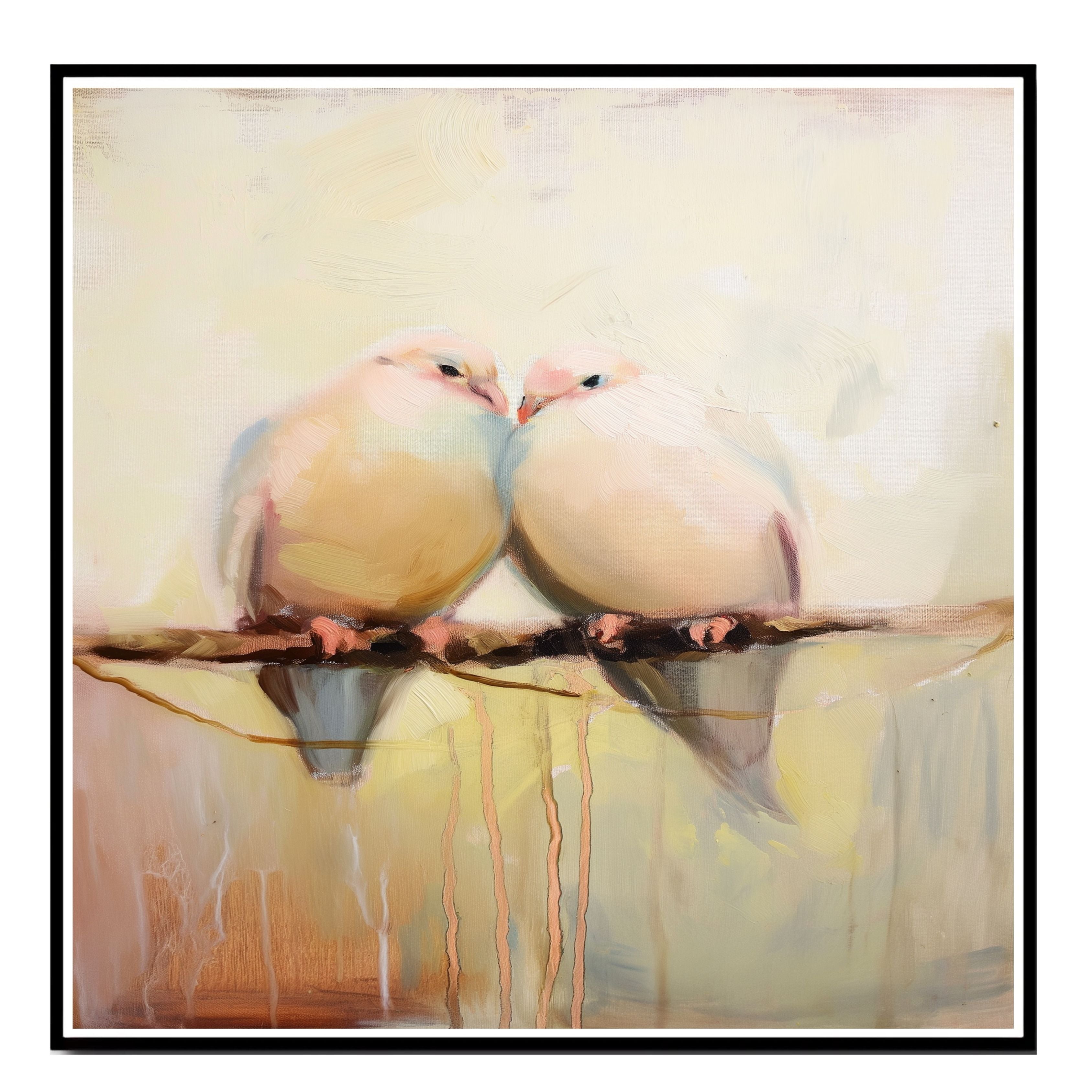 This graceful artwork features two doves nestled together in an embrace, rendered in a soft pastel palette with minimal details. Perfect for symbolizing peace, love, and harmony, this piece adds a gentle, calming presence to any room. Ideal for bedrooms, nurseries, or as a heartfelt gift for weddings, anniversaries, or loved ones.