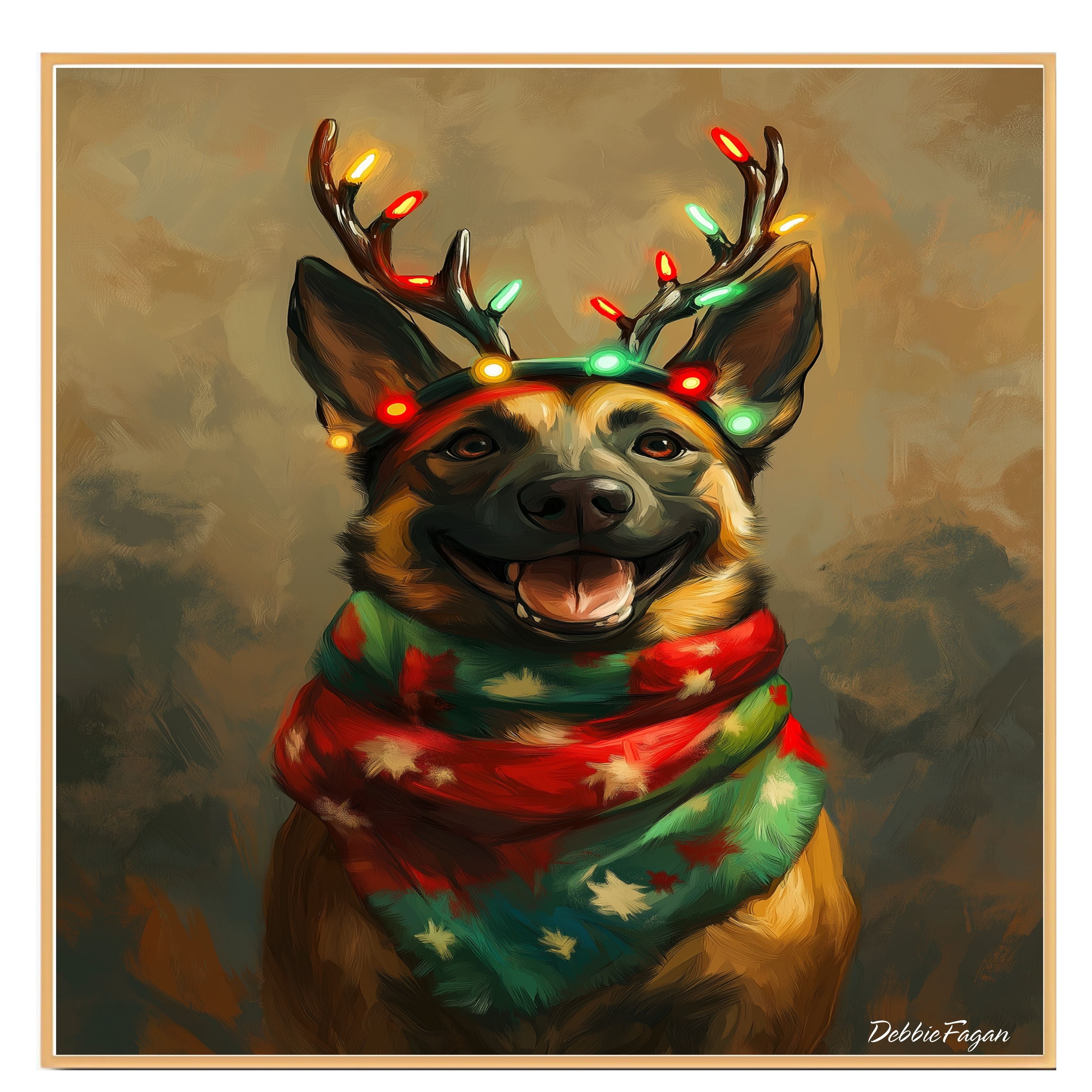 Our Belgian Malinois Christmas Glow Canvas adds a touch of rustic charm and holiday cheer to your space, featuring an adorable Belgian Malinois adorned with lighted antlers and a festive scarf, set against a cozy, rustic backdrop. Available on a 1.5" thick canvas wrap, floating framed canvas, or as a flat rolled canvas, this heartwarming artwork titled Belgian Malinois Christmas Glow perfectly captures the festive spirit of the season. With its delightful combination of holiday magic and rustic elegance, this piece brings a joyful glow to your decor and serves as a cheerful, eye-catching focal point in any room. Ready to hang and spread the holiday warmth!