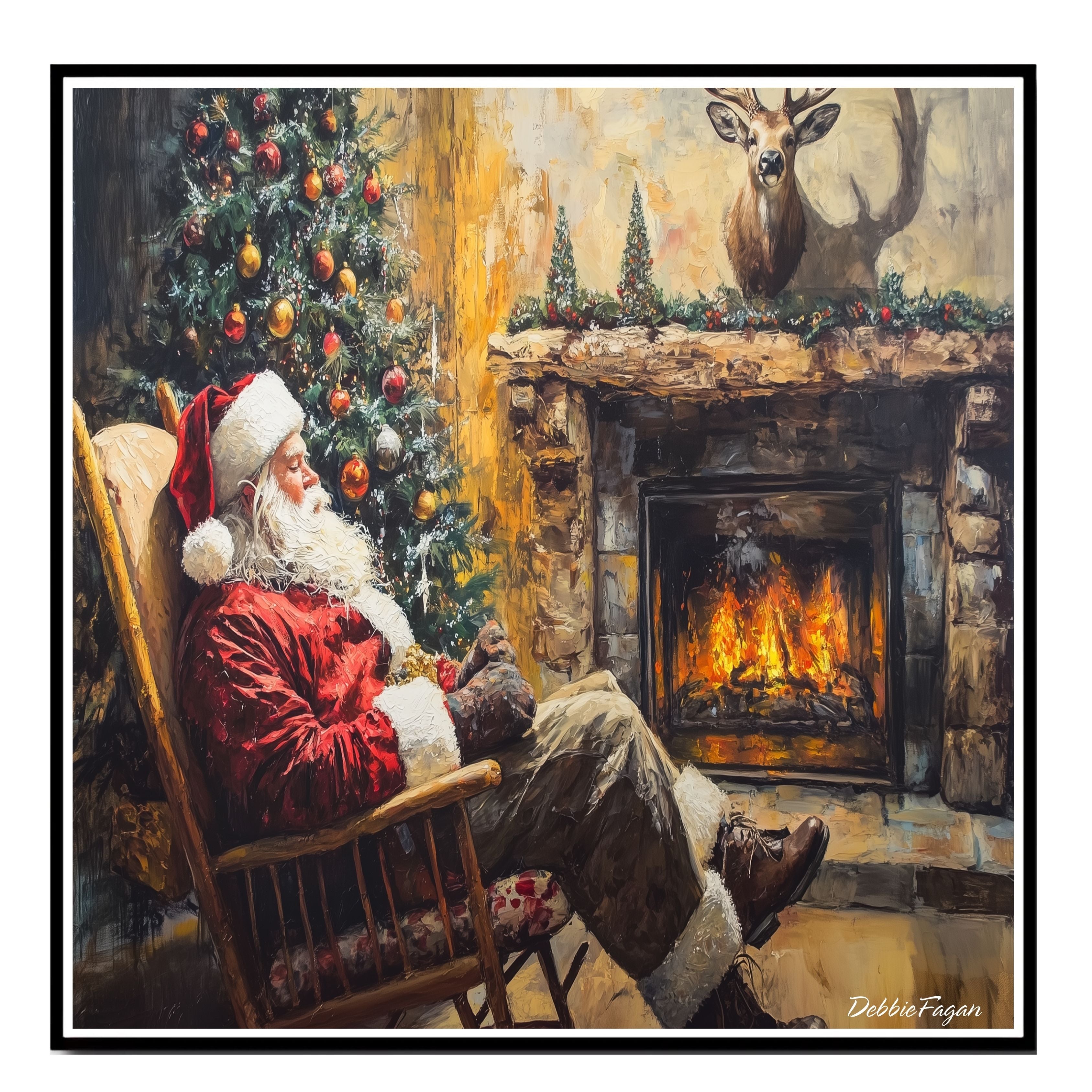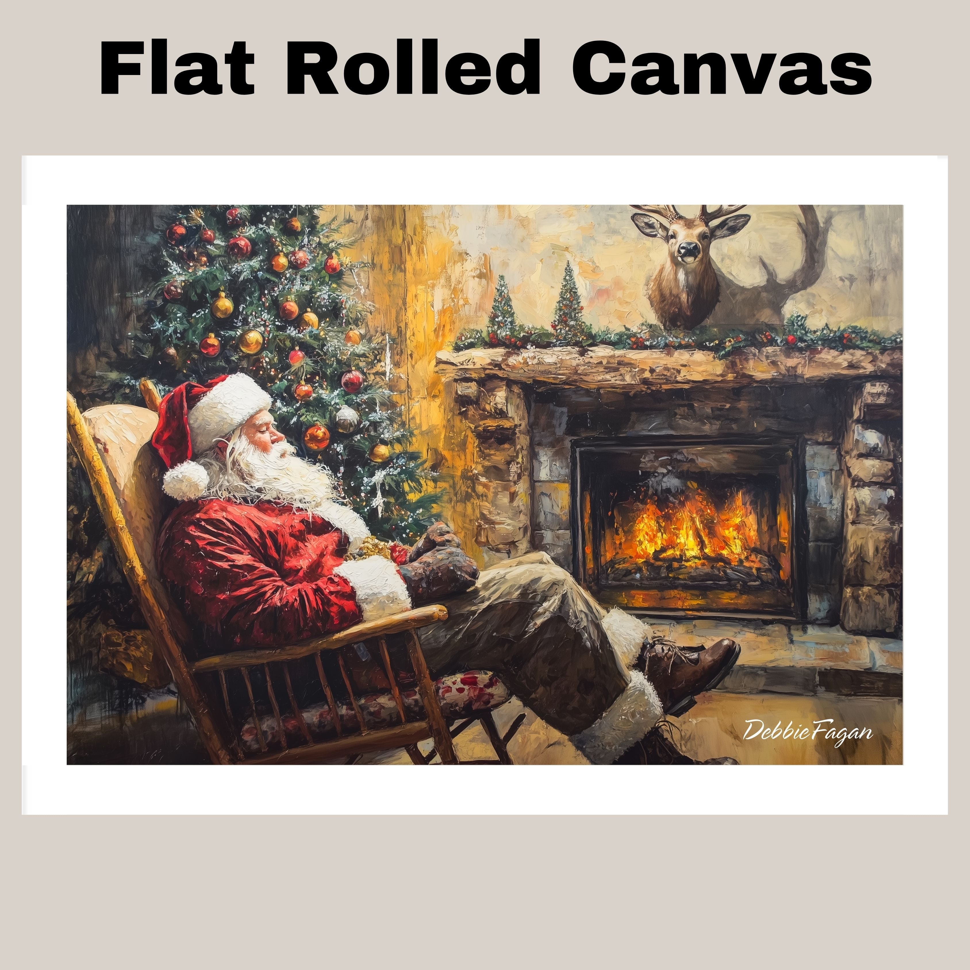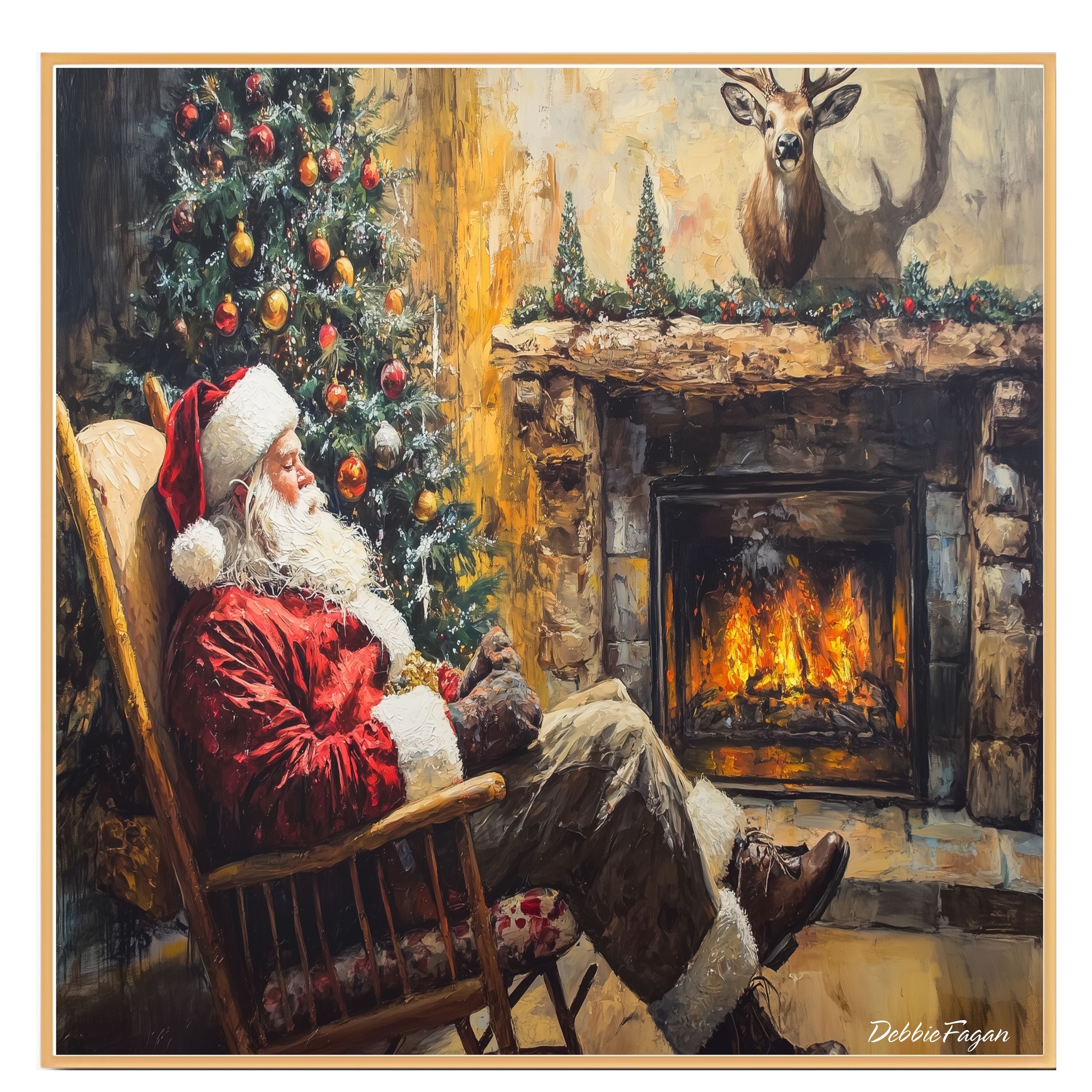 Santa Claus by the Fireplace with Stockings – Cozy Christmas Wall Art Print on Ready to Hang 1.5" Thick Canvas Wrap, Floating Framed Canvas, Flat Rolled Canvas