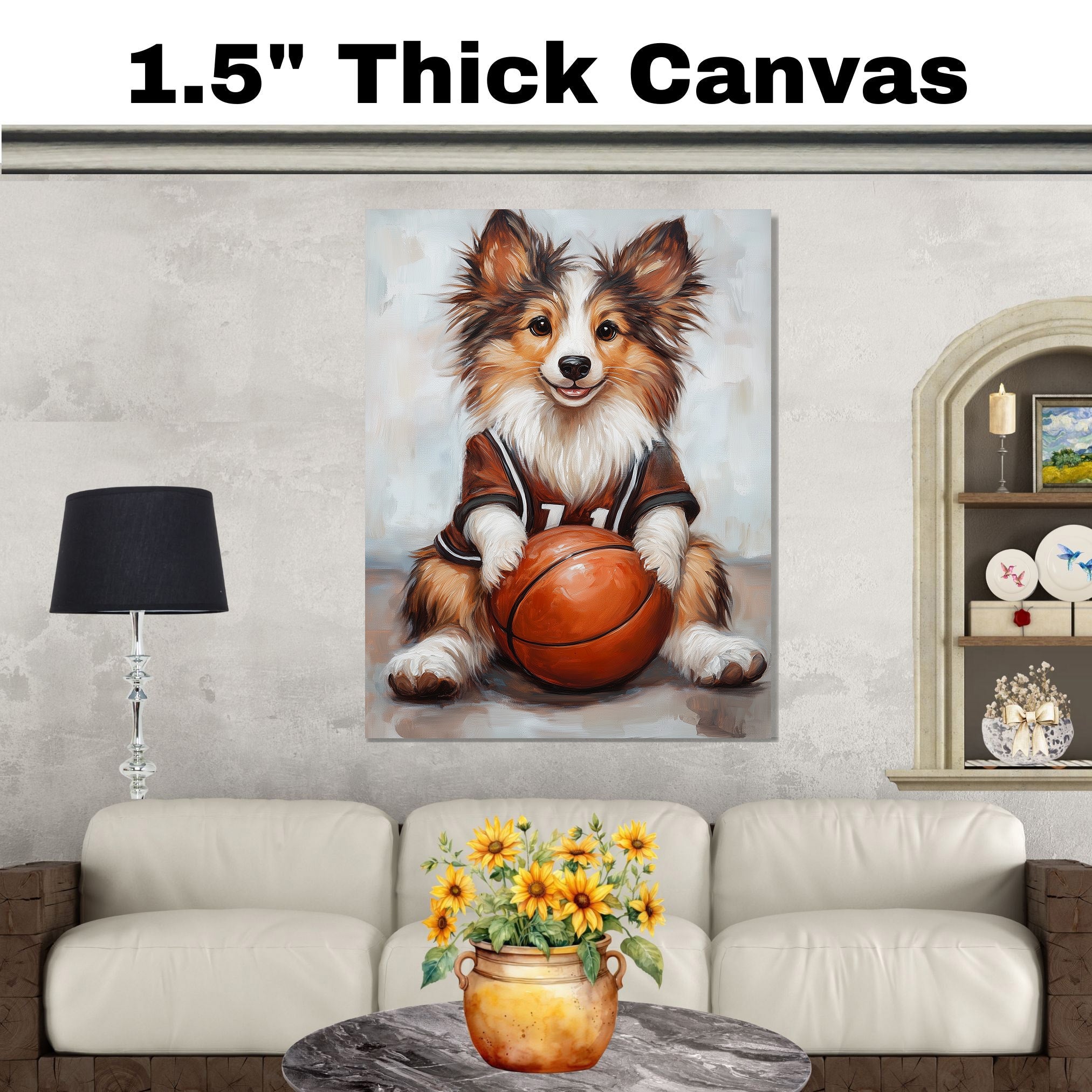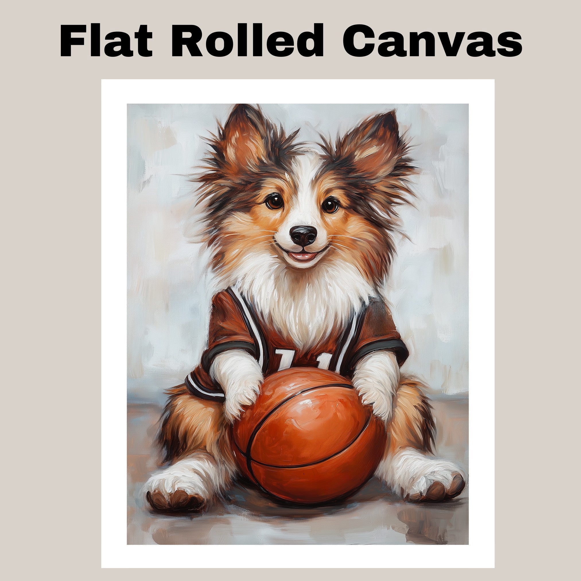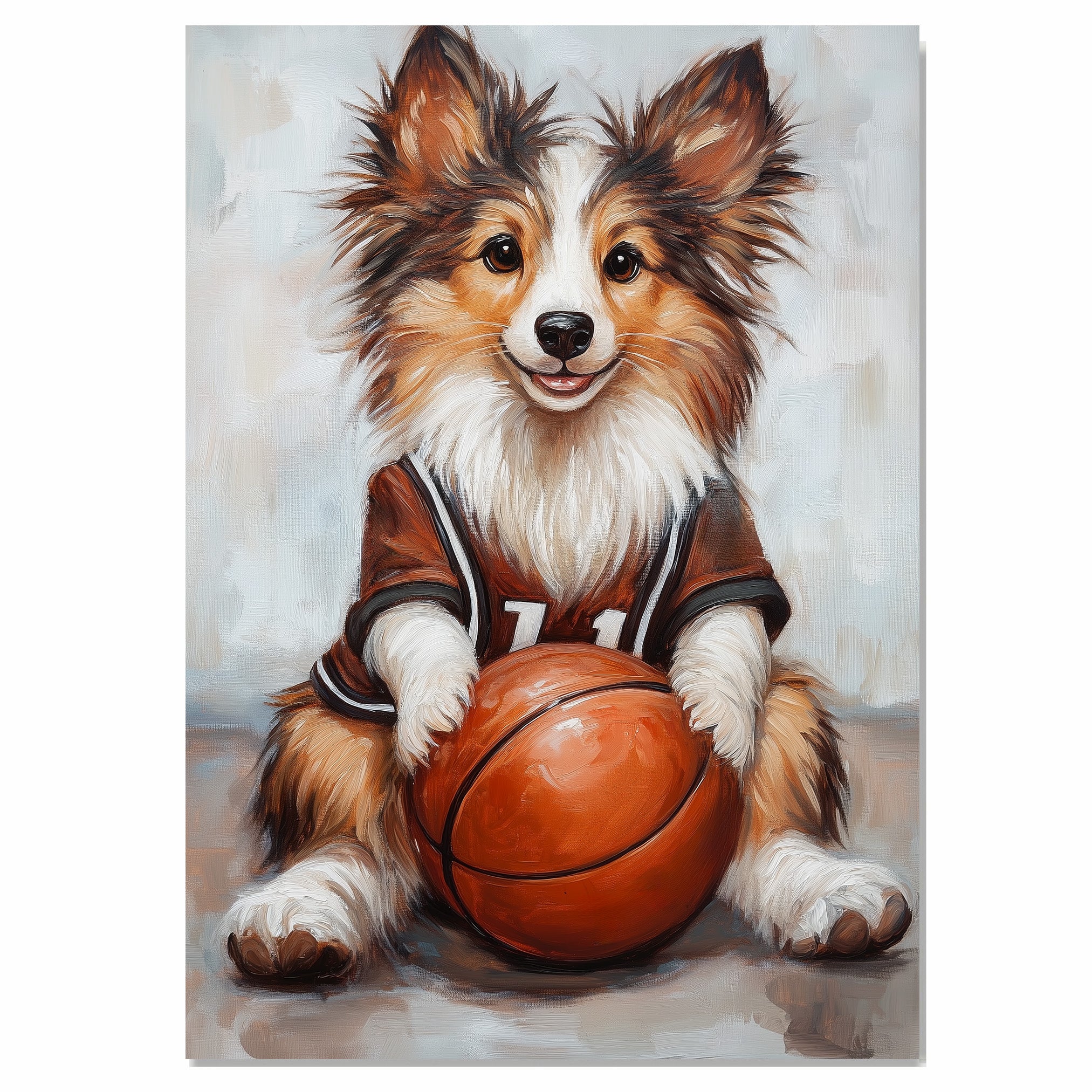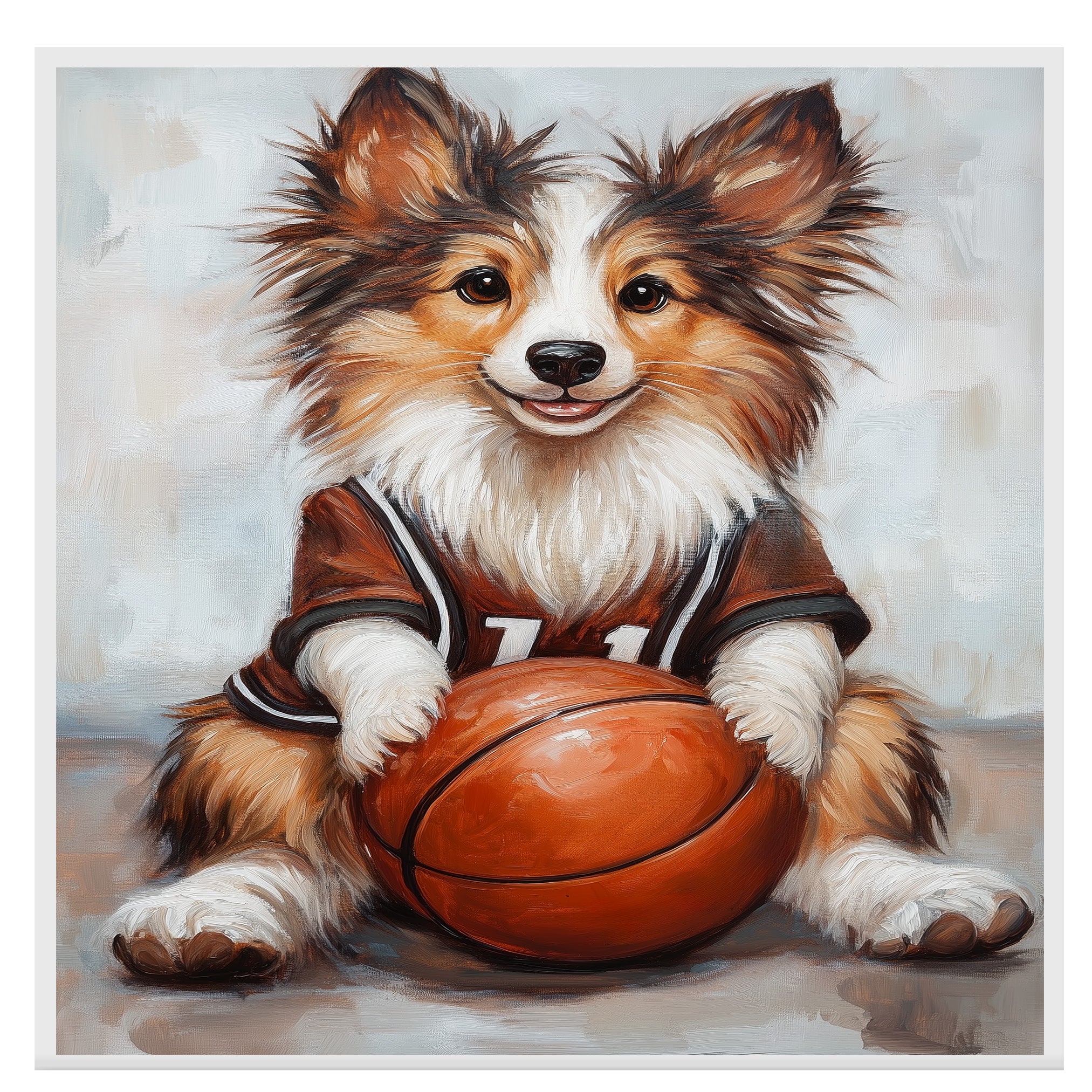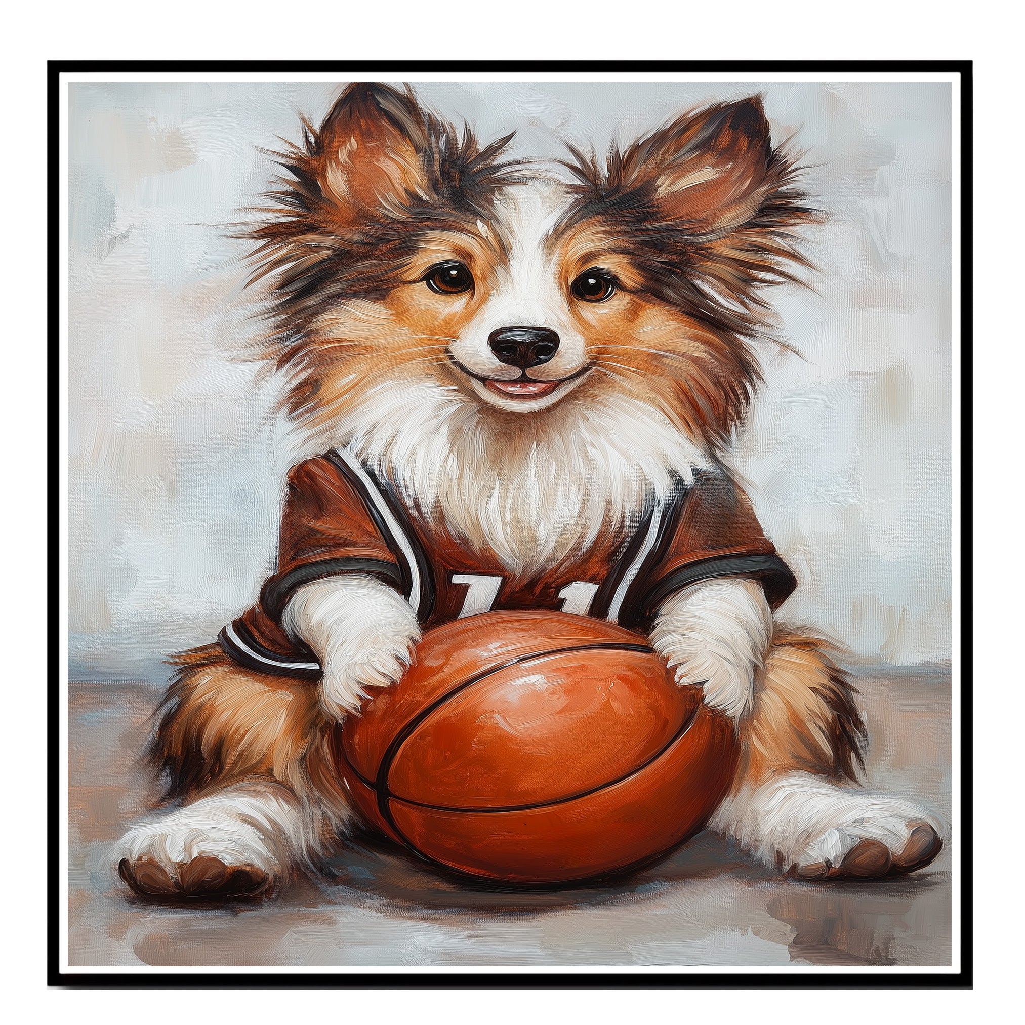 Whether decorating a teen’s personal space or gifting a devoted dog fan, this Shetland Sheepdog basketball artwork brings personality, movement, and sporty style to any wall.