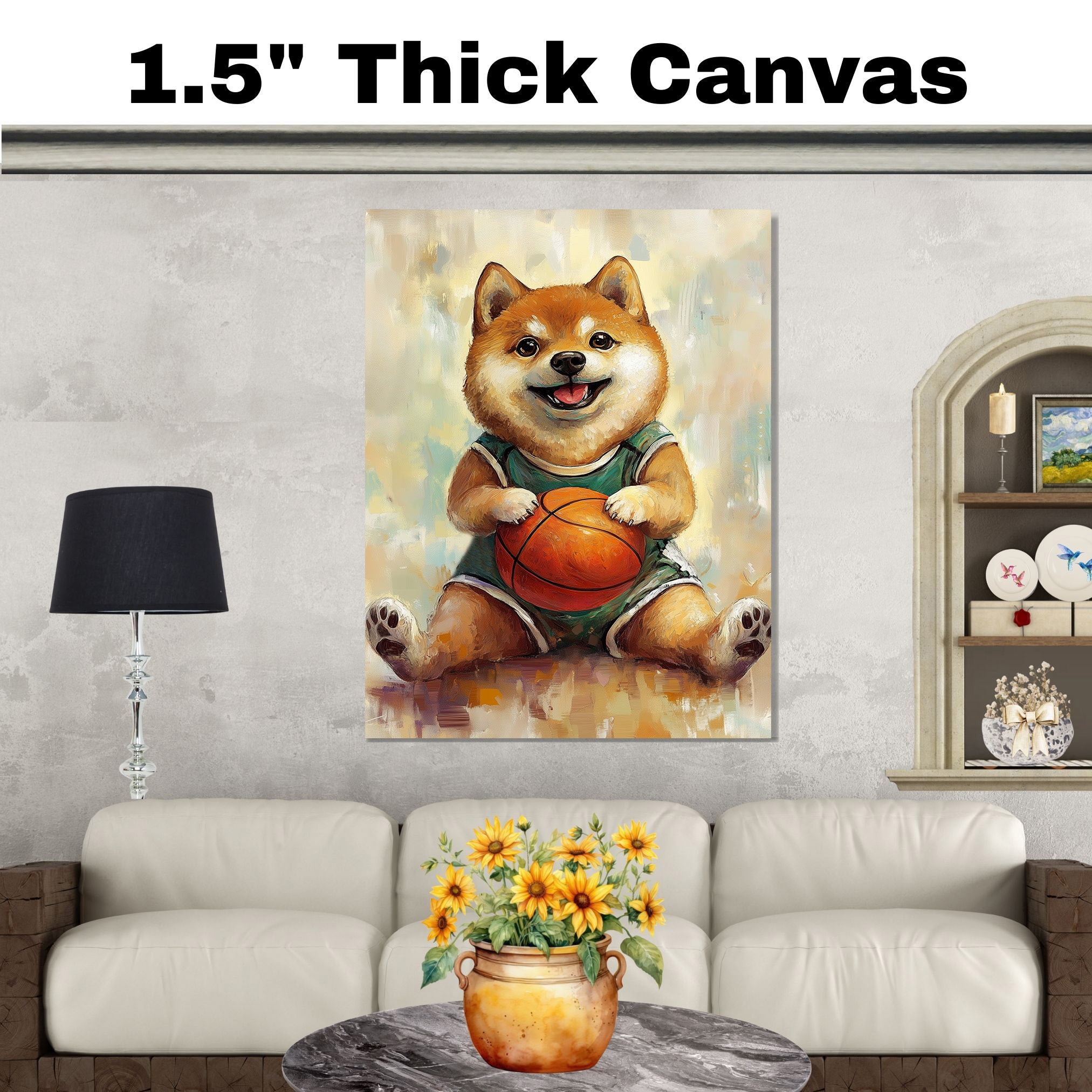 Whether upgrading a teen’s room or gifting a devoted dog fan, this Shiba Inu basketball artwork delivers style, movement, and sporty personality to any space.