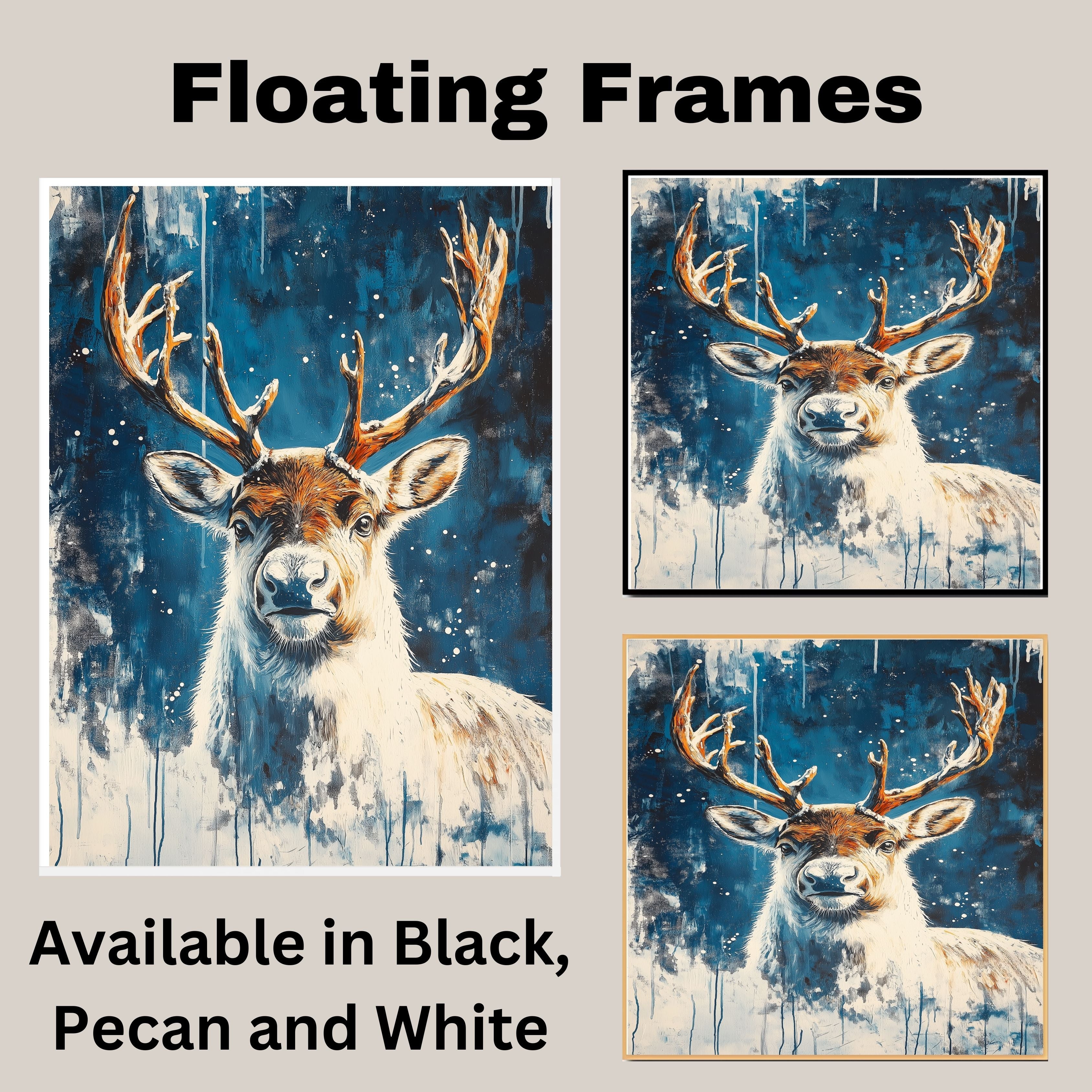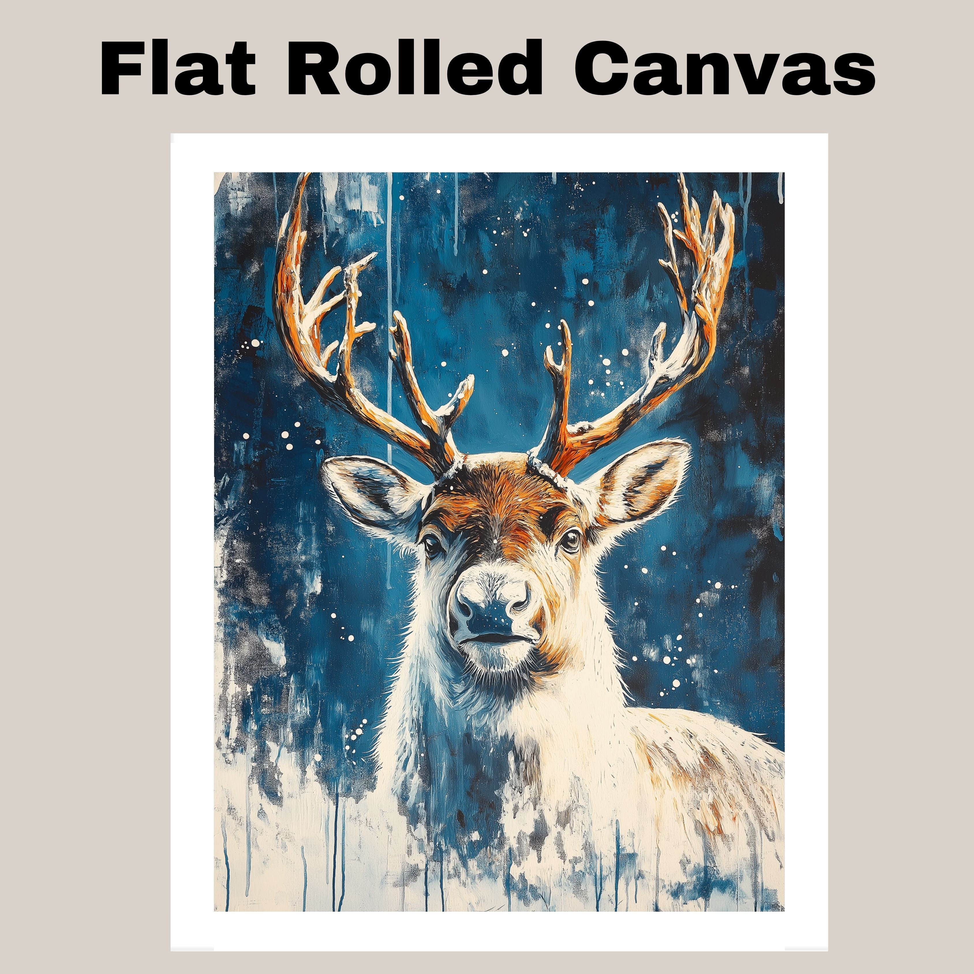 Snowy Reindeer Portrait Winter Wonderland Abstract Painting Majestic Wildlife Scene for Holiday Seasonal Home Office Decoration or Christmas Gift on Ready to Hang 1.5" Thick Canvas Wrap, Floating Framed Canvas, Flat Rolled Canvas