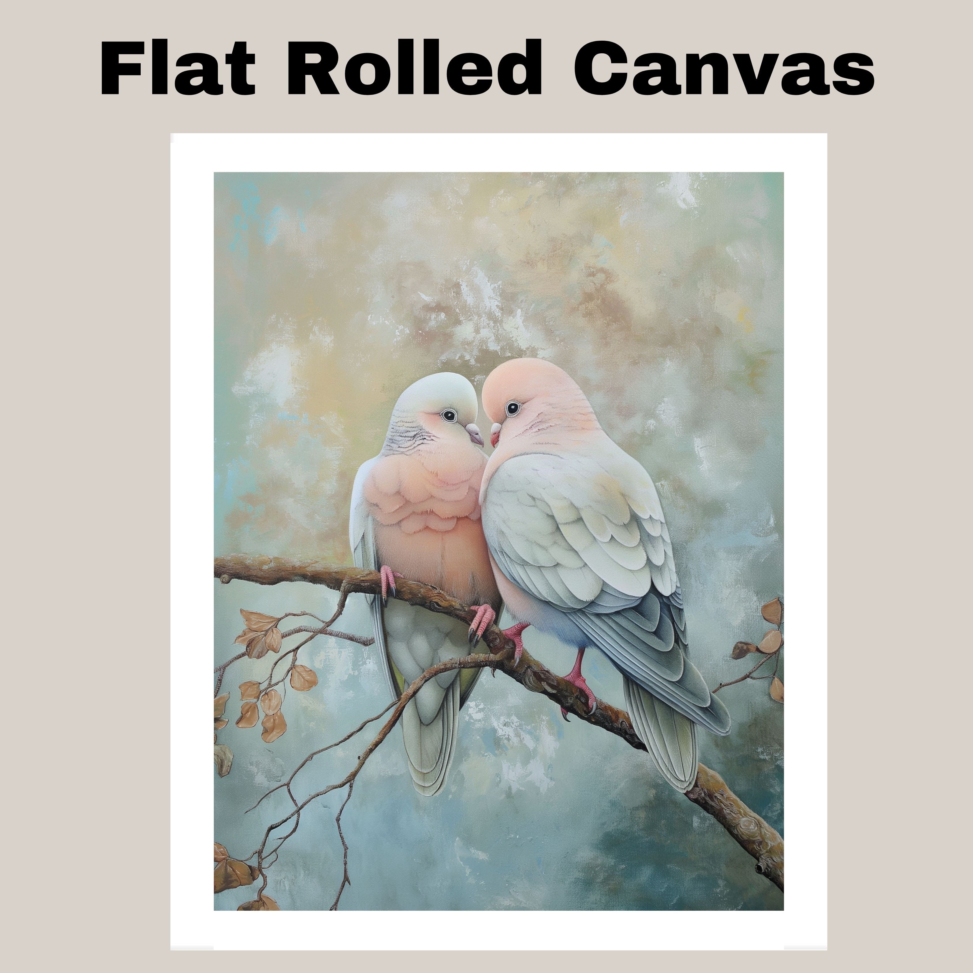 Softly Colored Lovebirds Resting on a Branch with Muted Earth Tone Background on Ready to Hang 1.5" Thick Canvas Wrap, Floating Framed Canvas, Flat Rolled Canvas