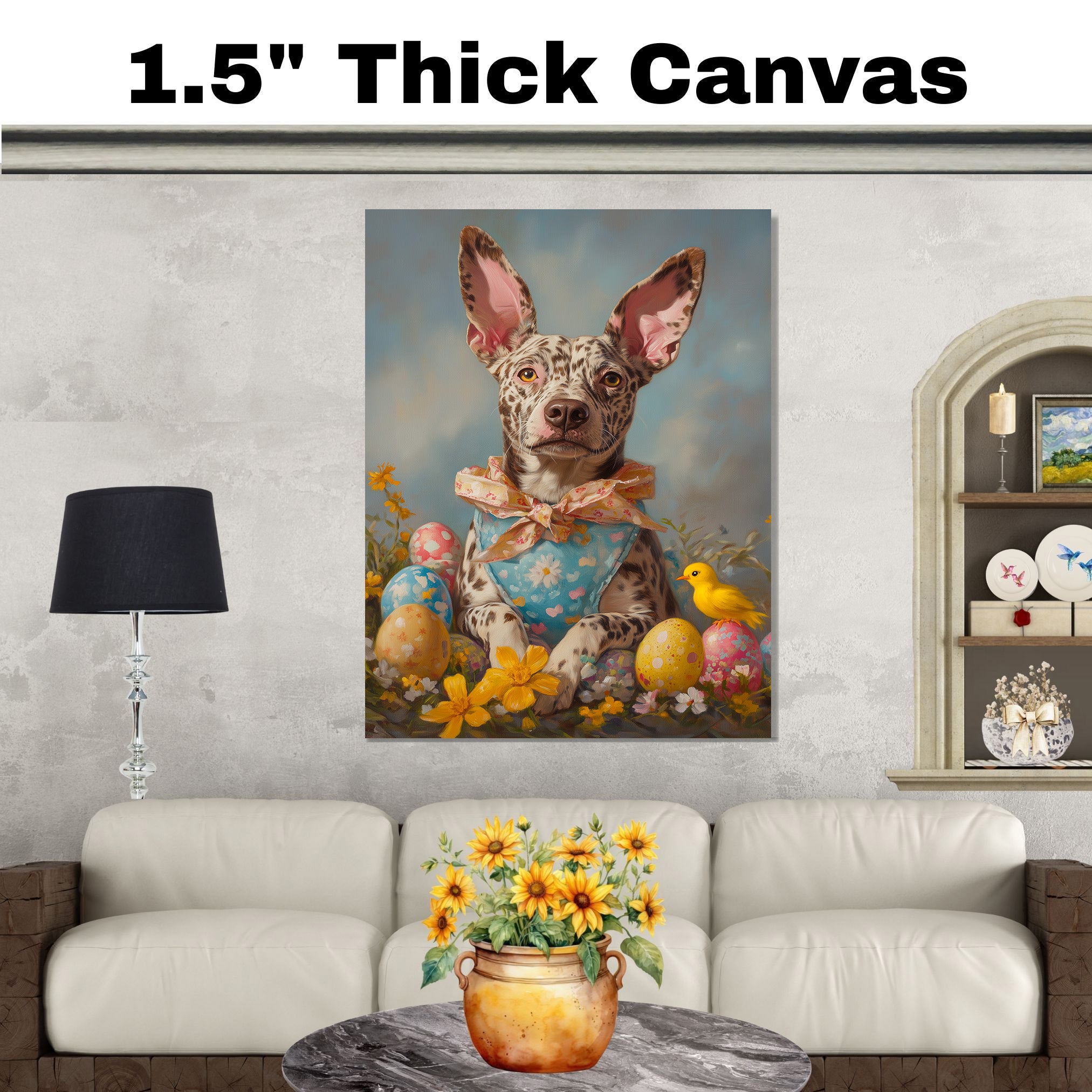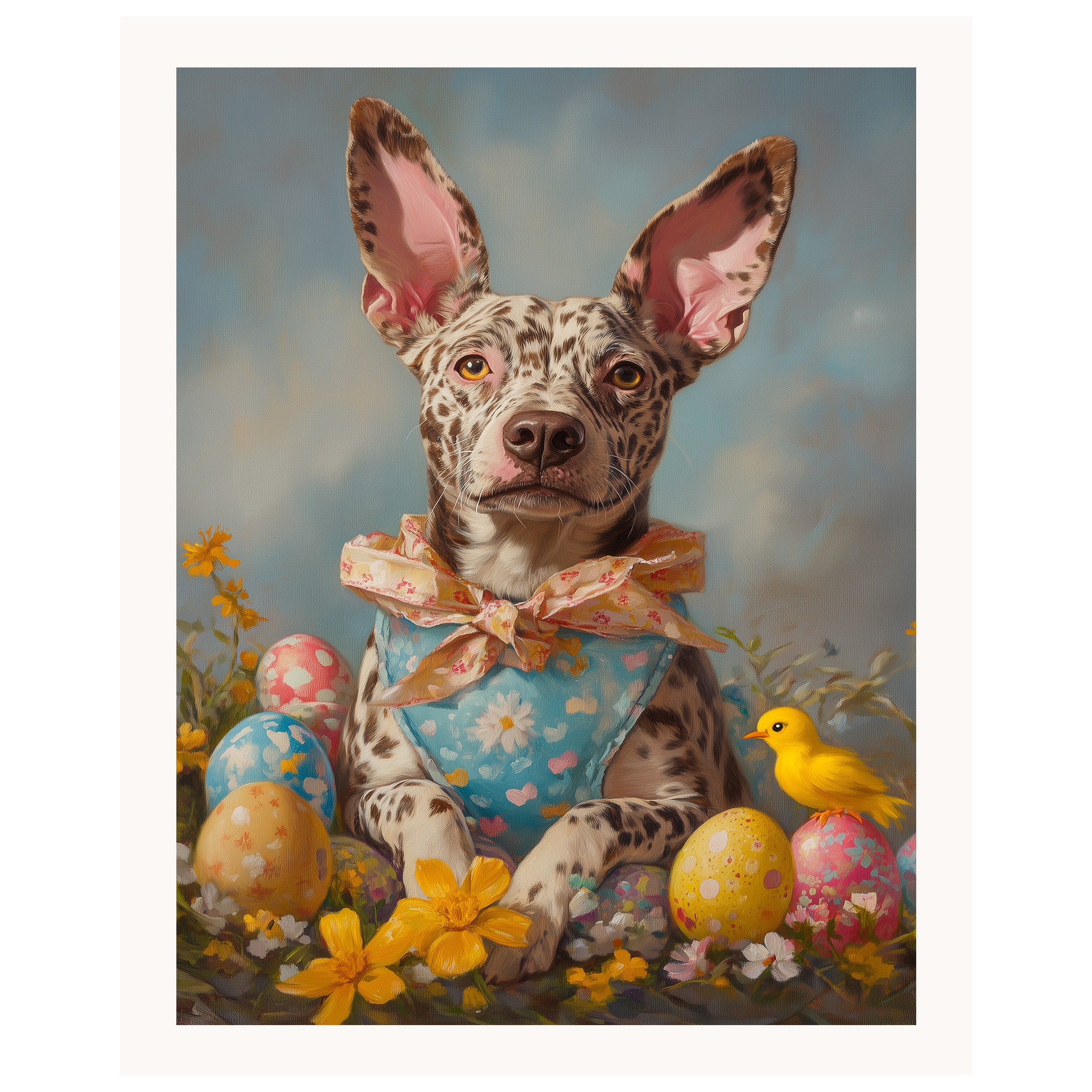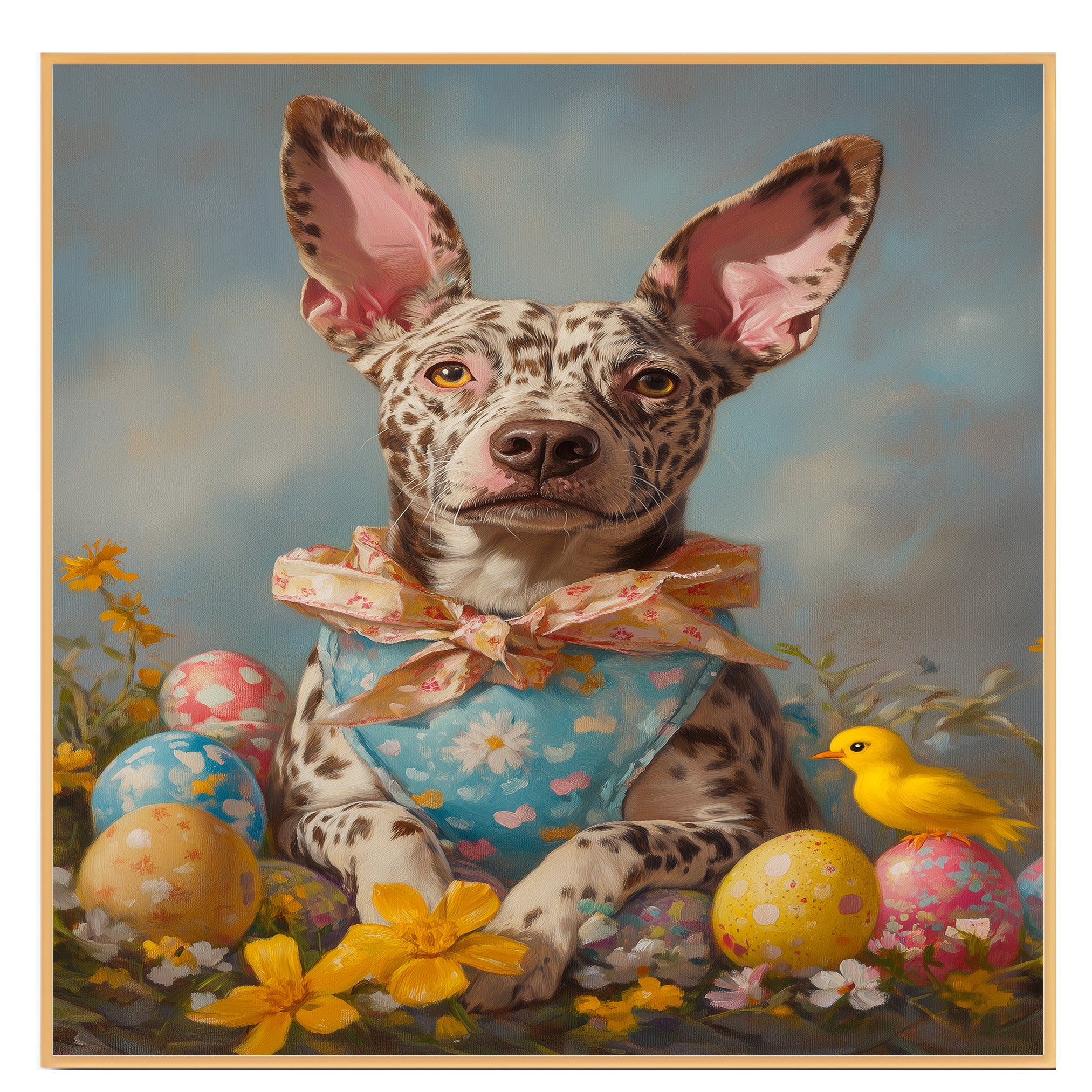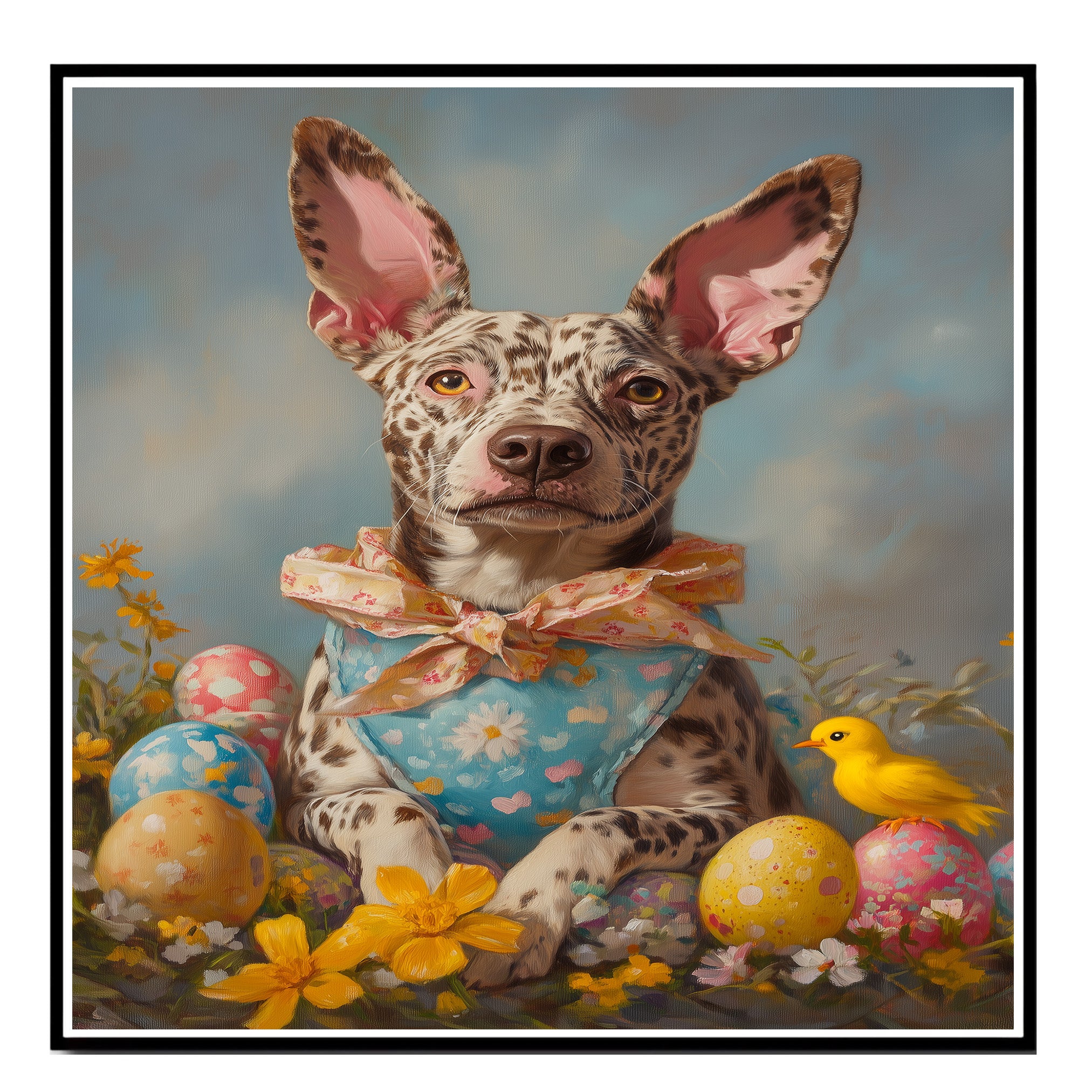Our Springtime Charm artwork features a Catahoula Leopard Dog dressed in adorable seasonal attire, radiating warmth and joy. This delightful piece captures the playful essence of spring, making it a perfect addition to any home decor. Available as a canvas wrap, framed print, or rolled art, it's an ideal choice for dog lovers looking to celebrate the season in style!
