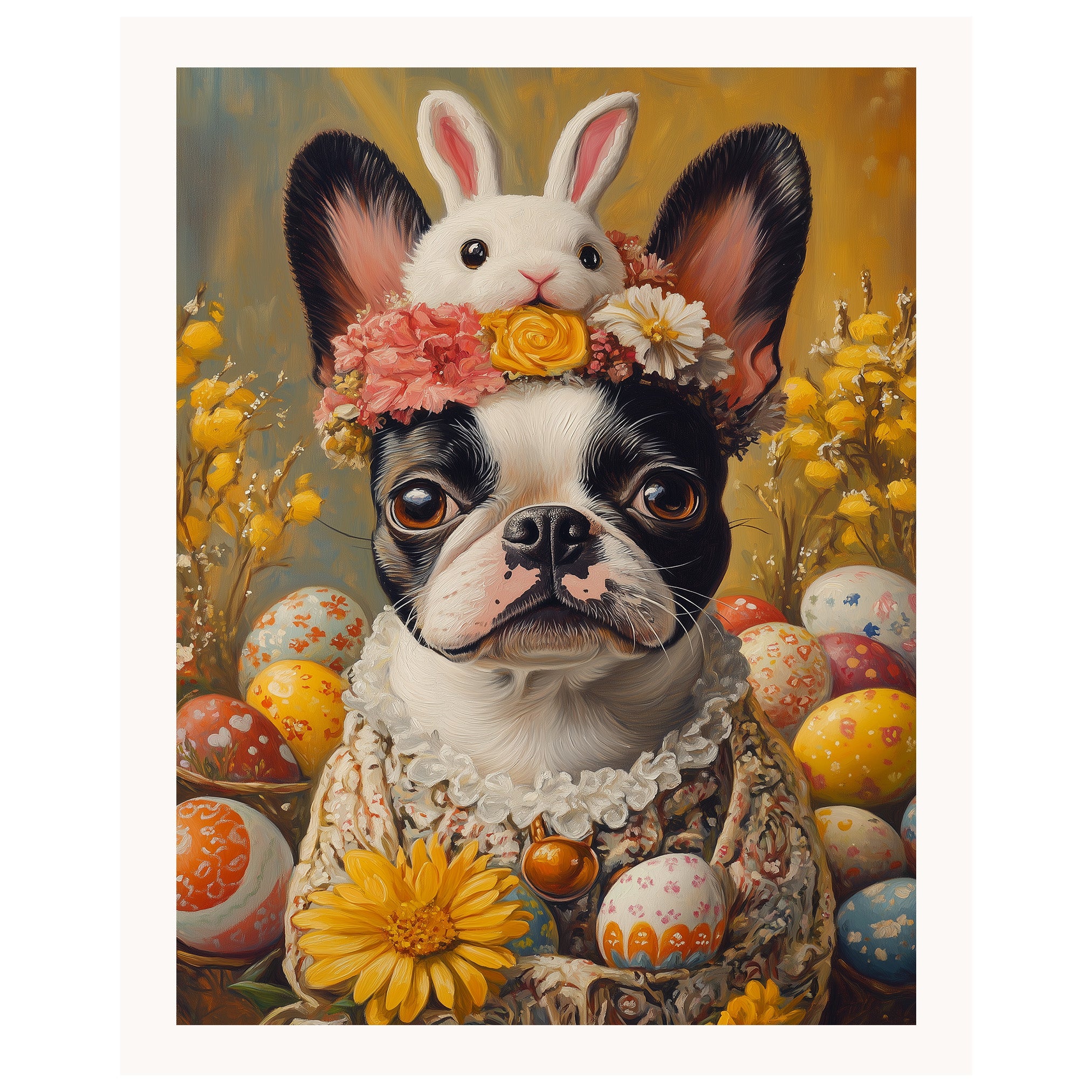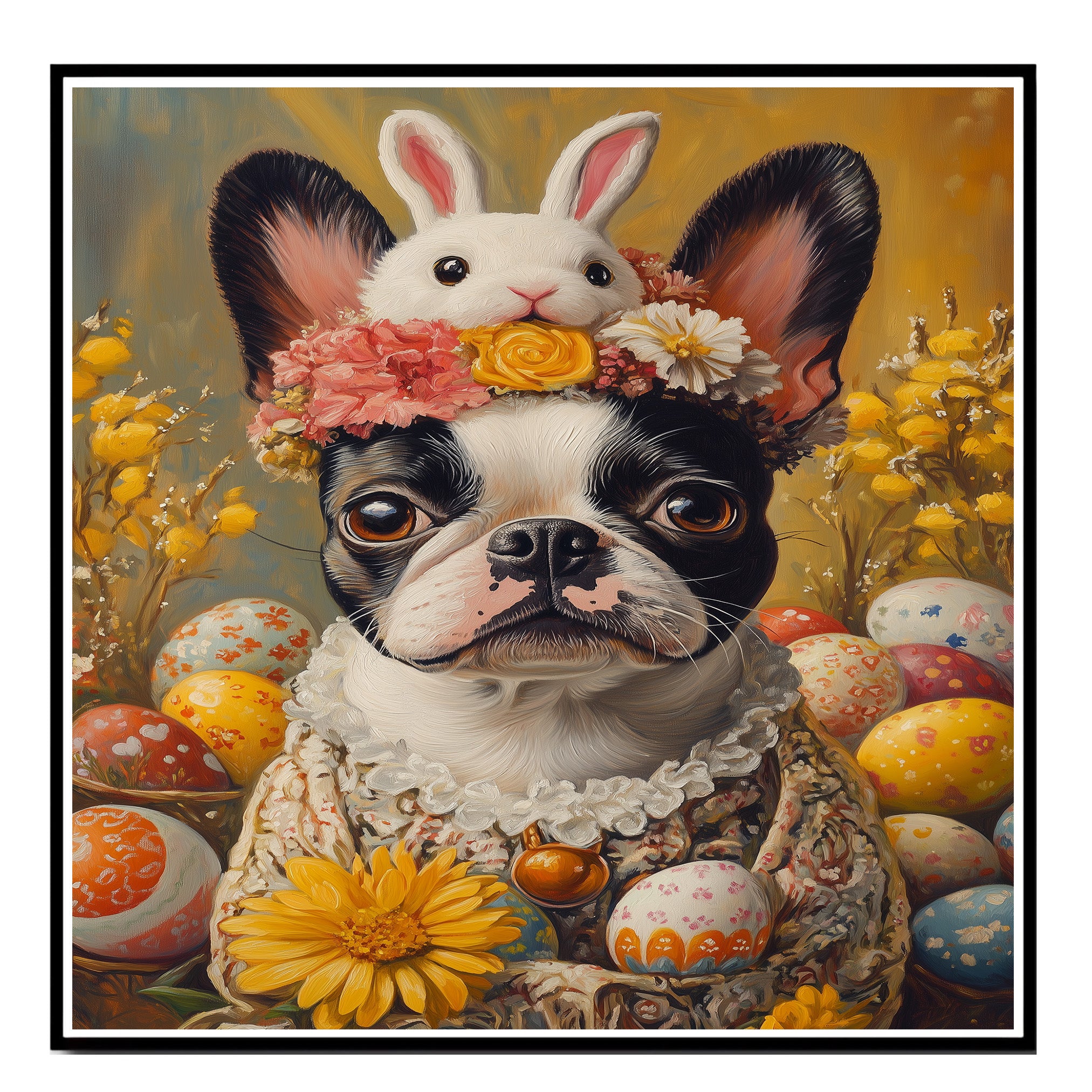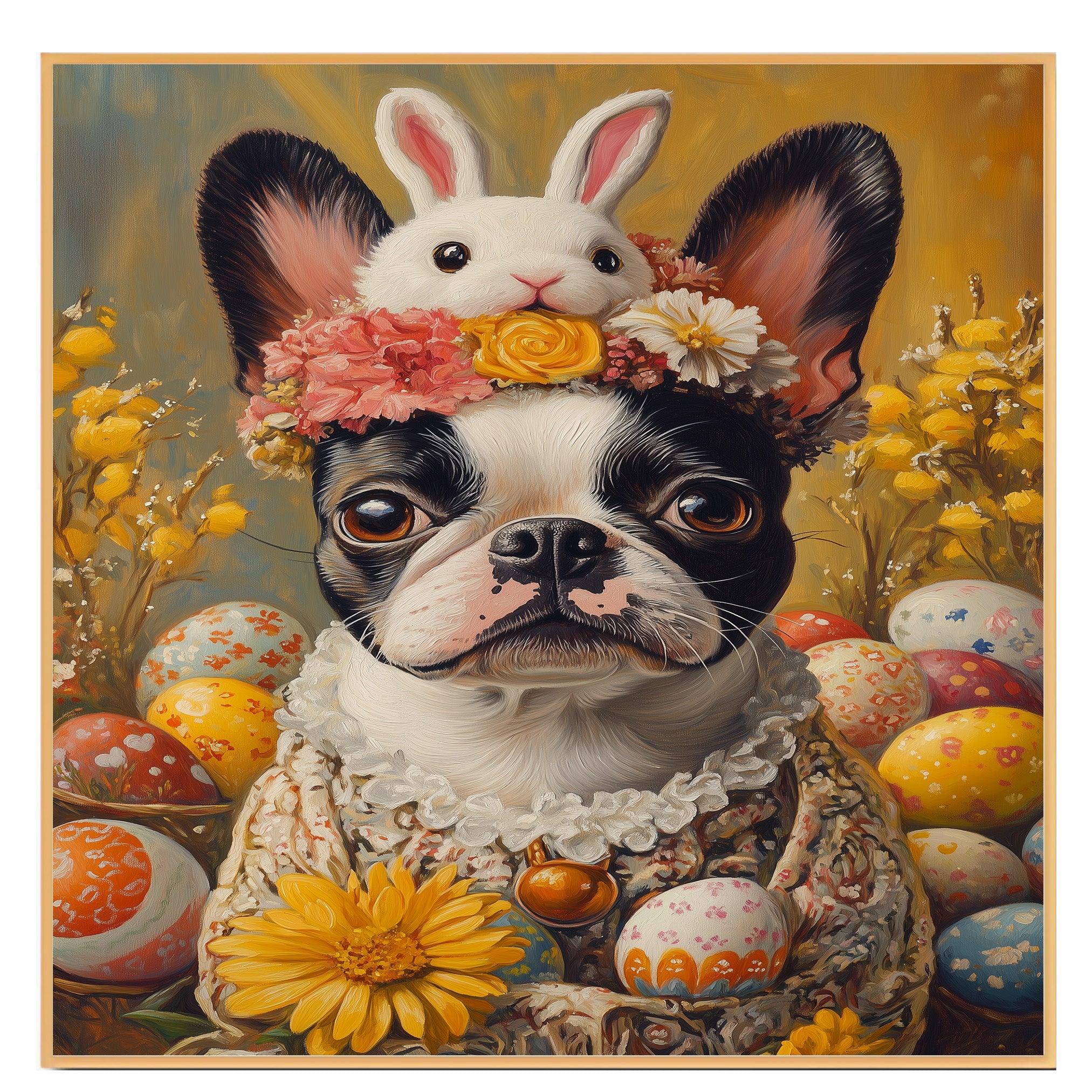 Our Springtime Fun Canvas beautifully captures the joy of Easter, featuring a charming Boston Terrier posing in a cheerful holiday costume. Dressed in vibrant spring colors with playful seasonal details, this delightful artwork radiates warmth and festivity, making it a perfect addition to your Easter decor. The whimsical scene brings a touch of seasonal magic to any space, filling your home with charm and celebration. Available as an artistic canvas wrap, framed print, or rolled artwork, this enchanting piece is a wonderful gift for dog lovers and holiday enthusiasts alike.