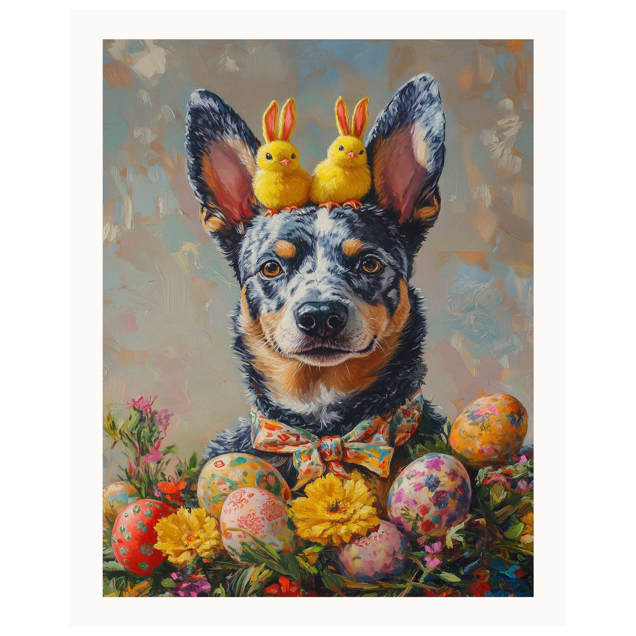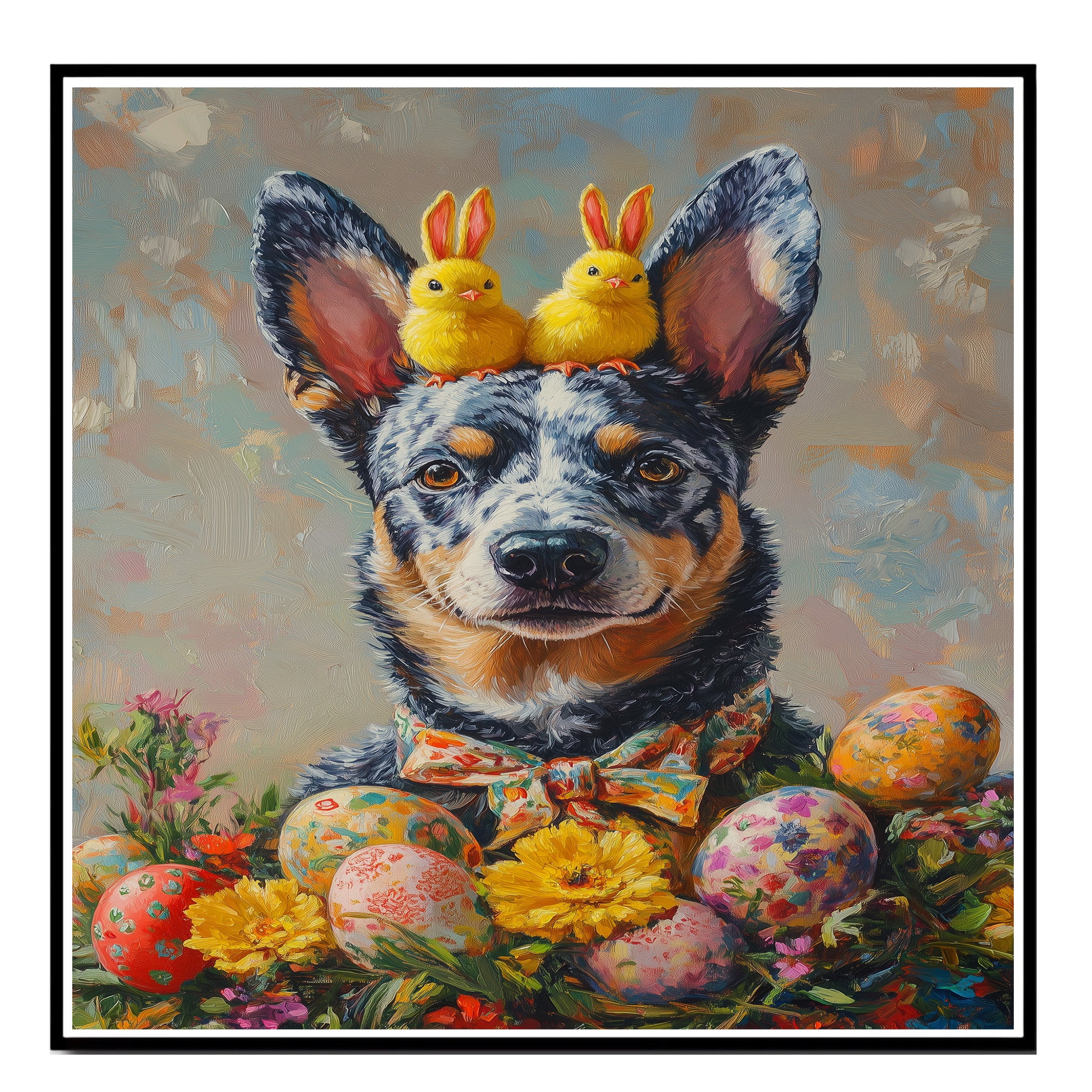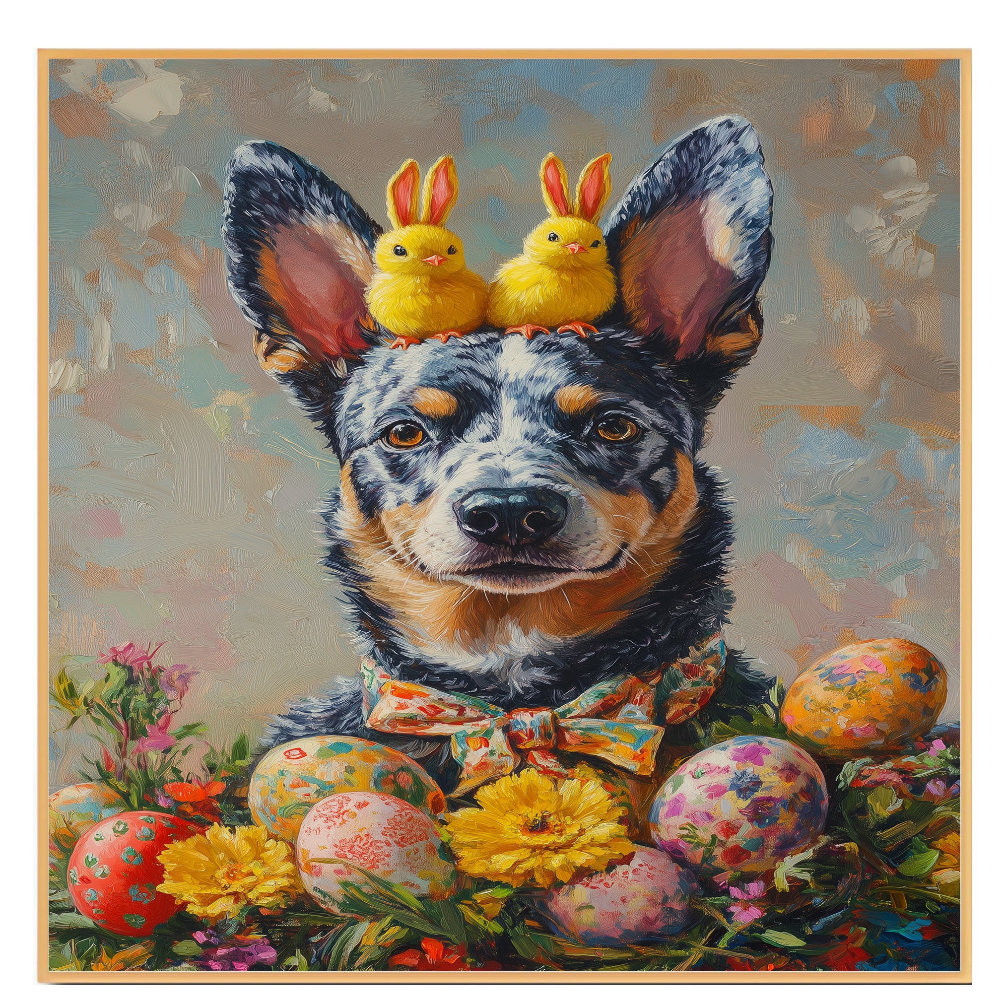 Our Springtime Spirit Canvas beautifully captures the joy of Easter, featuring a lively Blue Heeler showing off a festive holiday costume. With vibrant spring colors and charming seasonal details, this delightful artwork radiates warmth and celebration, making it a perfect addition to your Easter decor. The playful scene brings a cheerful touch to any space, embodying the magic of the season. Available as a premium canvas wrap, framed print, or rolled artwork, this enchanting piece is a wonderful gift for dog lovers and holiday enthusiasts alike.