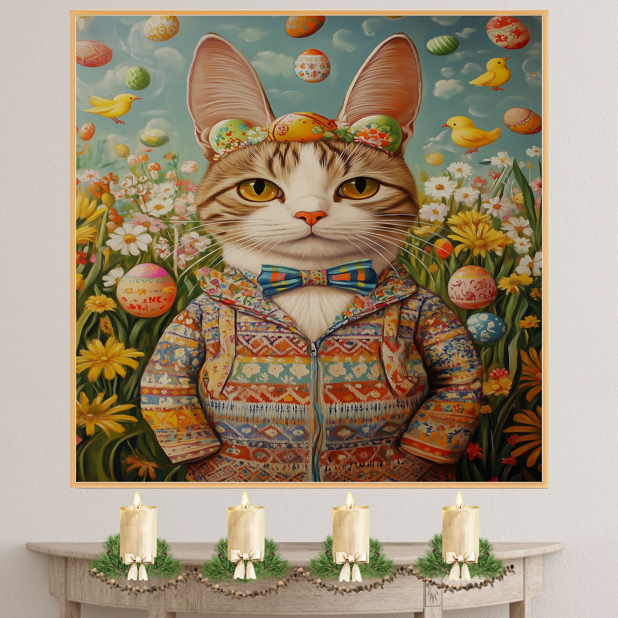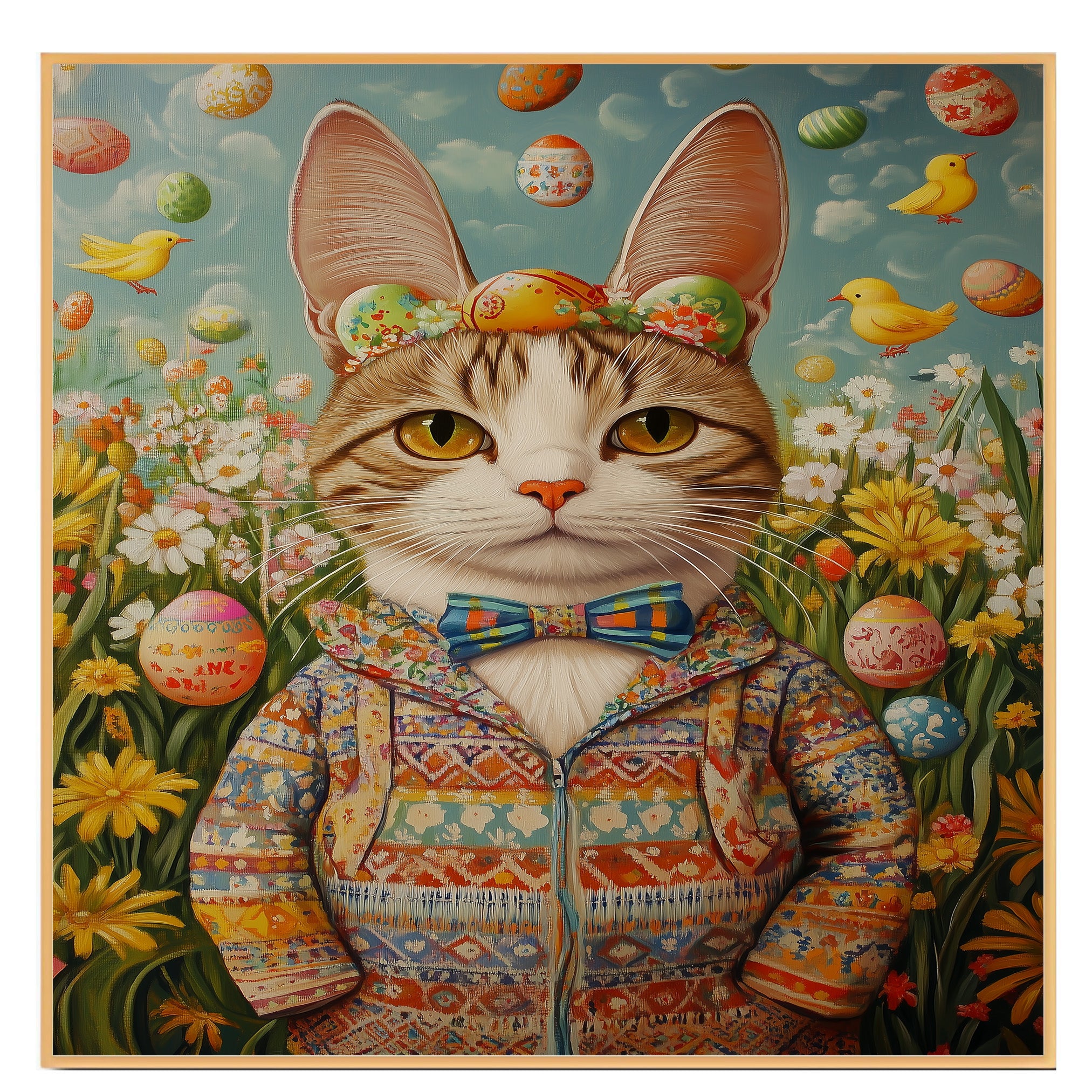 Springtime Whiskers: Playful Cat in a Cheerful Holiday Costume on Canvas Wrap, Framed Print, or Rolled Artwork