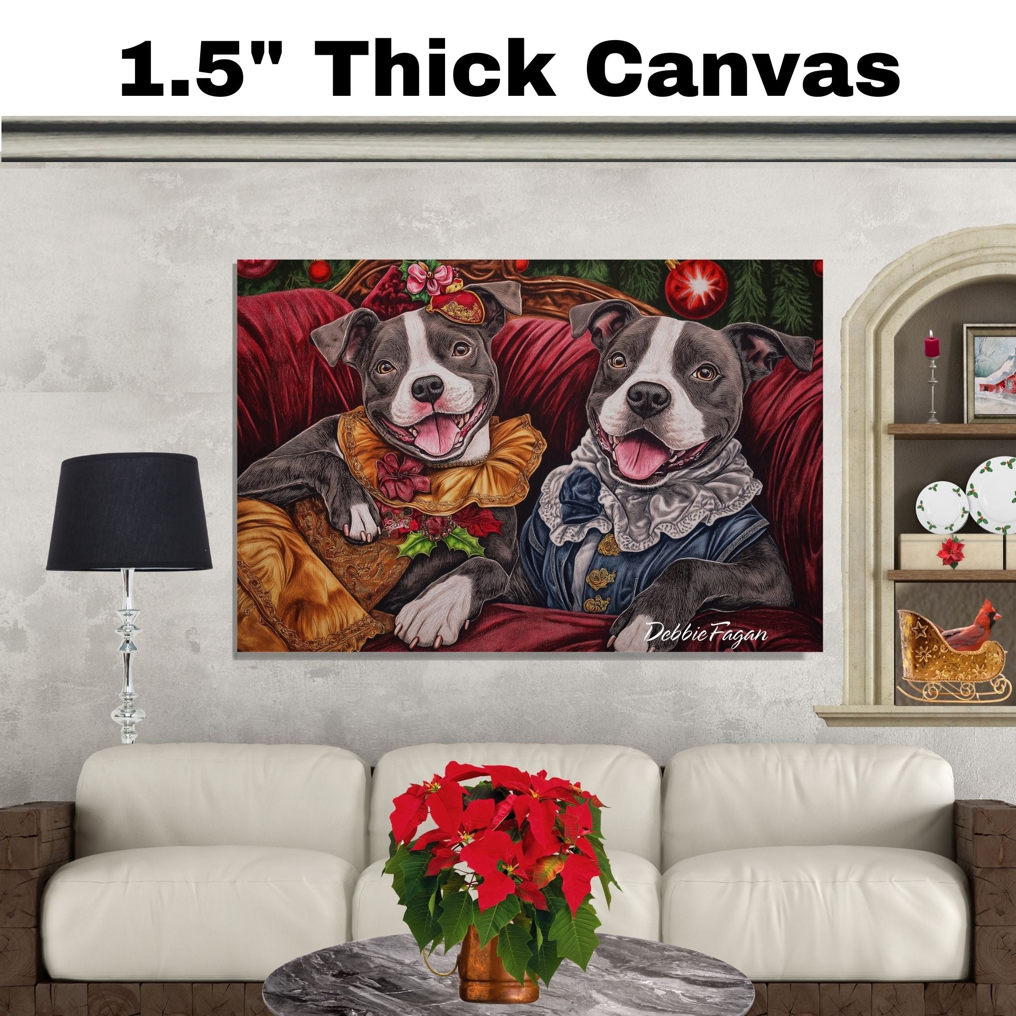 Staffie Christmas Canvas - "Victorian Whimsy" - American Staffordshire Bull Terriers in Elegant Attire on Ready to Hang 1.5" Thick Canvas Wrap, Floating Framed Canvas, Flat Rolled Canvas