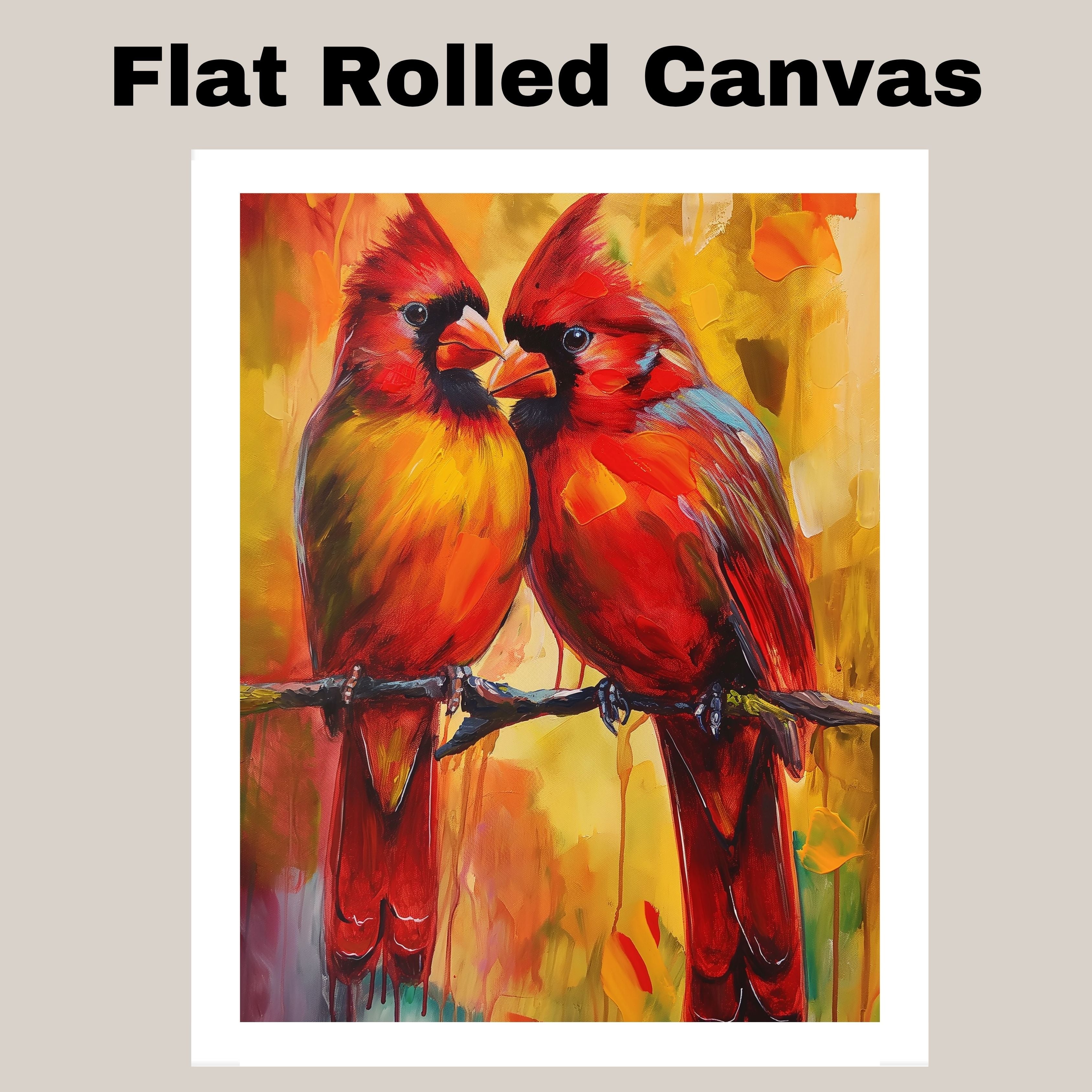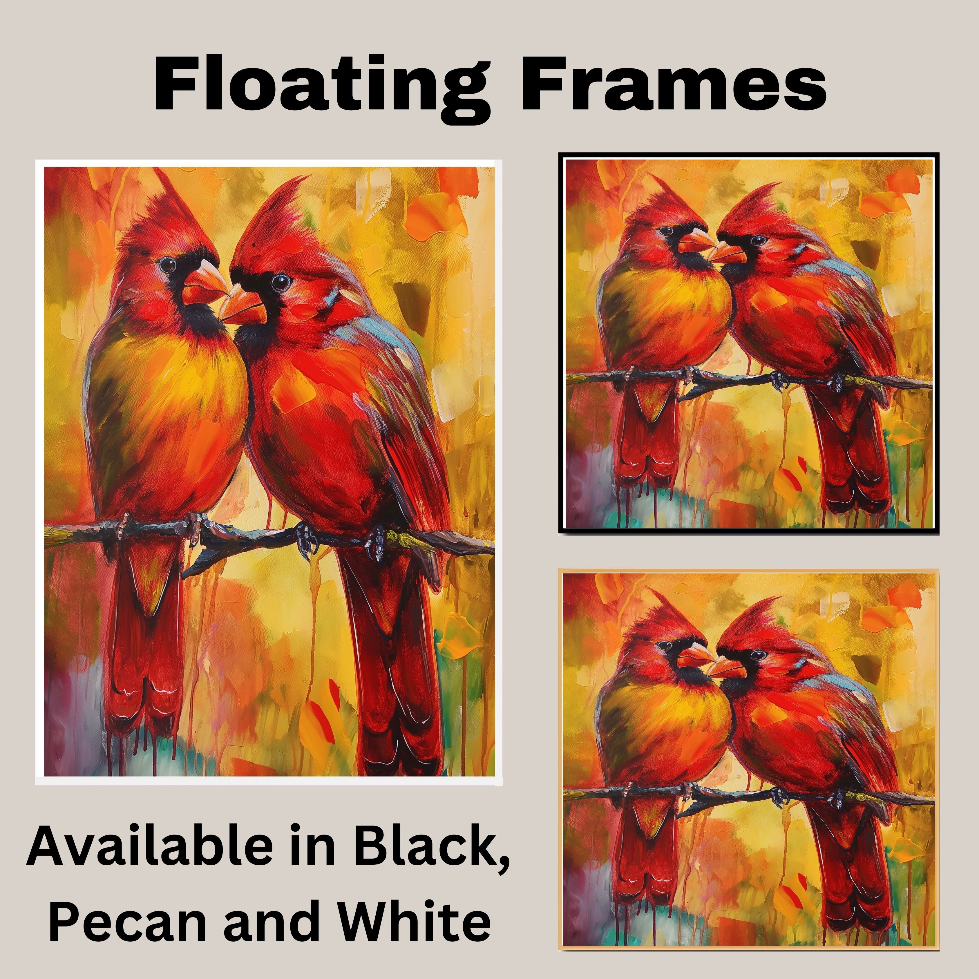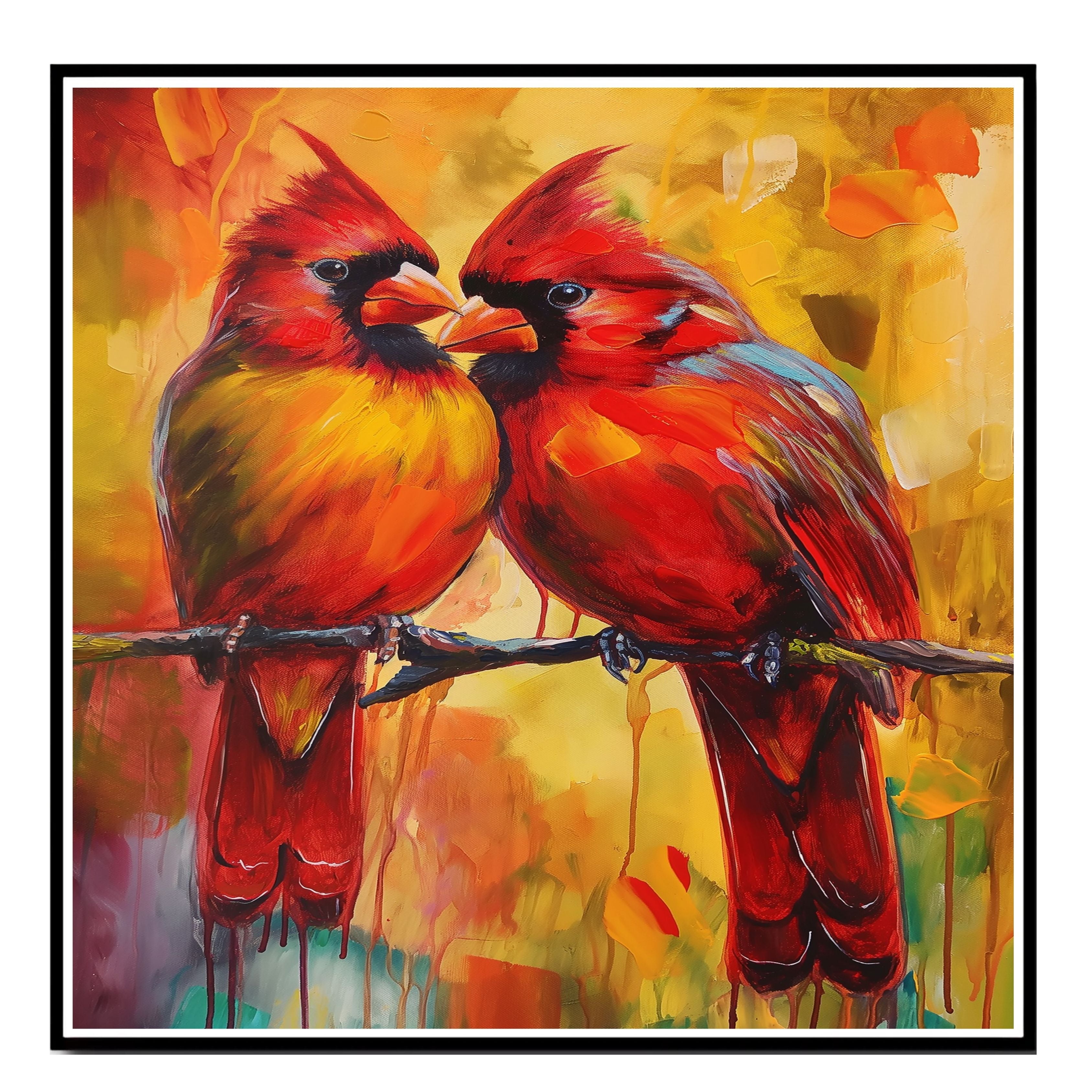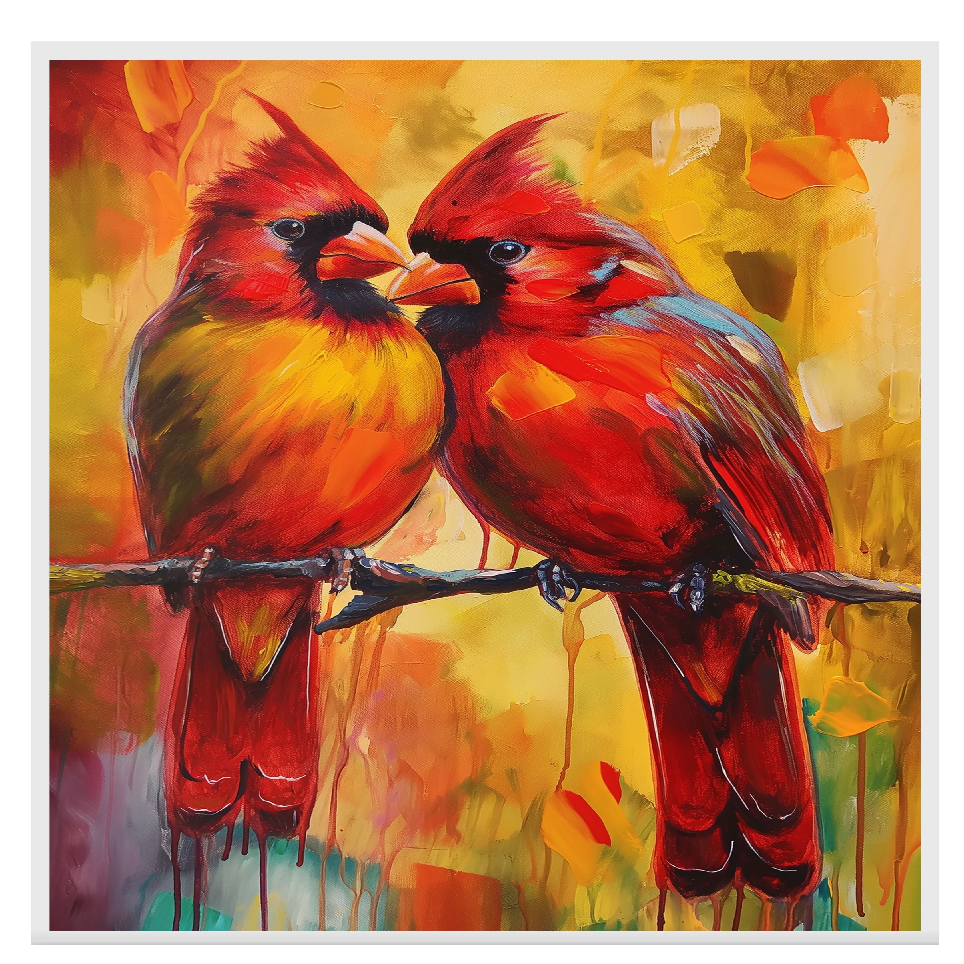 Symbolic Red Cardinals on Branch – Emotional Bird Painting Representing Love, Hope, and Connection in Vibrant Artistic Style on Ready to Hang 1.5" Thick Canvas Wrap, Floating Framed Canvas, Flat Rolled Canvas