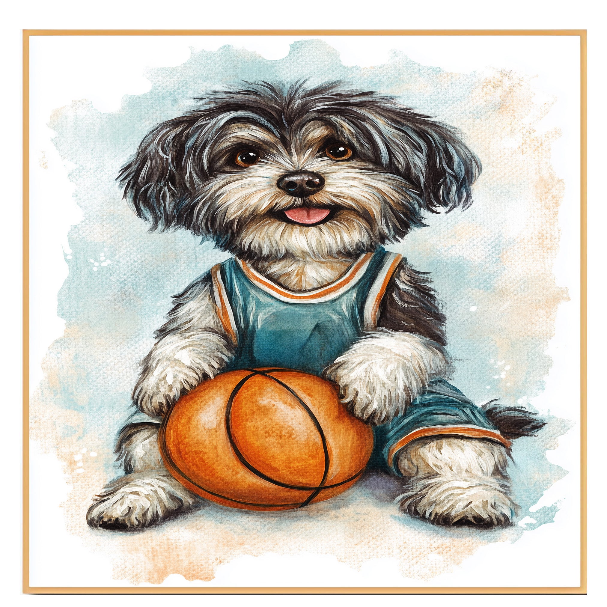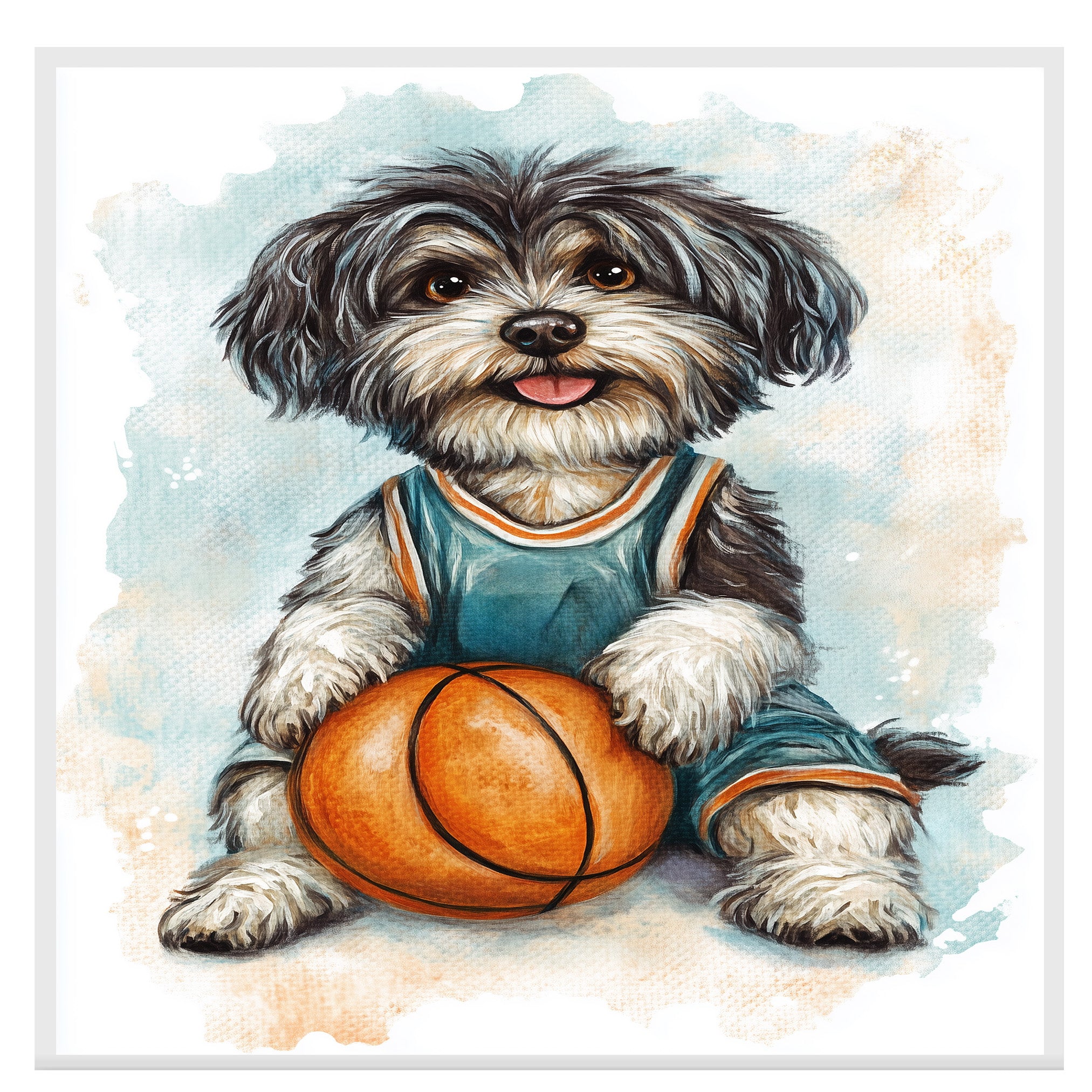 Whether decorating a playful kids space or gifting a proud dog owner, this Tibetan Terrier basketball artwork delivers warmth, motion, and sporty personality to any wall.