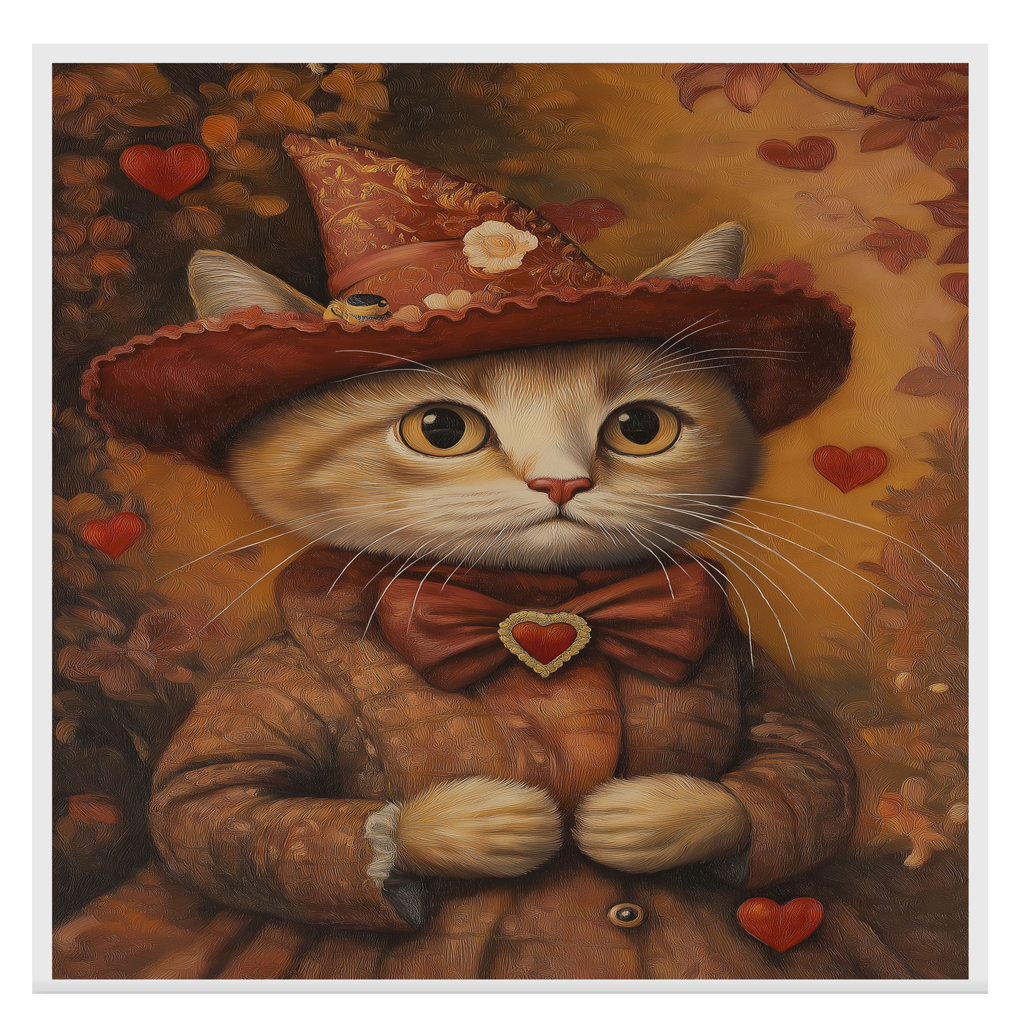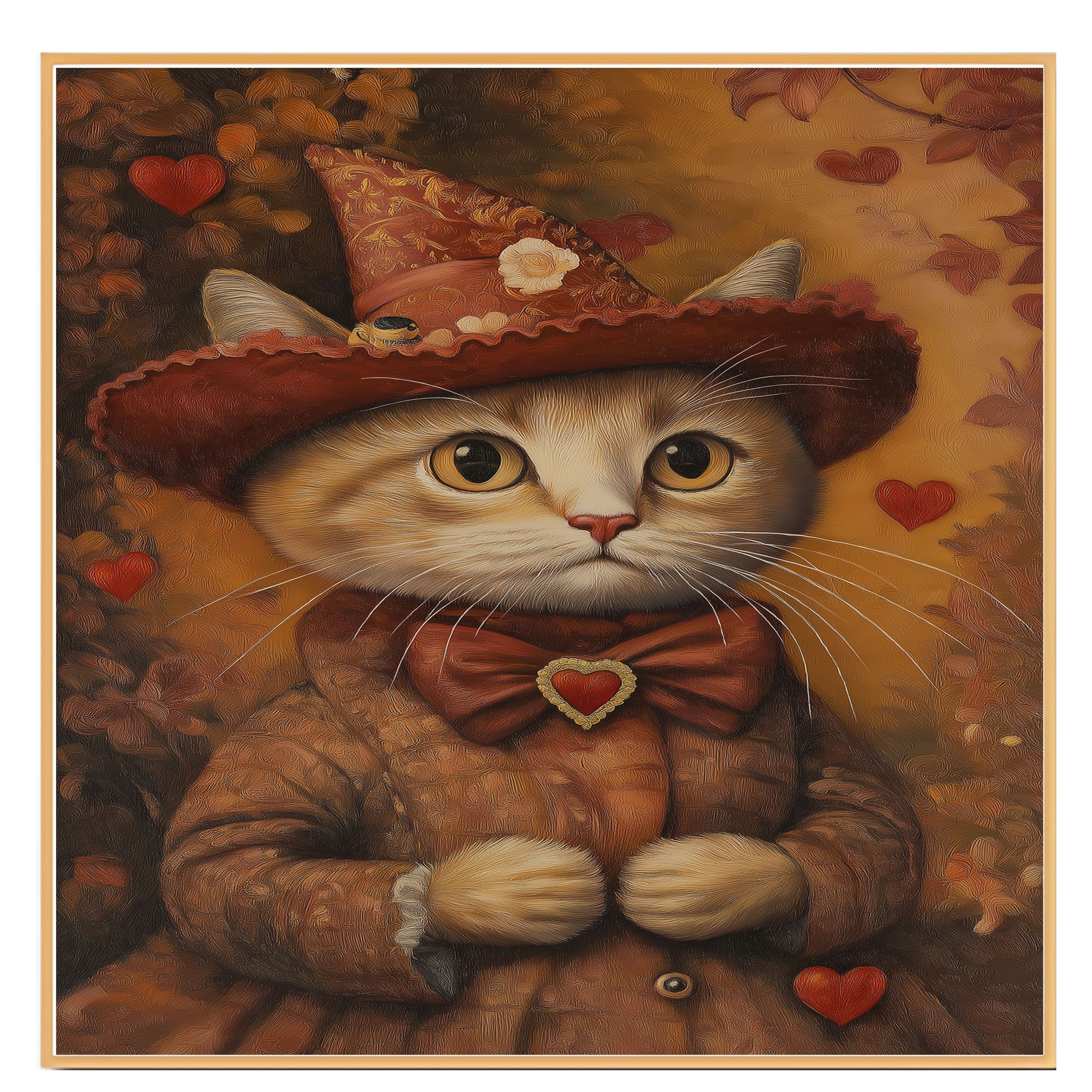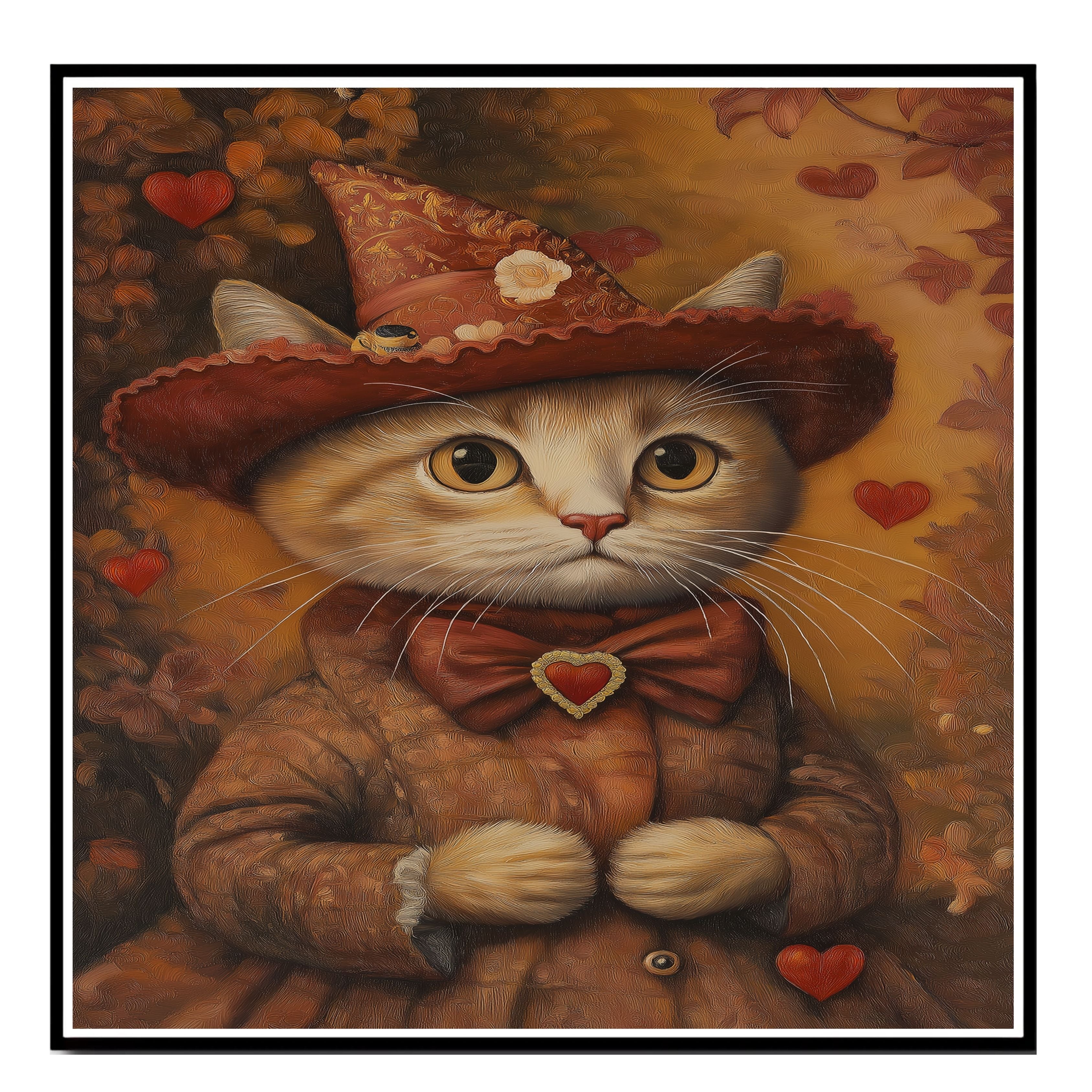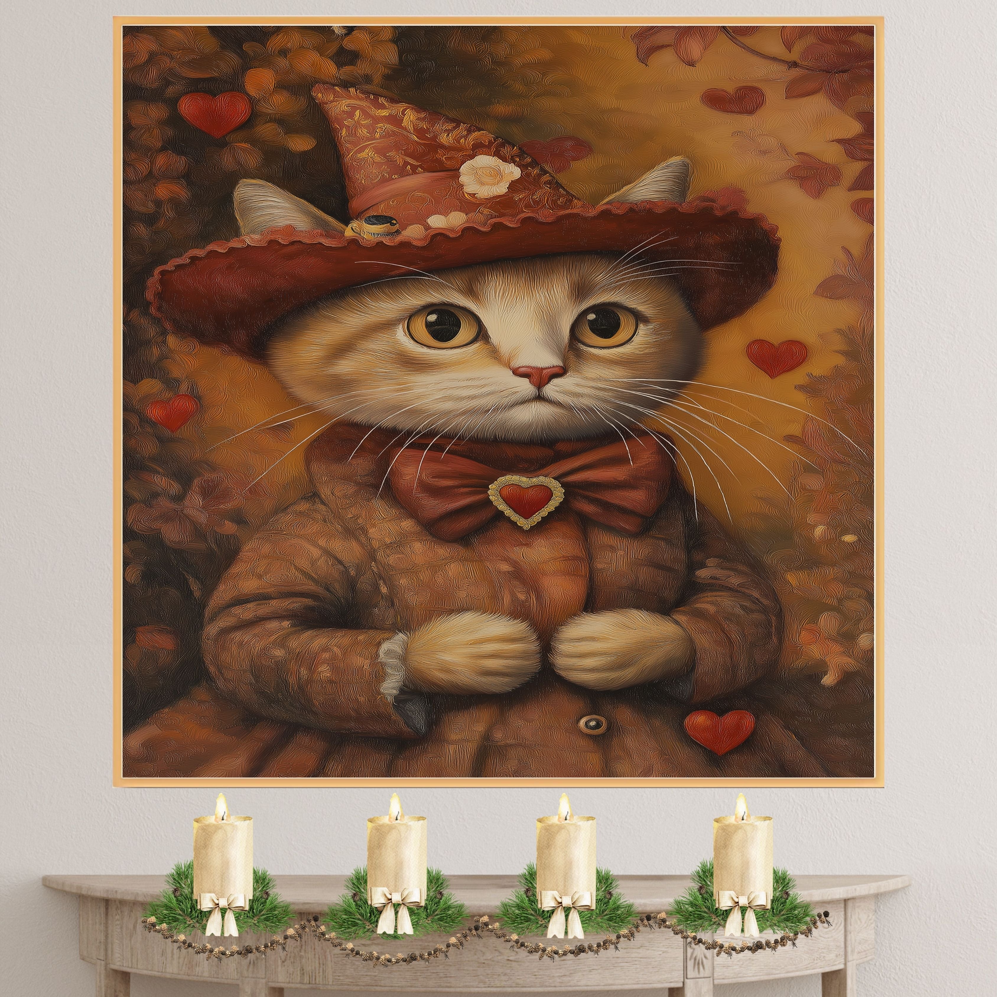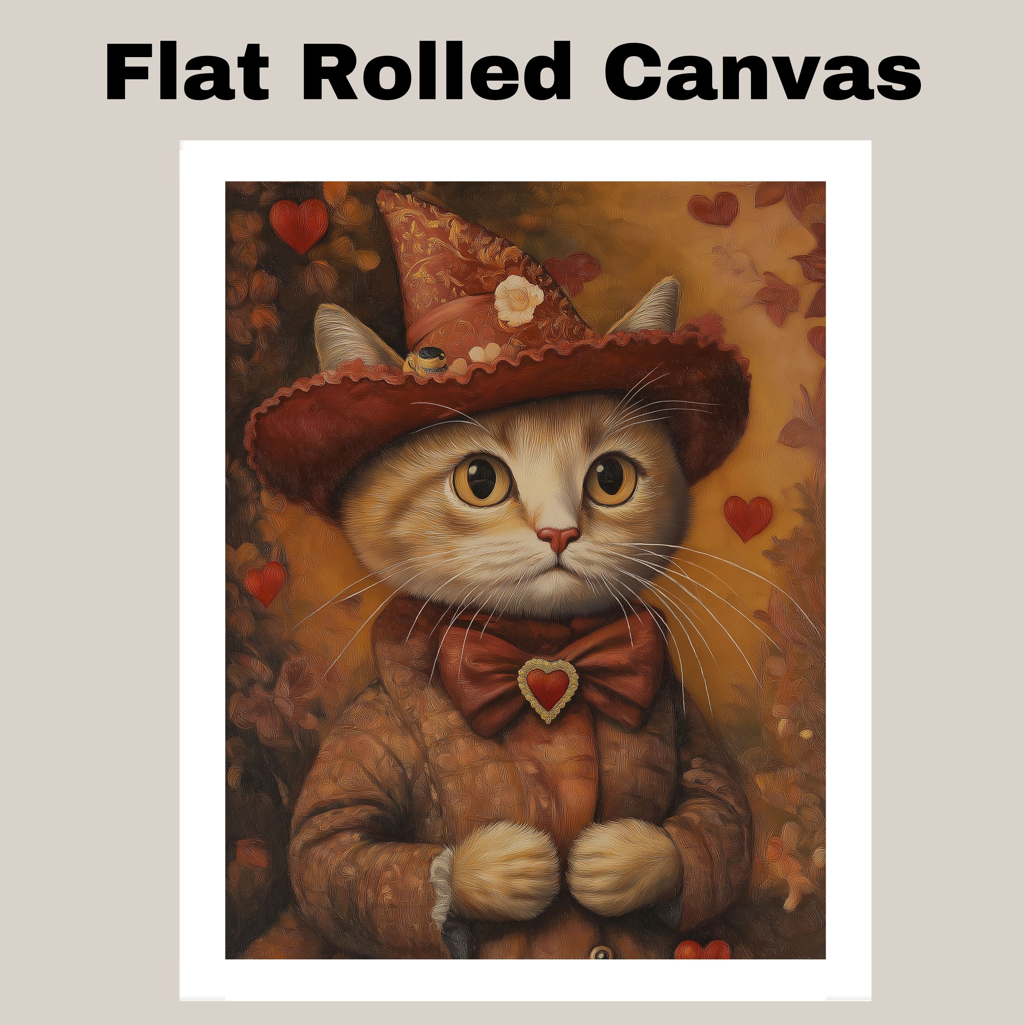Our Timeless Romance Canvas exudes elegance and charm, featuring a poised cat draped in a luxurious European red dress and a stylish hat, evoking the sophistication of a bygone era. With a heartfelt gaze, this refined feline embodies grace and sentiment, making it a captivating addition to your decor. Soft, painterly strokes enhance the classic aesthetic, while the deep, rich tones create an air of warmth and nostalgia. Available on a 1.5" thick canvas wrap, floating framed canvas, or as a flat rolled canvas, this exquisite artwork is a perfect statement piece for cat lovers and admirers of timeless beauty.