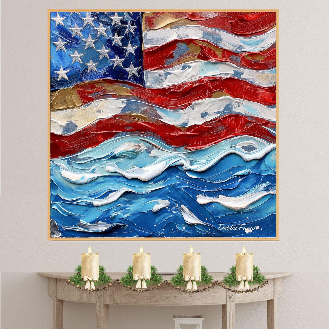 Add a bold touch of patriotism to your space with this striking Large American Flag Patriotic Wall Art. Perfect for showing your love for the USA, this impressive piece captures the timeless beauty of the American flag, proudly displayed in vibrant detail. Celebrate your pride in being American with this powerful symbol of freedom and unity.