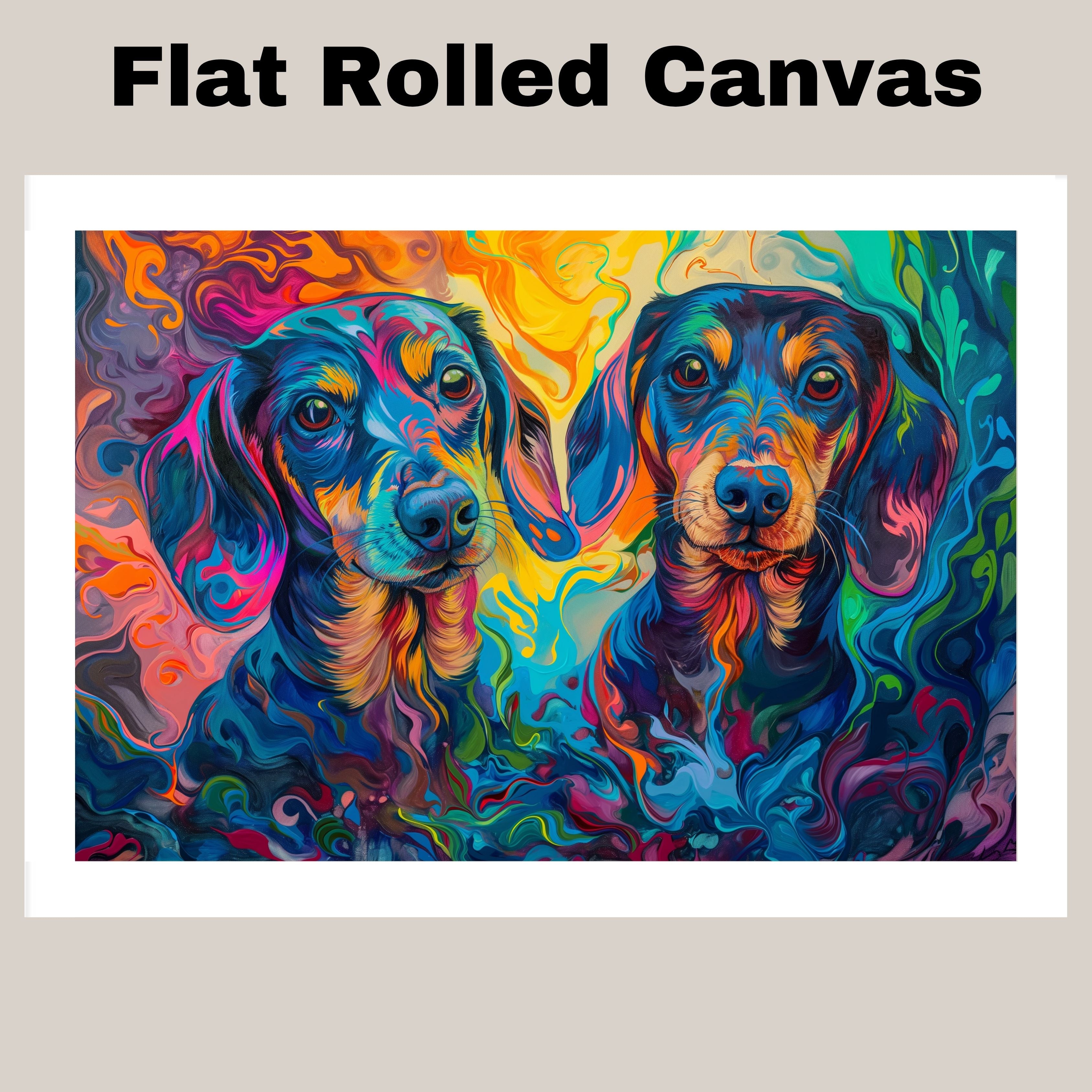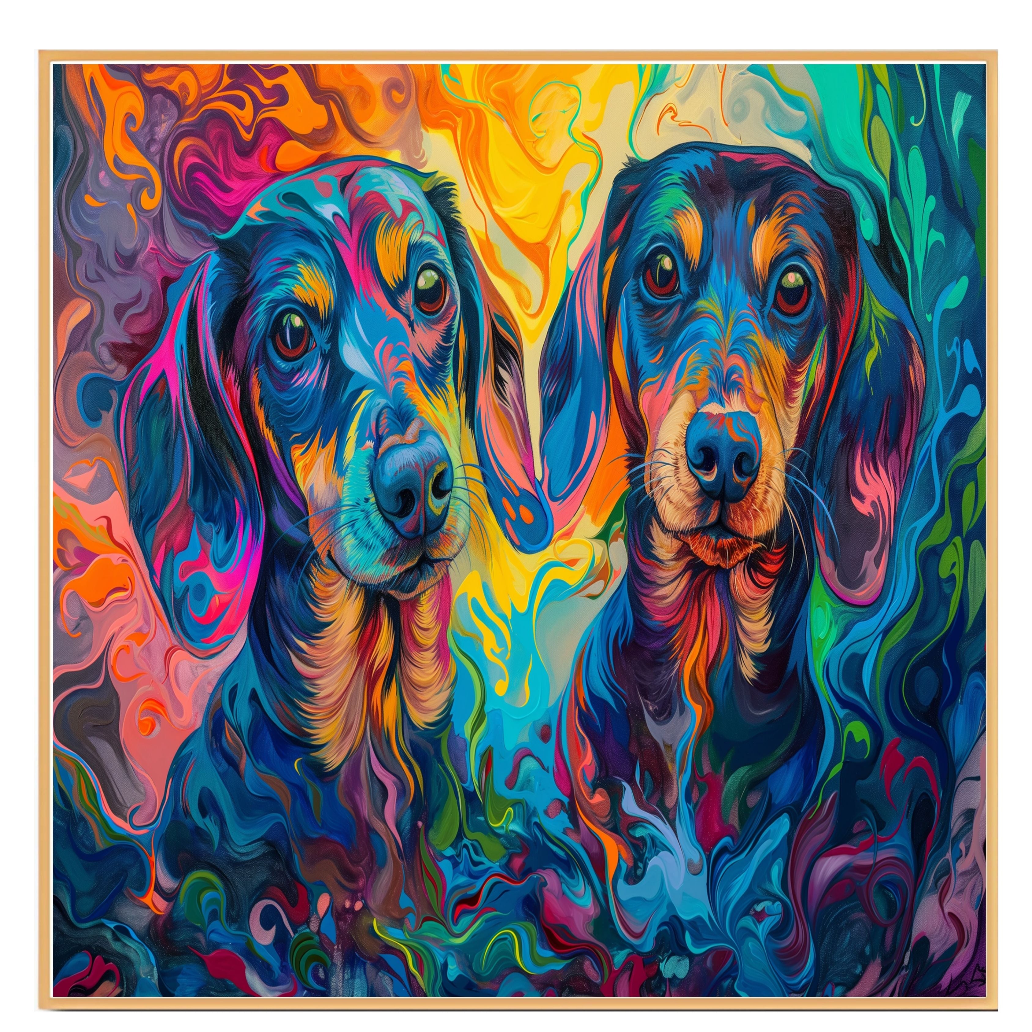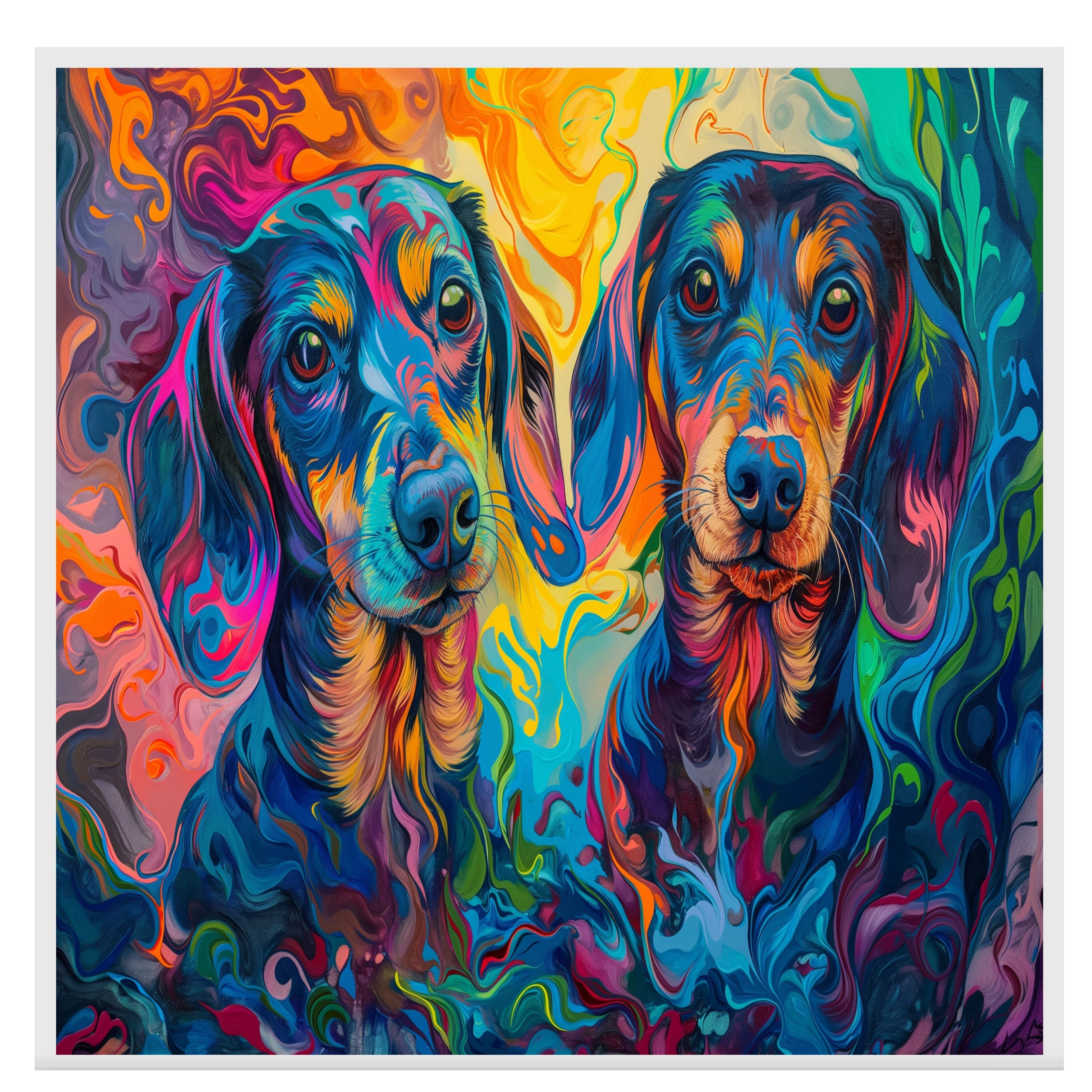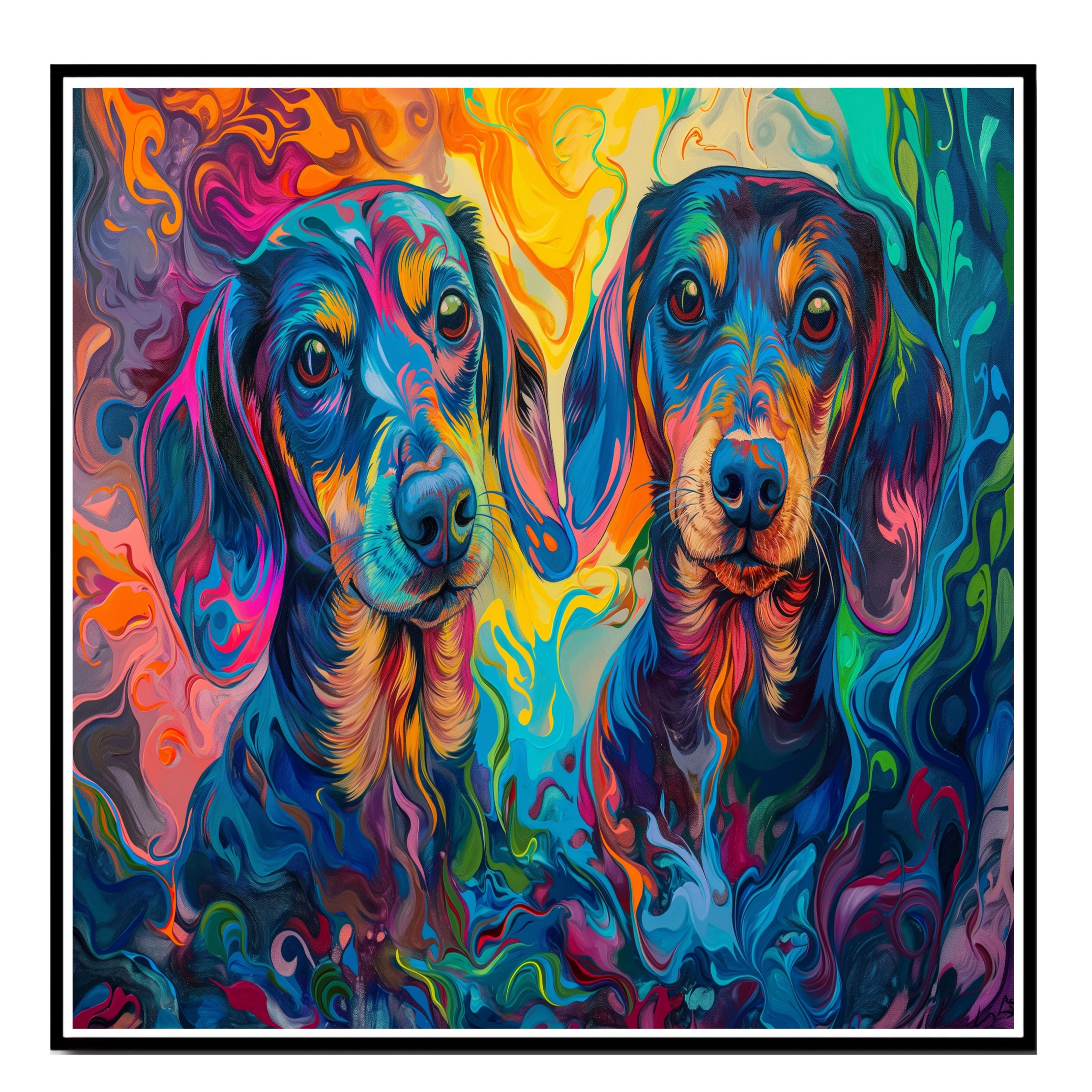 Celebrate your love for dachshunds and modern art with this bold abstract print. Bursting with swirling color and personality, it's the perfect addition to pet-friendly spaces, eclectic interiors, or as a unique gift for dog enthusiasts and art lovers alike.