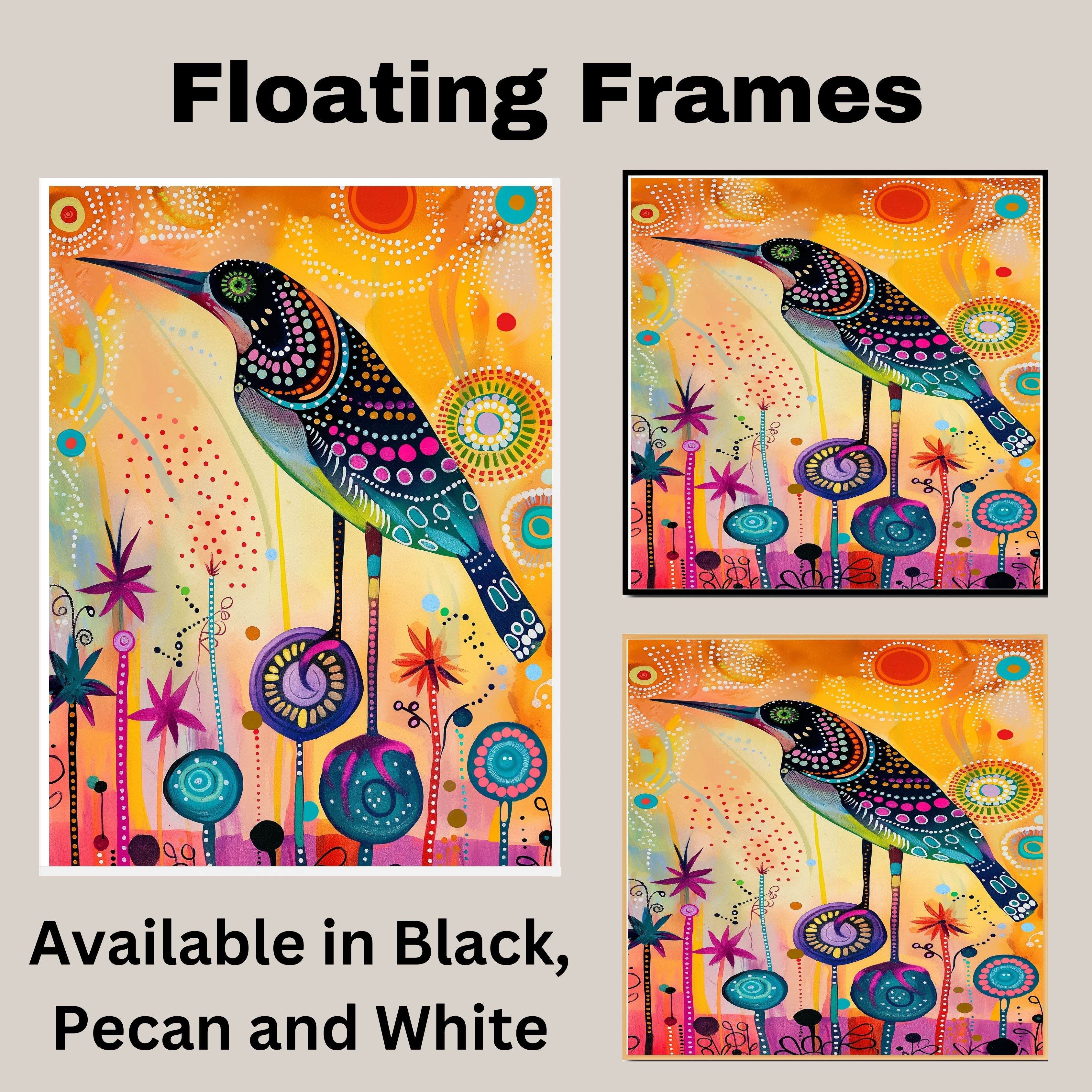 1.5" Thick Floating Framed Canvas: Available in Black, Pecan, and White Grain. Durable shrink-resistant frame. Comes with easy-to-install hanging kits, ready for immediate display.