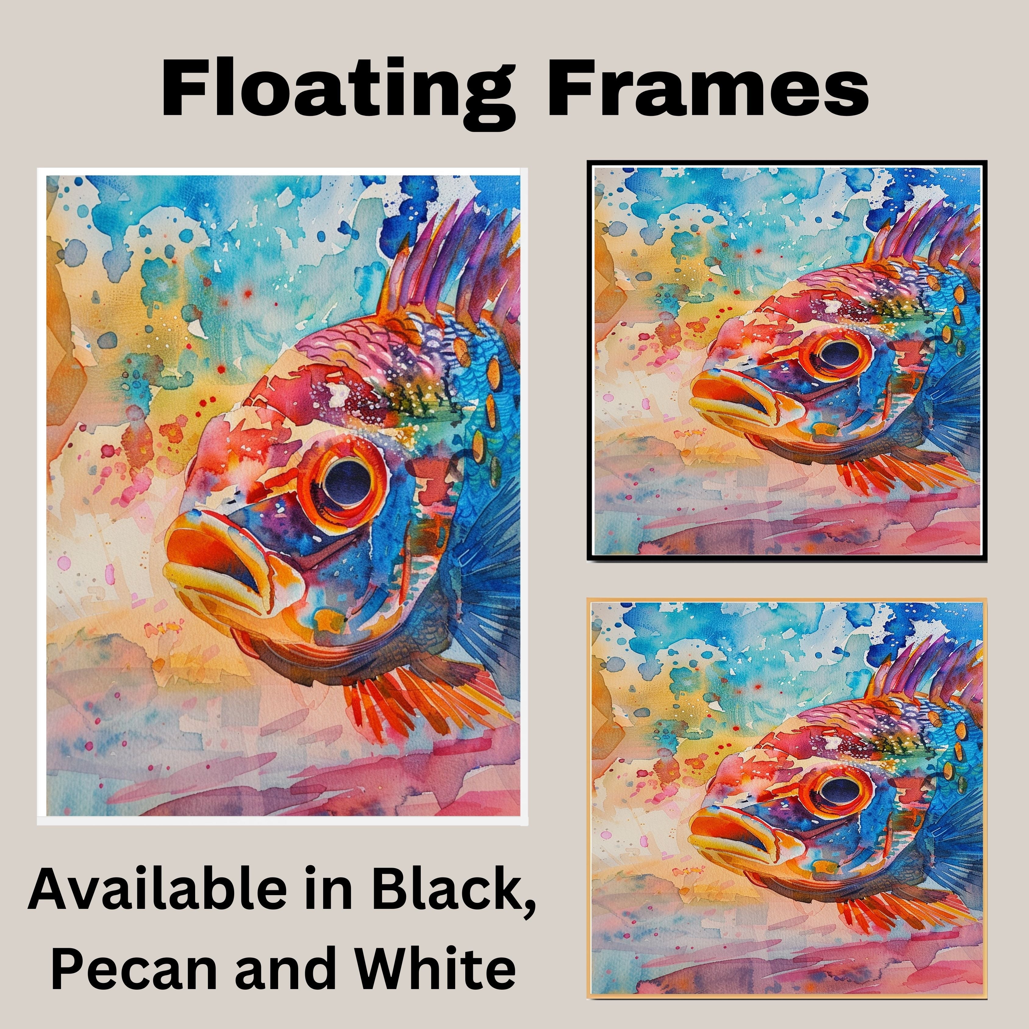 1.5" Thick Floating Framed Canvas: Available in Black, Pecan, and White Grain. Durable shrink-resistant frame. Comes with easy-to-install hanging kits, ready for immediate display.