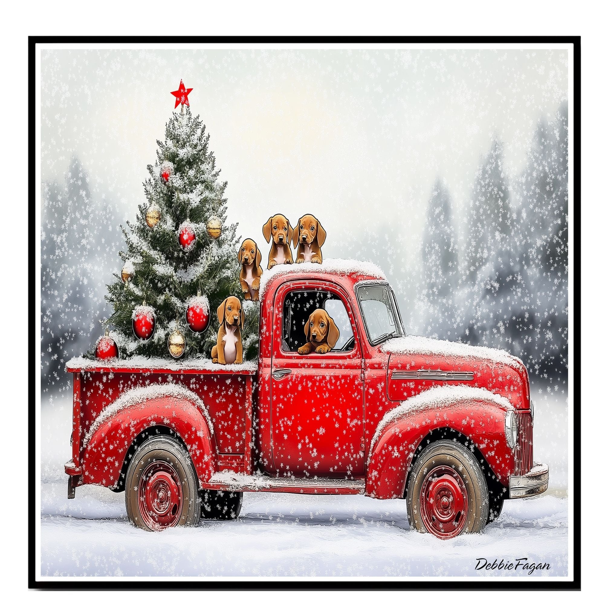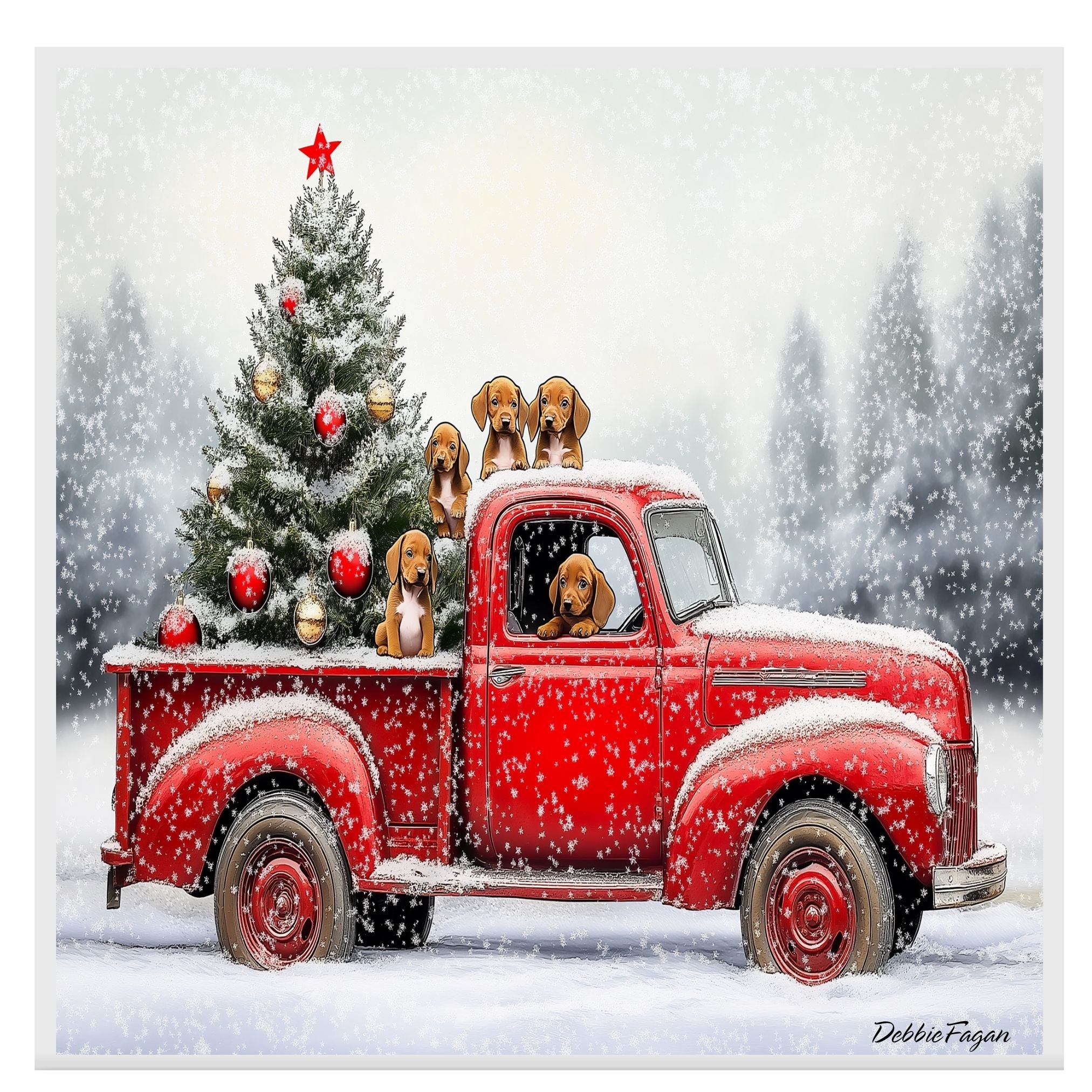 Puppies in a Festive Red Truck Painting Our Holiday Journey with Vizslas Canvas adds a touch of...