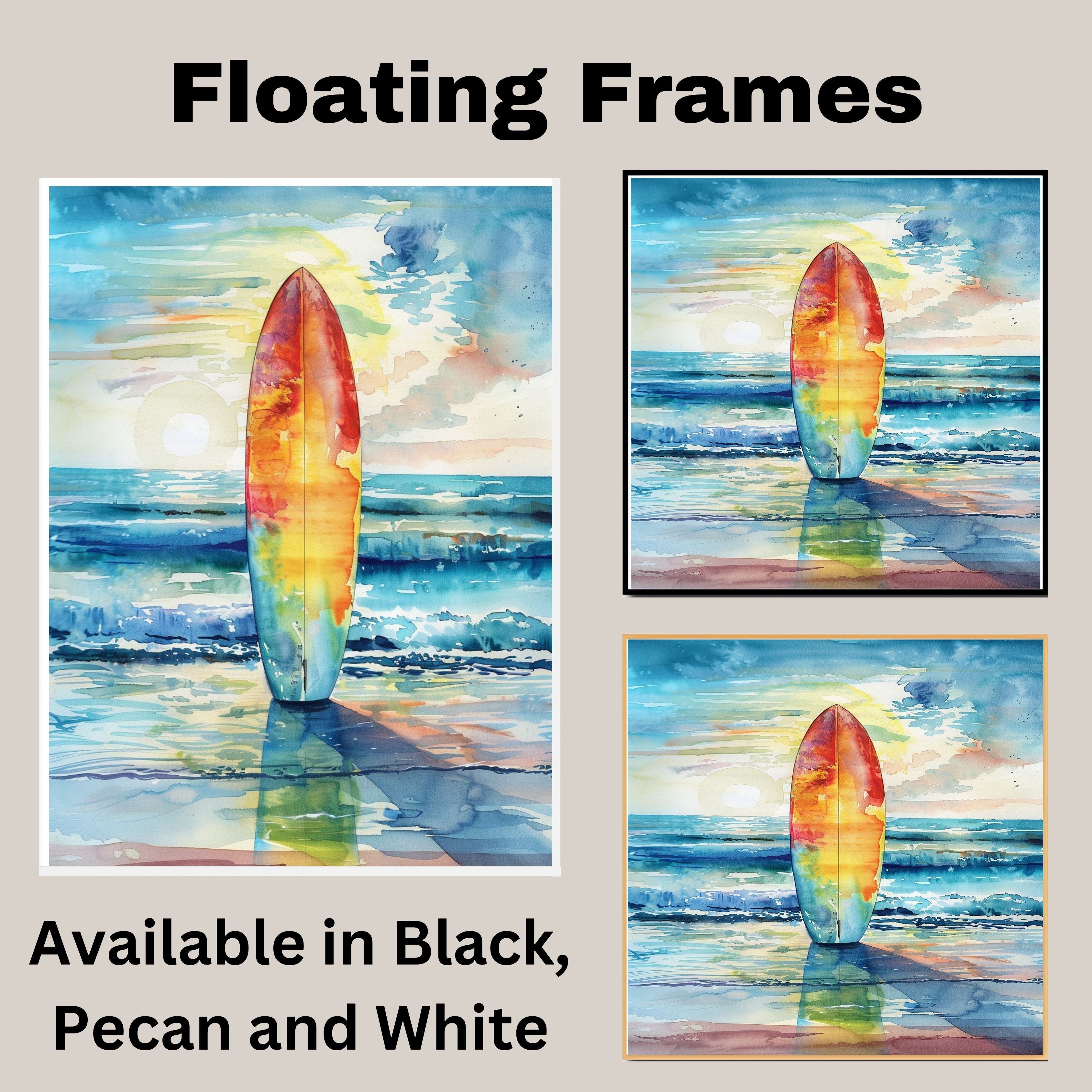 1.5" Thick Floating Framed Canvas: Available in Black, Pecan, and White Grain. Durable shrink-resistant frame. Comes with easy-to-install hanging kits, ready for immediate display.