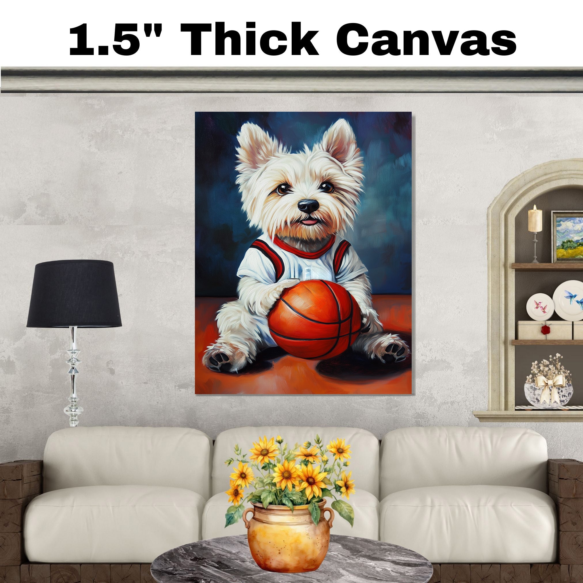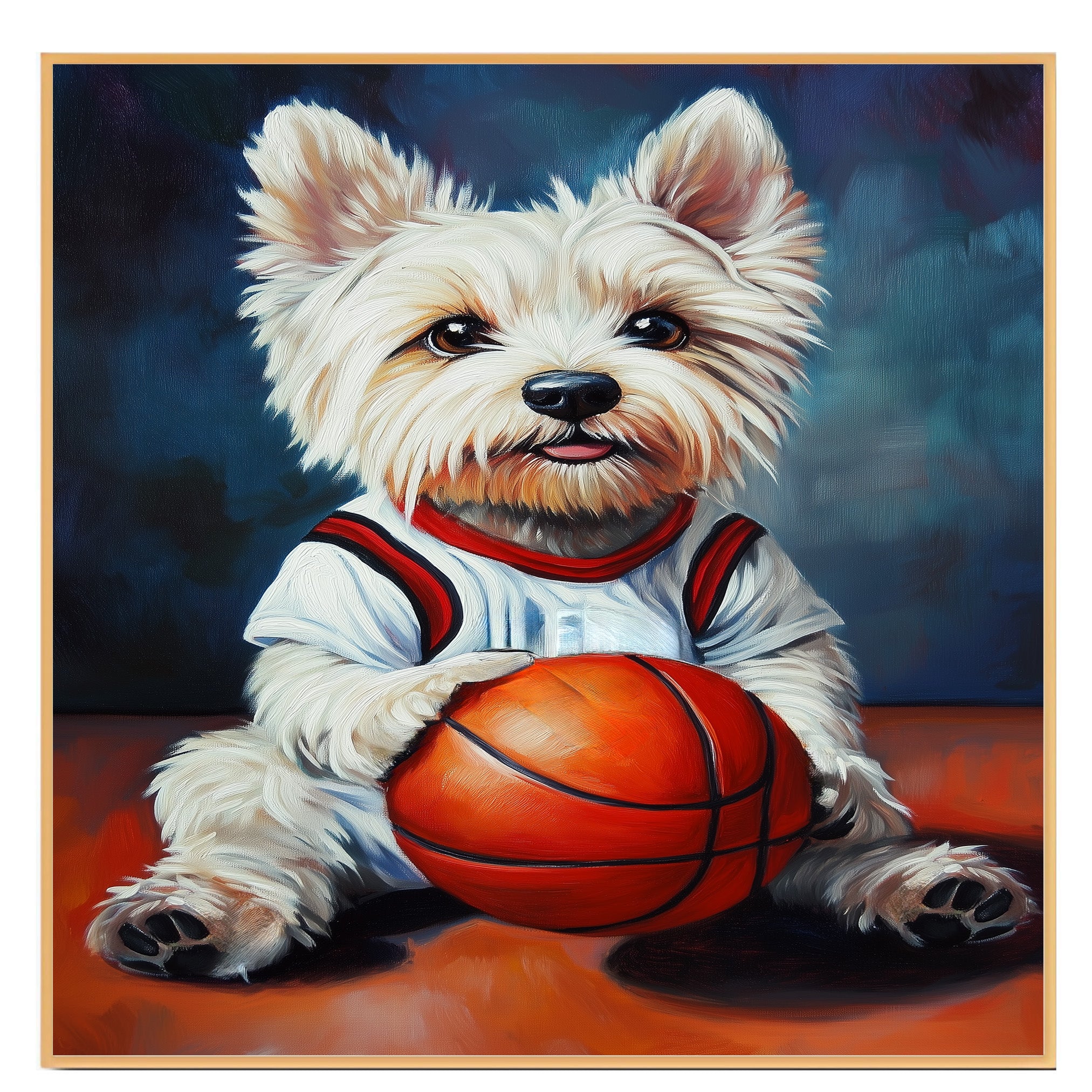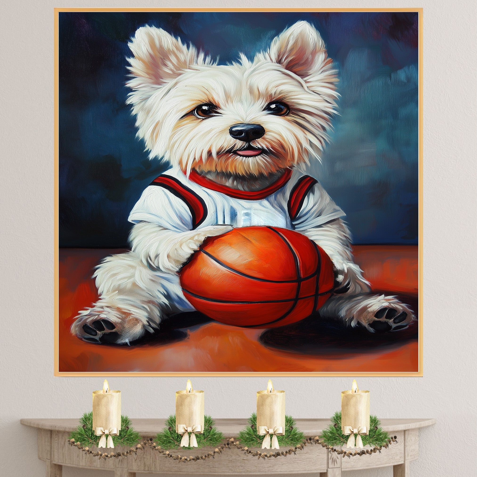 Whether decorating your favorite space or gifting a special Westie lover, this basketball artwork brings happiness, character, and sporty charm into any home.
