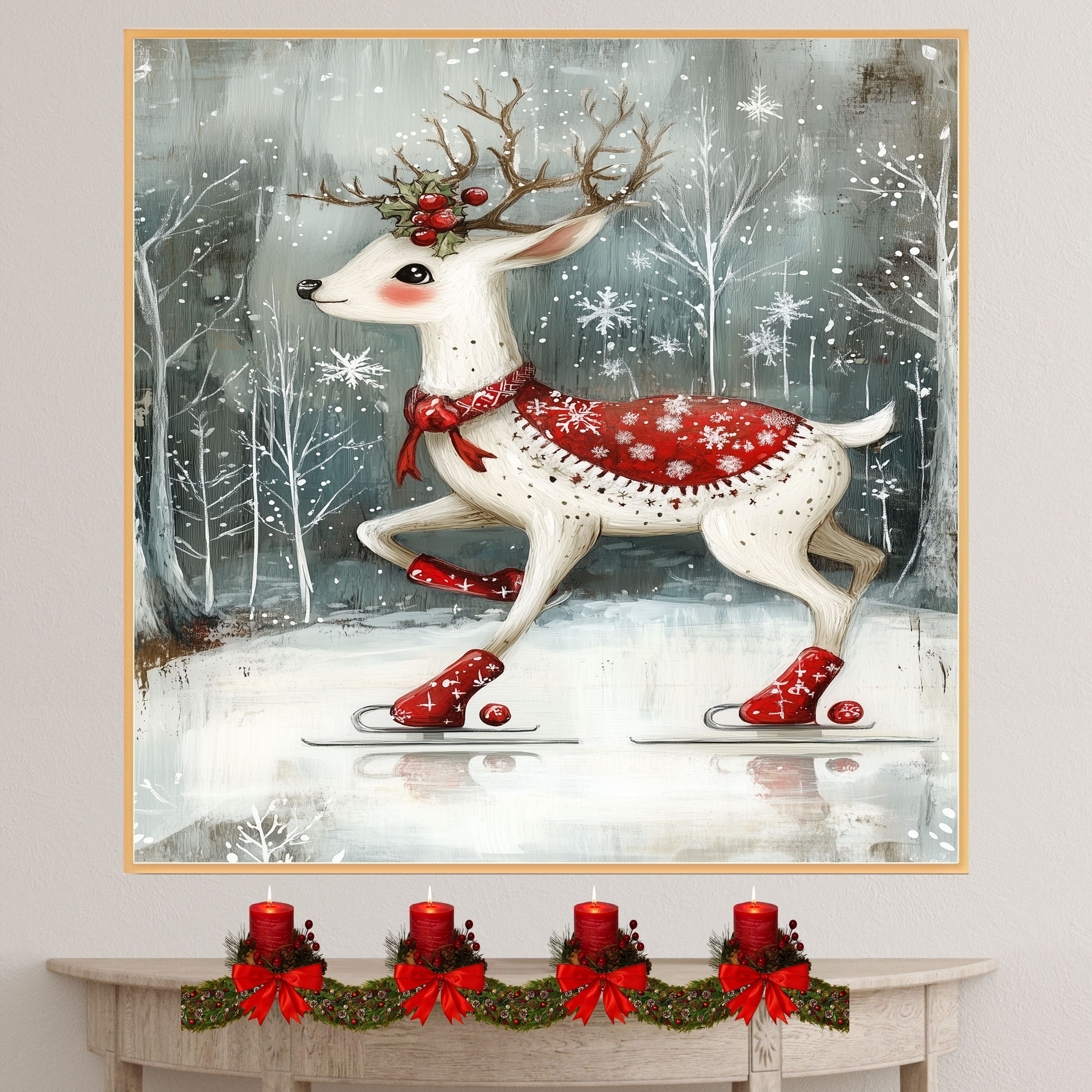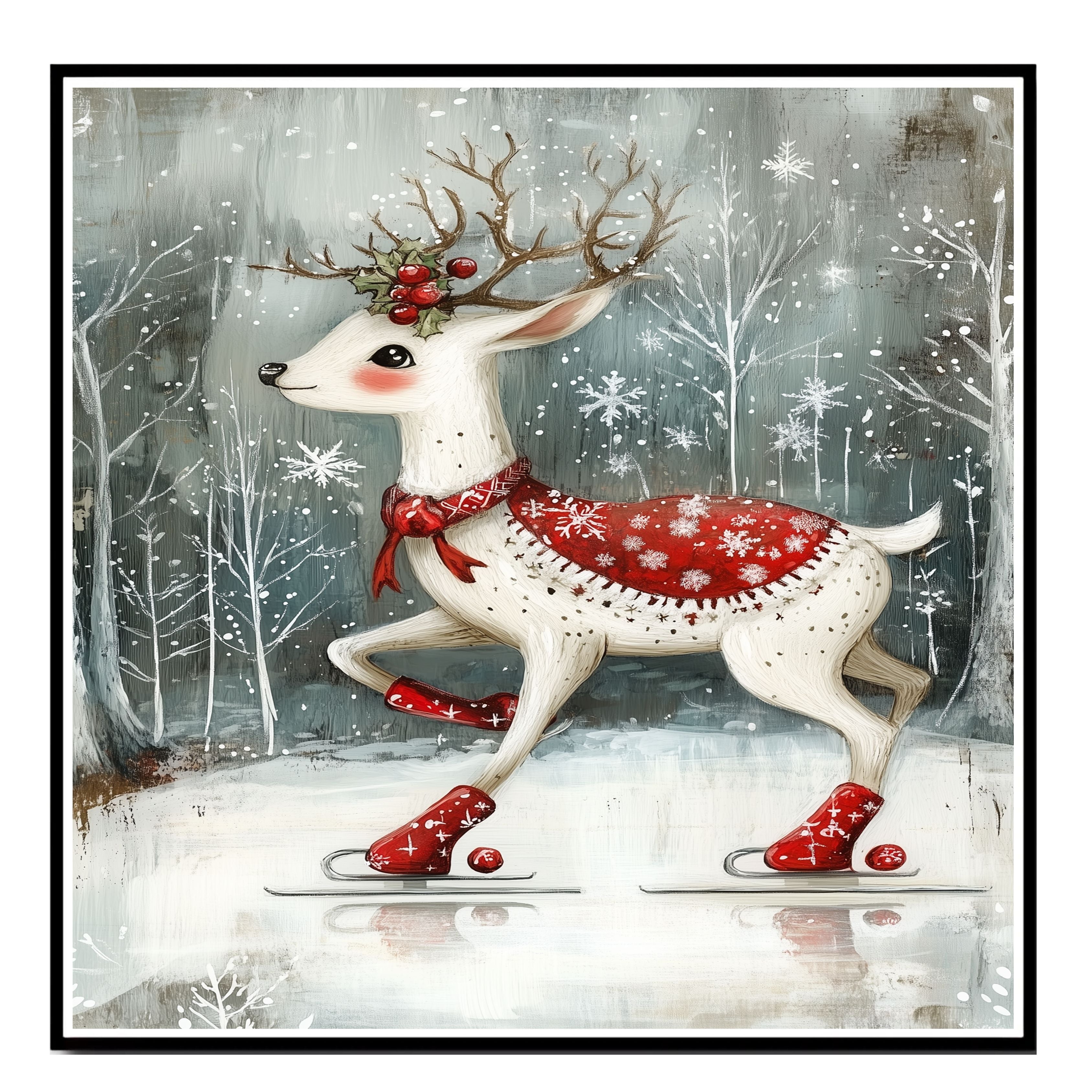 Bring the magic of winter to your home with this delightful illustration of a Christmas deer gliding...