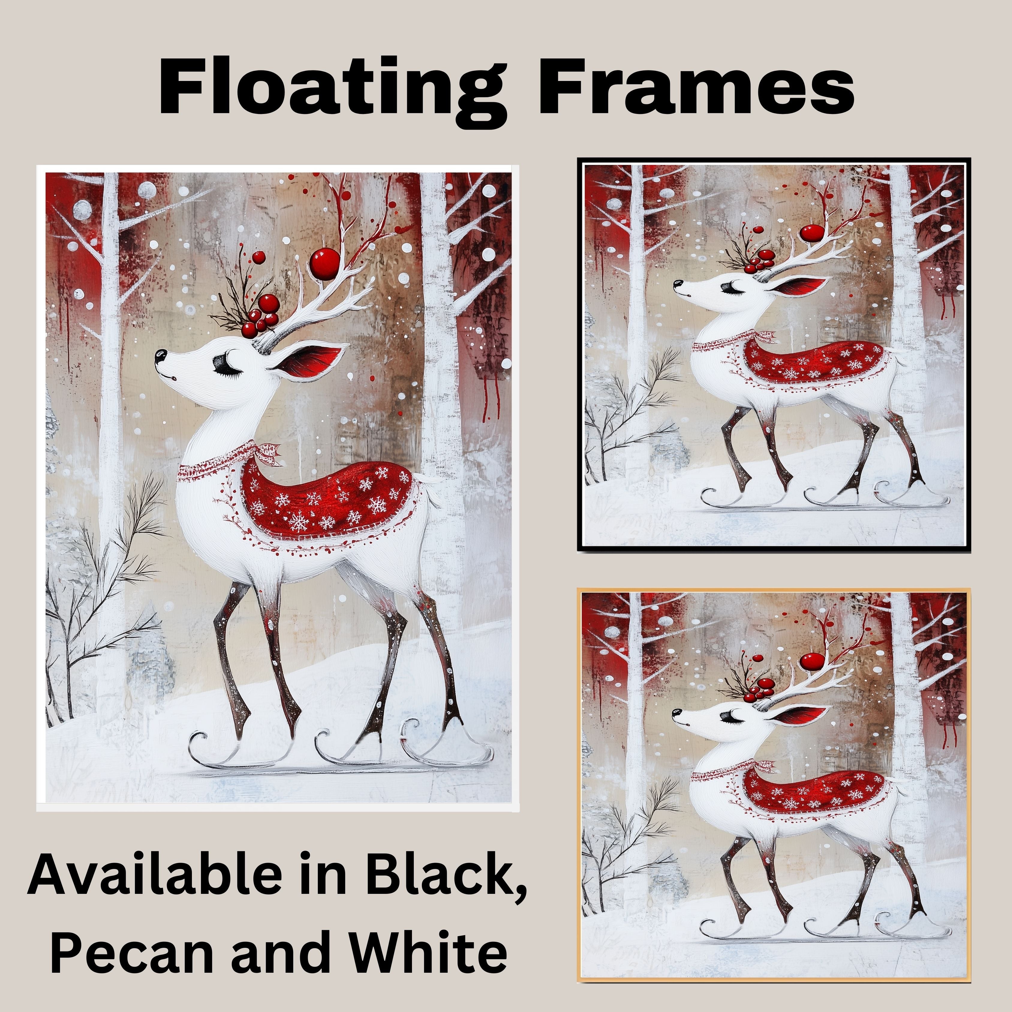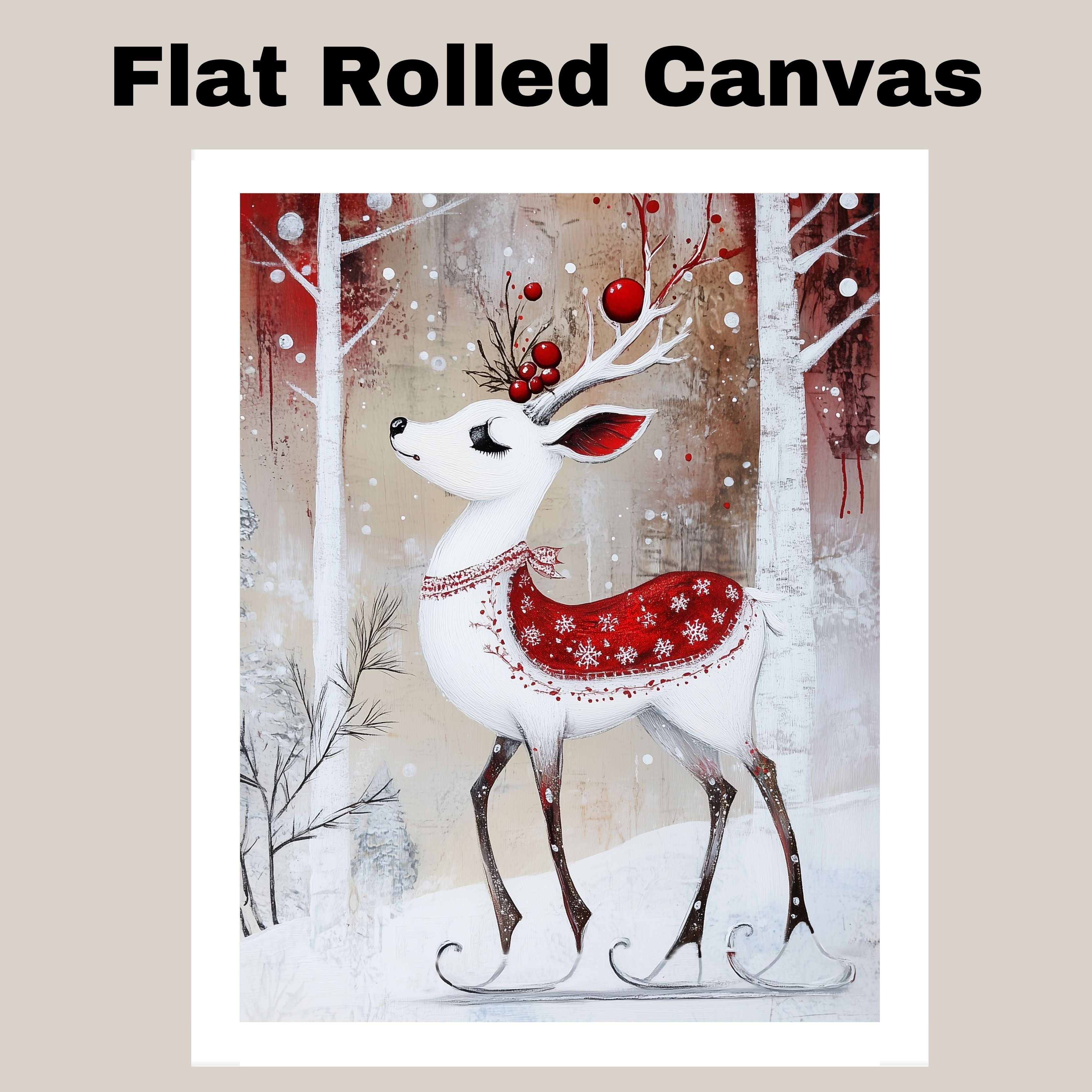 Whimsical Christmas Deer Ice Skating with Red Berries and Snowflake Blanket Woodland Winter Holiday Animal Illustration for Wall Art or Nursery Decor on Ready to Hang 1.5" Thick Canvas Wrap, Floating Framed Canvas, Flat Rolled Canvas
