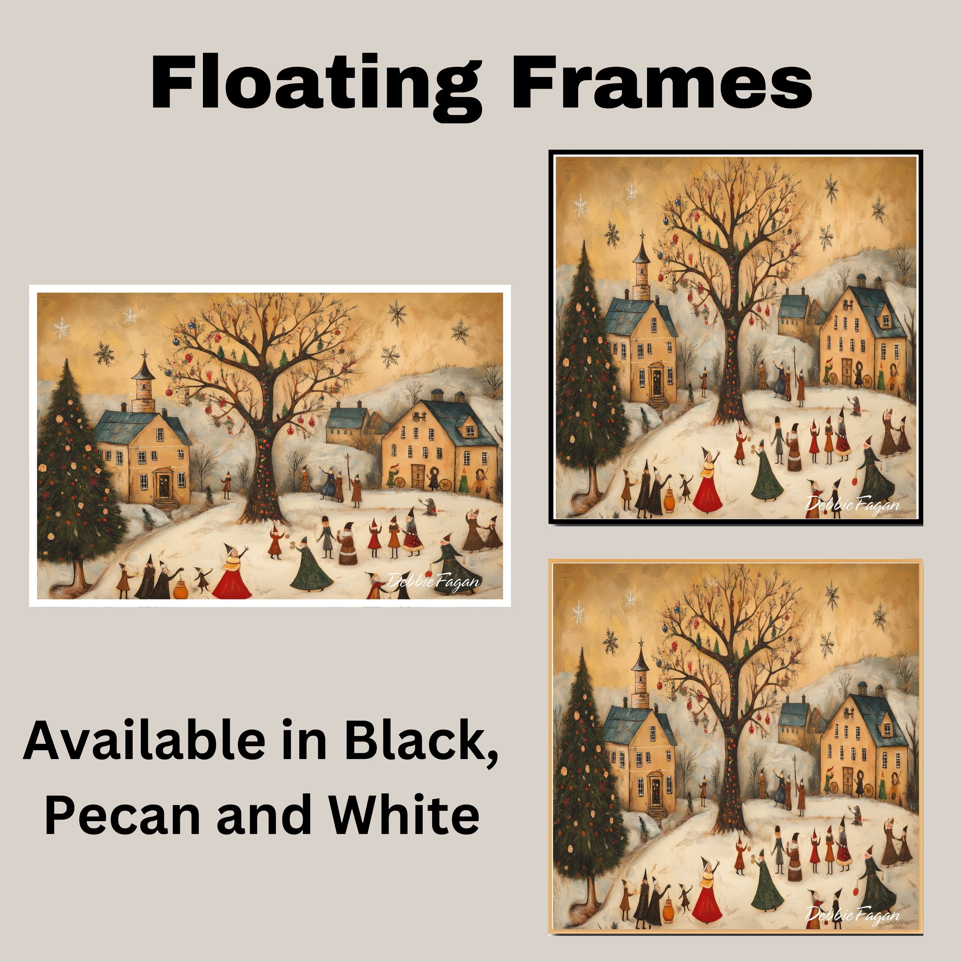 1.5" Thick Floating Framed Canvas: Available in Black, Pecan, and White Grain. Durable shrink-resistant frame. Comes with easy-to-install hanging kits, ready for immediate display.