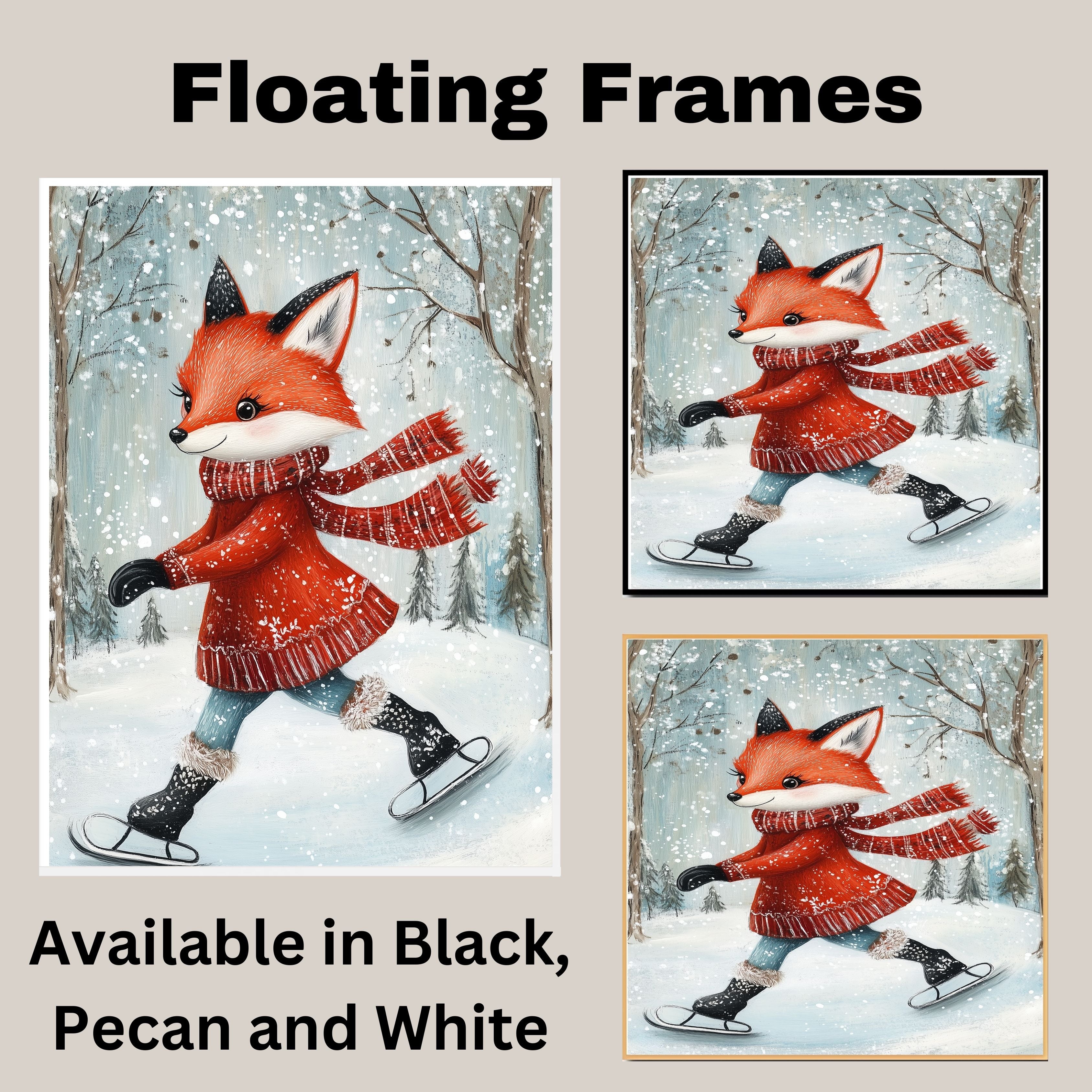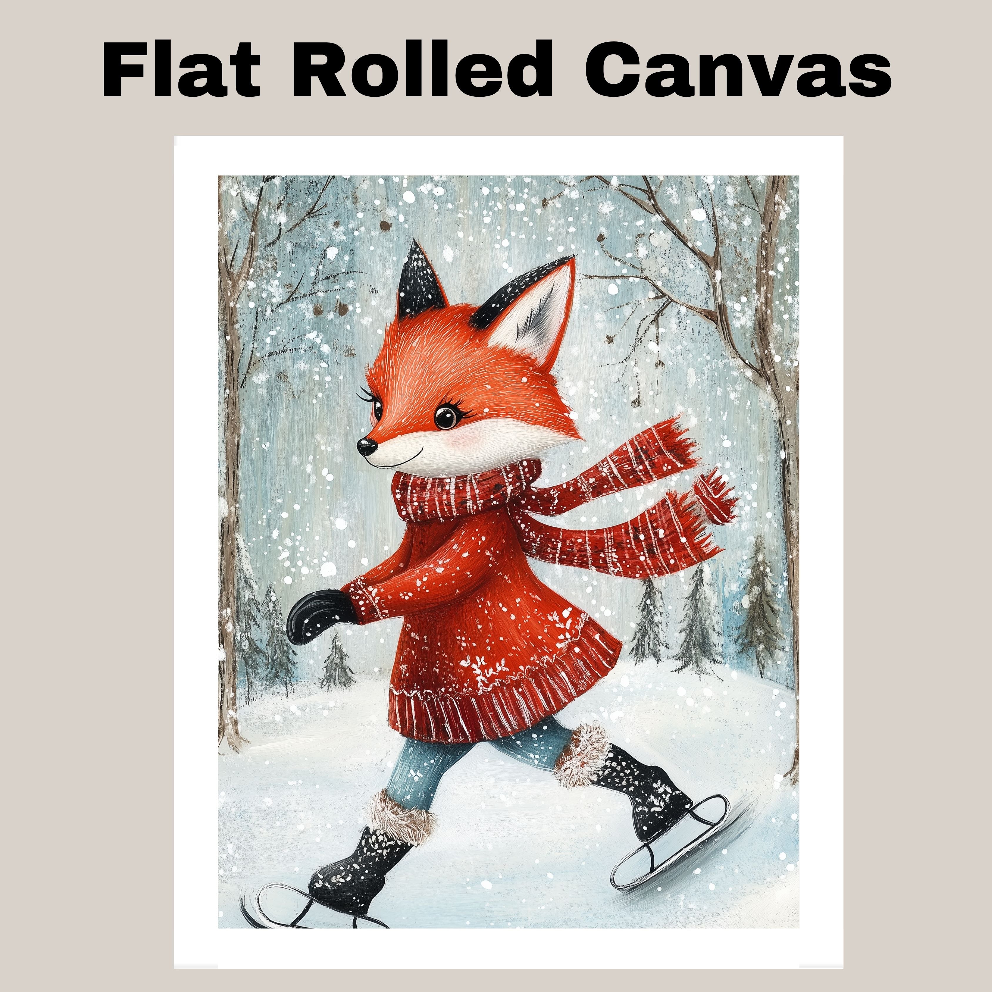 Whimsical Christmas Fox Ice Skating in Red Sweater and Scarf Canvas or Wall Art Print on Ready to Hang 1.5" Thick Canvas Wrap, Floating Framed Canvas, Flat Rolled Canvas