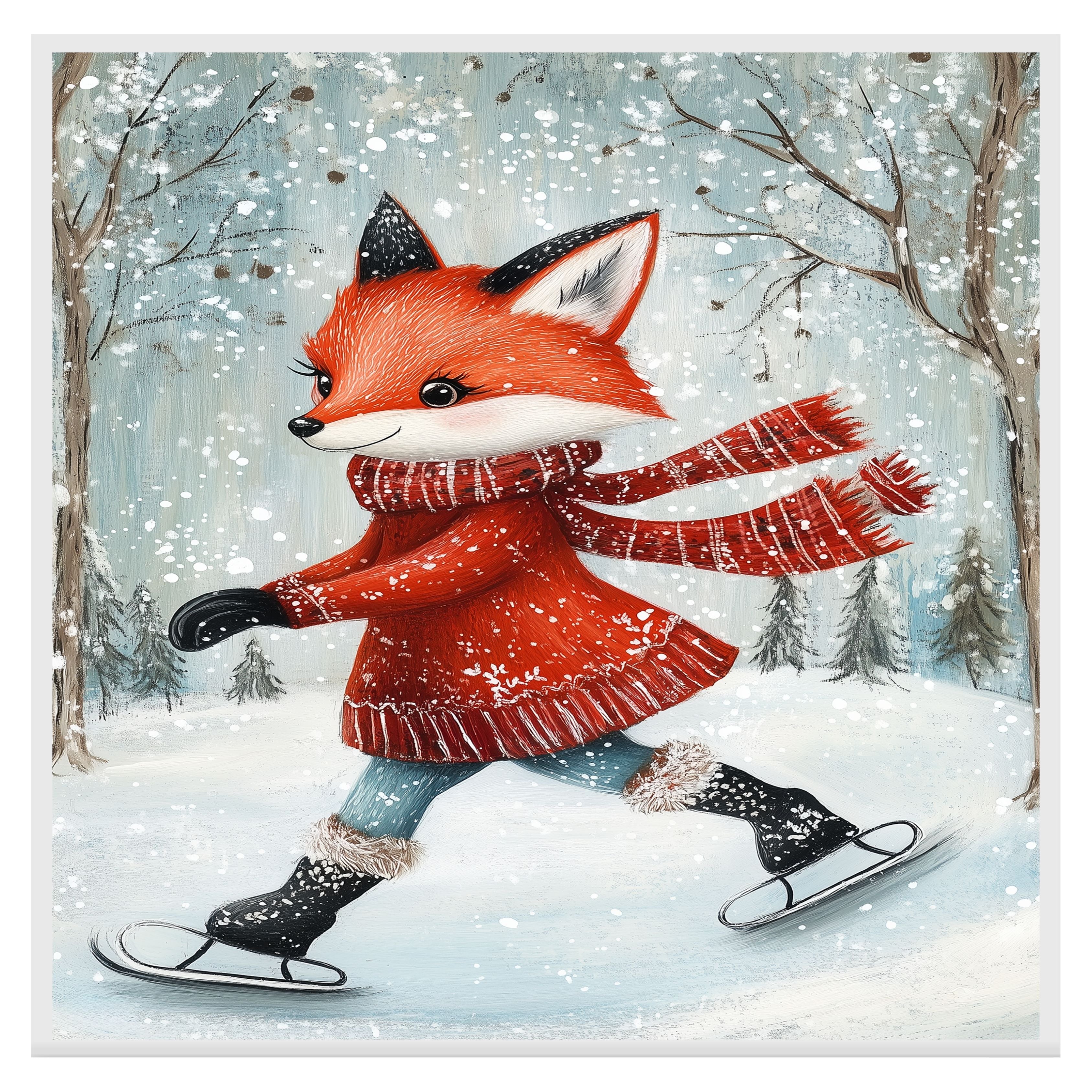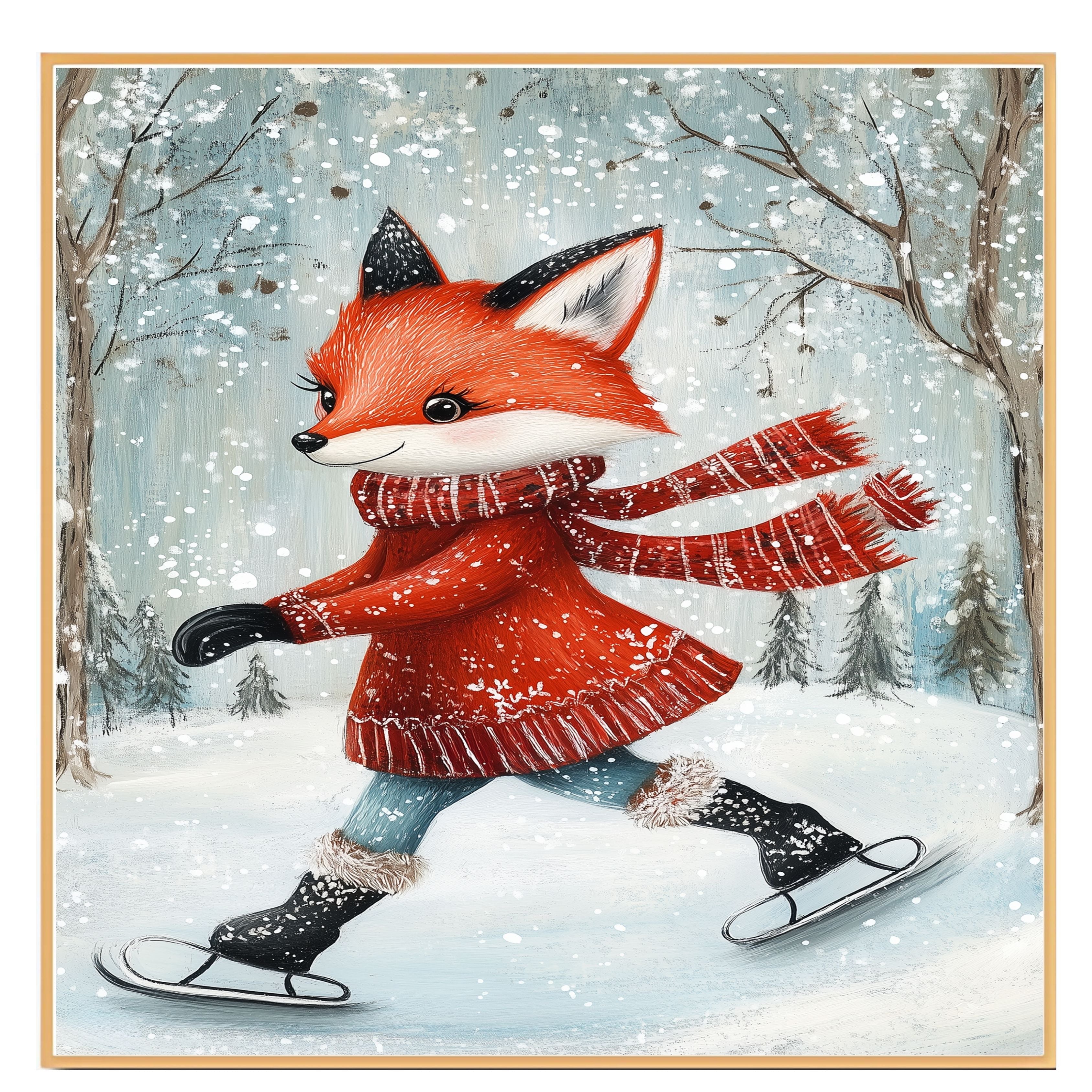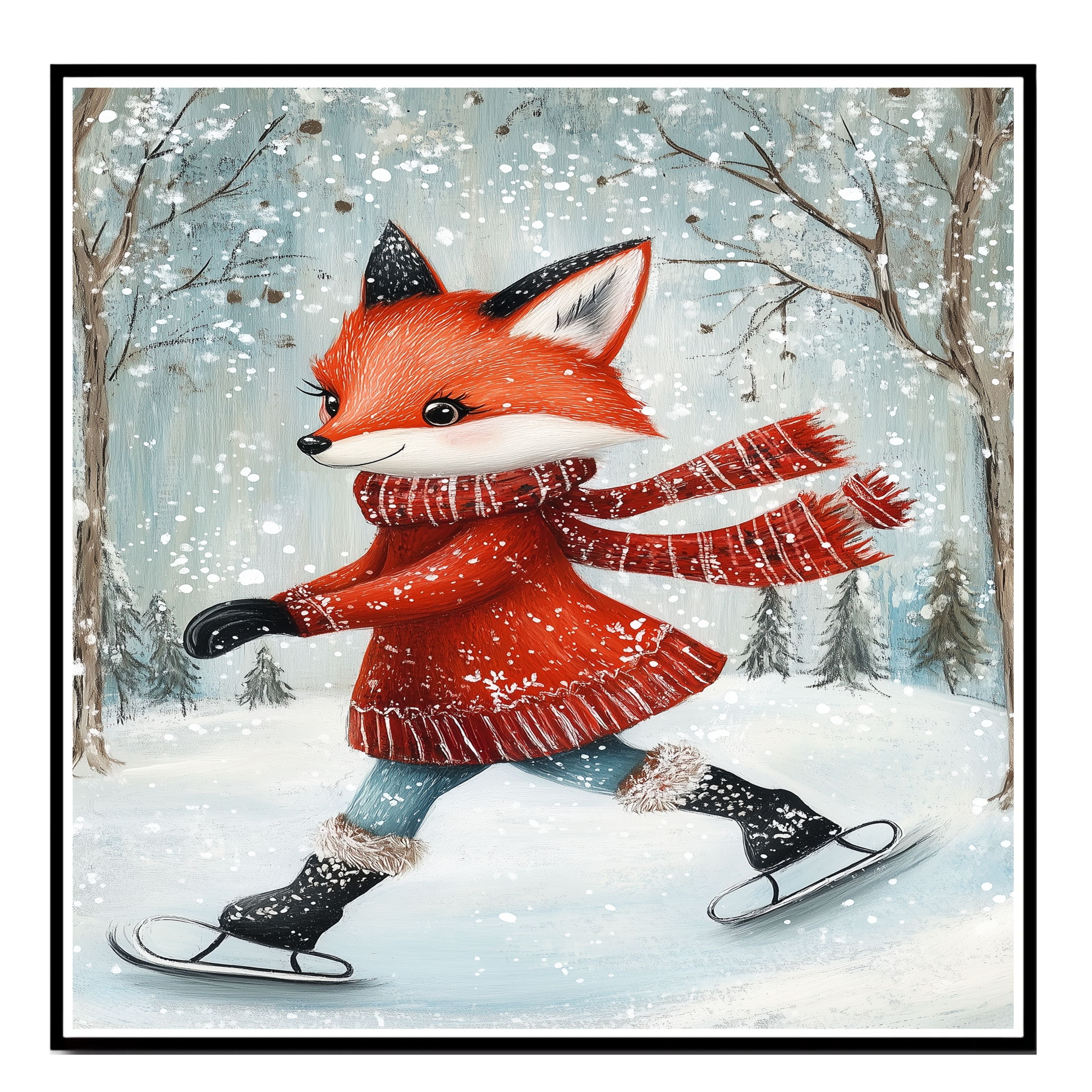 Let your holiday décor shine with woodland charm! This delightful Christmas fox ice skating through a snow-covered forest in a cozy red sweater and scarf brings a festive blend of elegance and playfulness. Perfect for wintry gallery walls, children's spaces, or rustic cabin holiday themes, this artwork captures the whimsy of the season with warmth and flair.