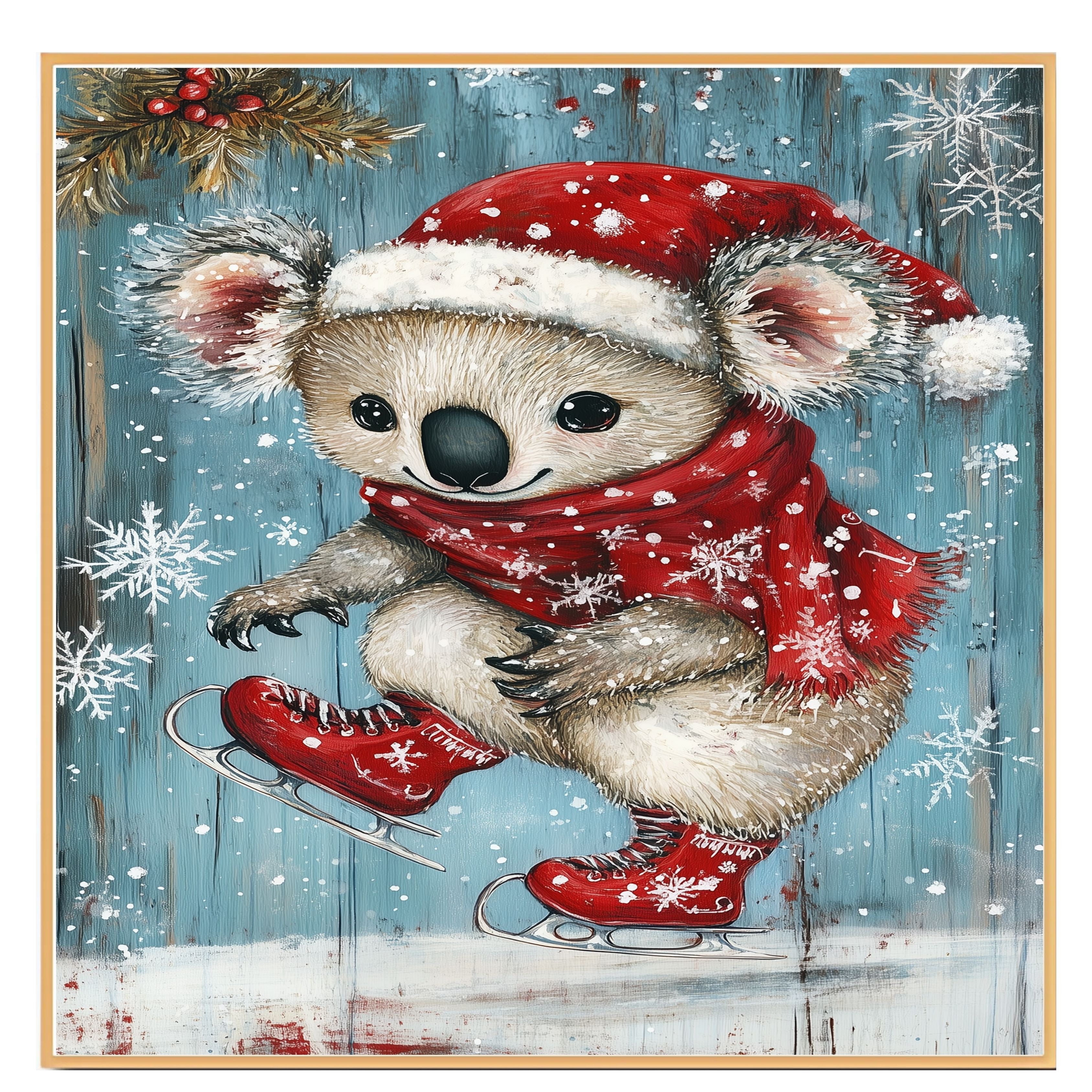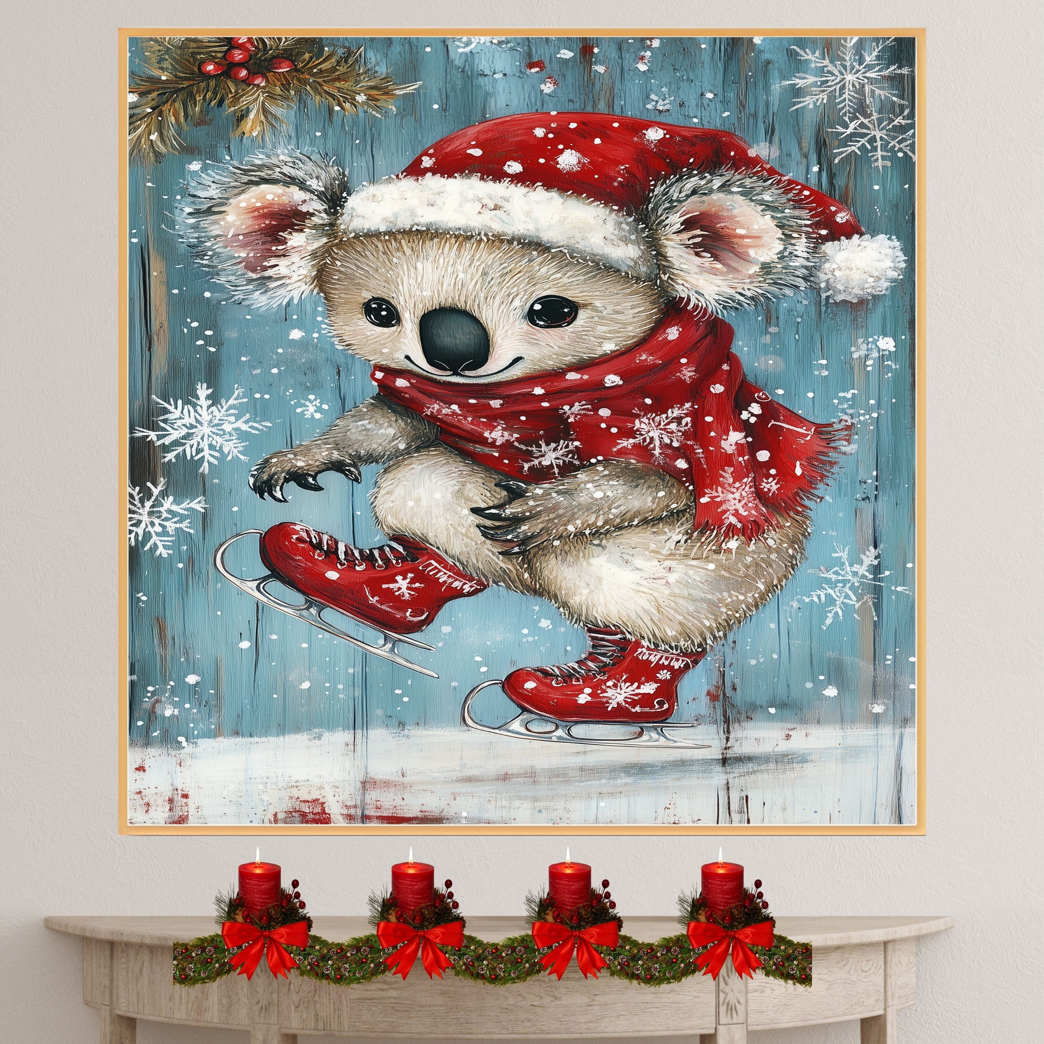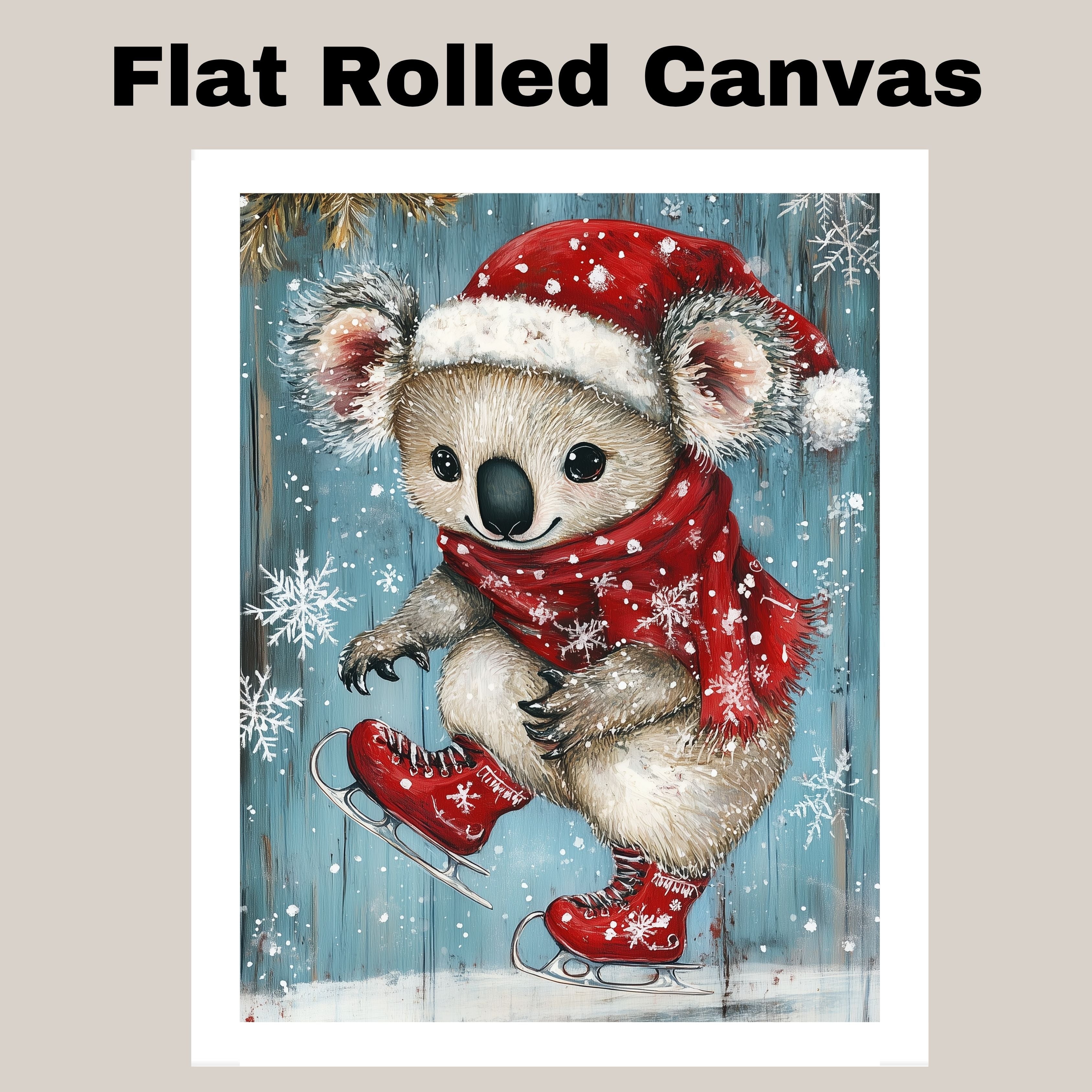Whimsical Christmas Koala Ice Skating with Red Scarf and Santa Hat – Playful Holiday Animal Artwork for Winter Decor, Nursery Walls, or Seasonal Gifting on Ready to Hang 1.5" Thick Canvas Wrap, Floating Framed Canvas, Flat Rolled Canvas