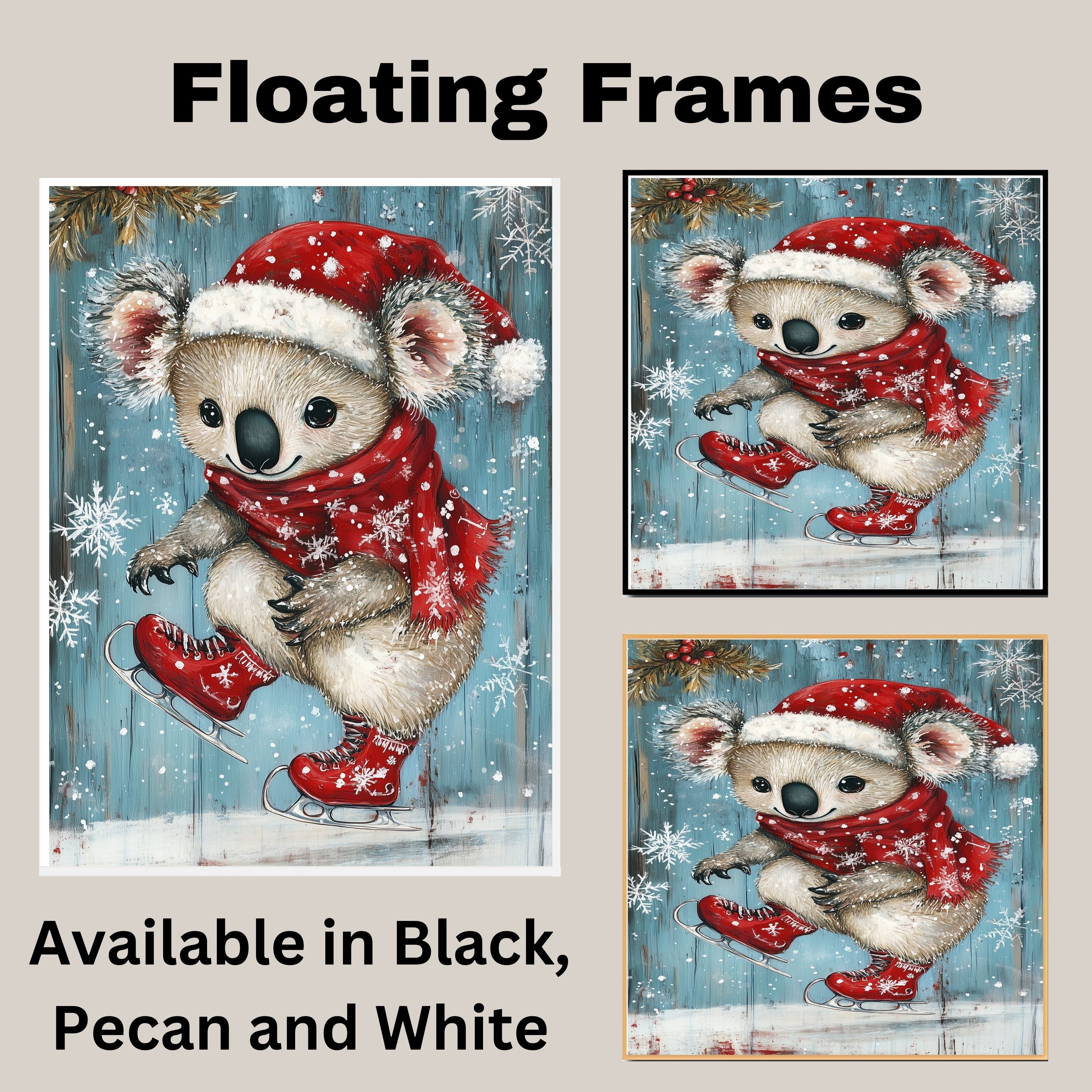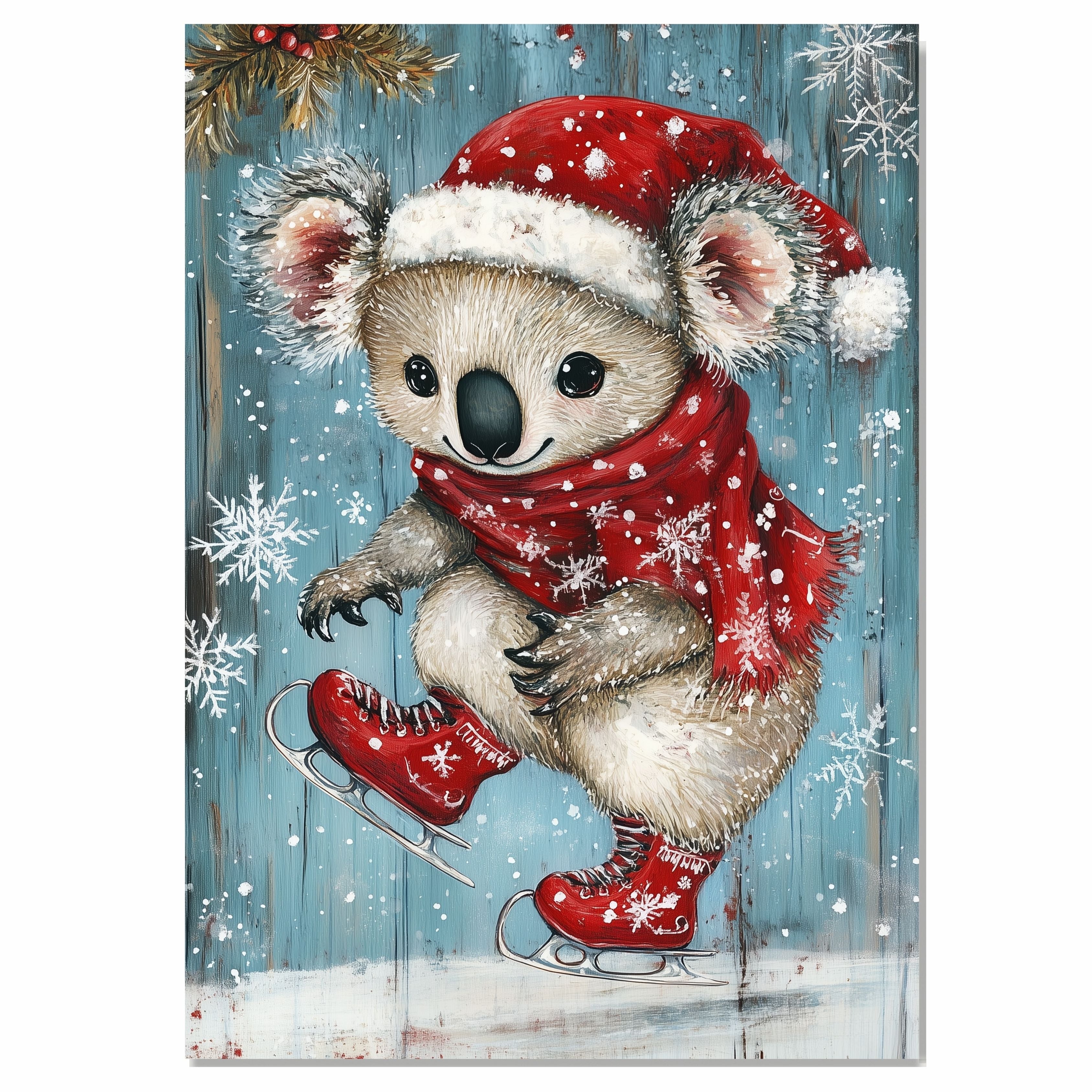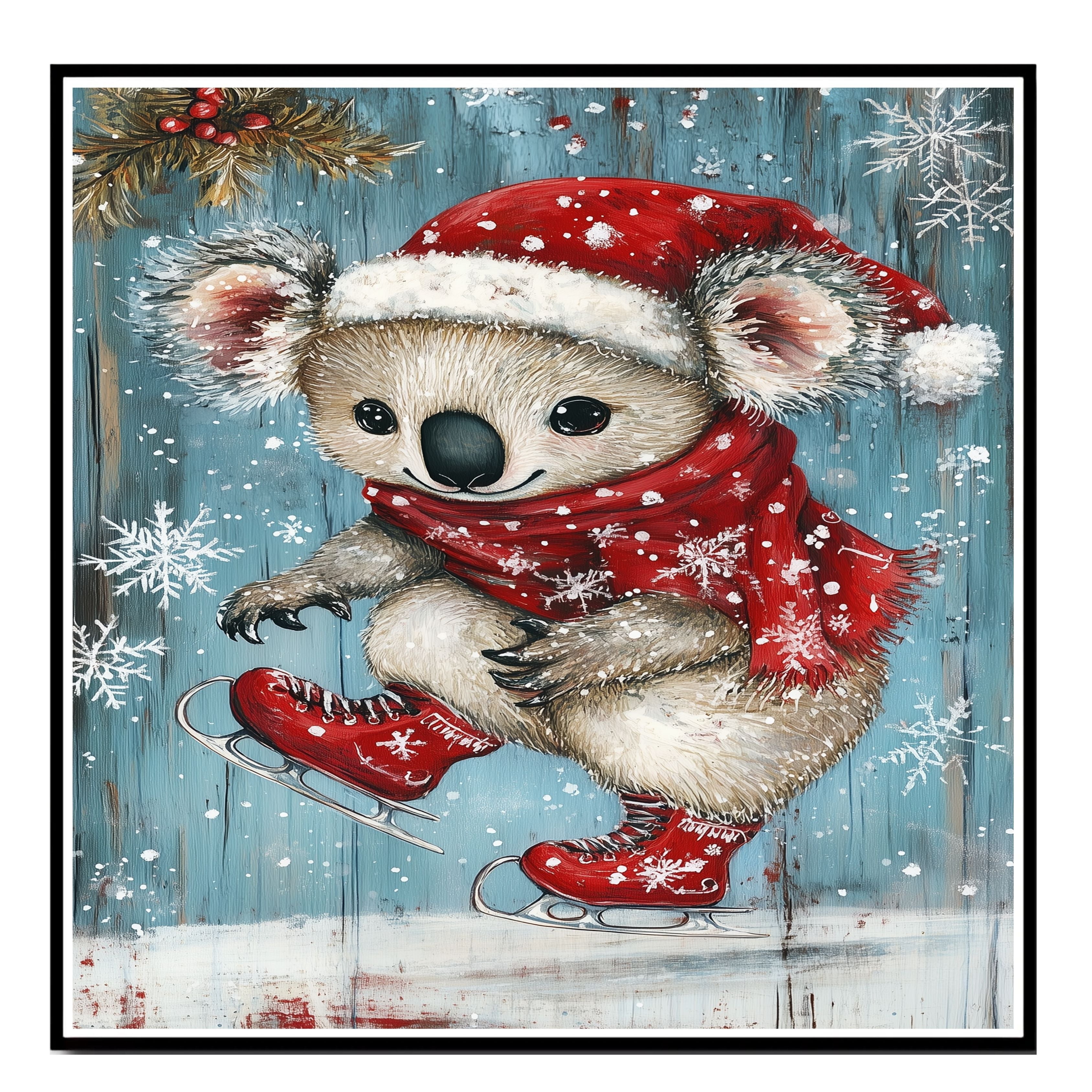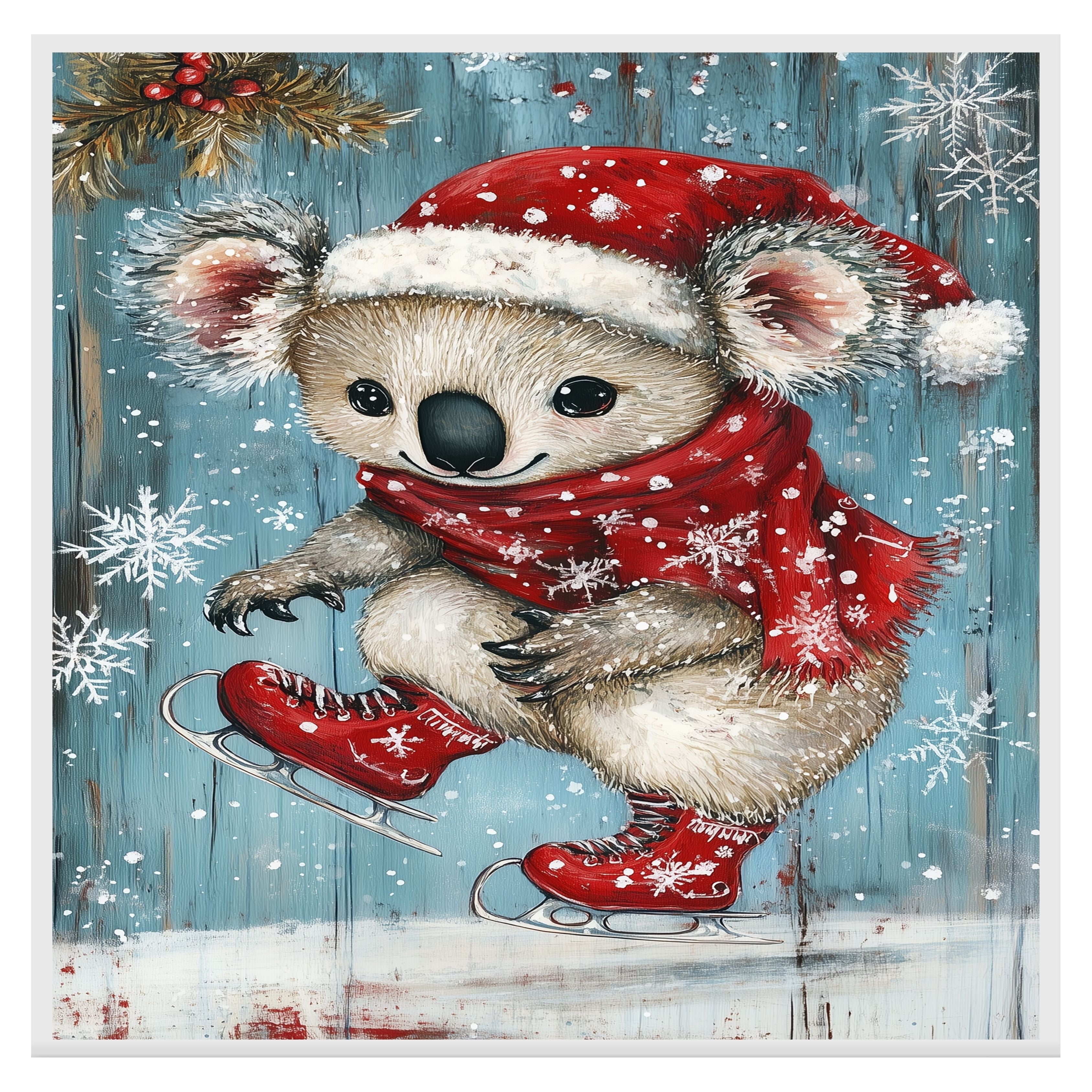 Whimsical Christmas Koala Ice Skating with Red Scarf and Santa Hat – Playful Holiday Animal Artwork for Winter Decor, Nursery Walls, or Seasonal Gifting on Ready to Hang 1.5" Thick Canvas Wrap, Floating Framed Canvas, Flat Rolled Canvas