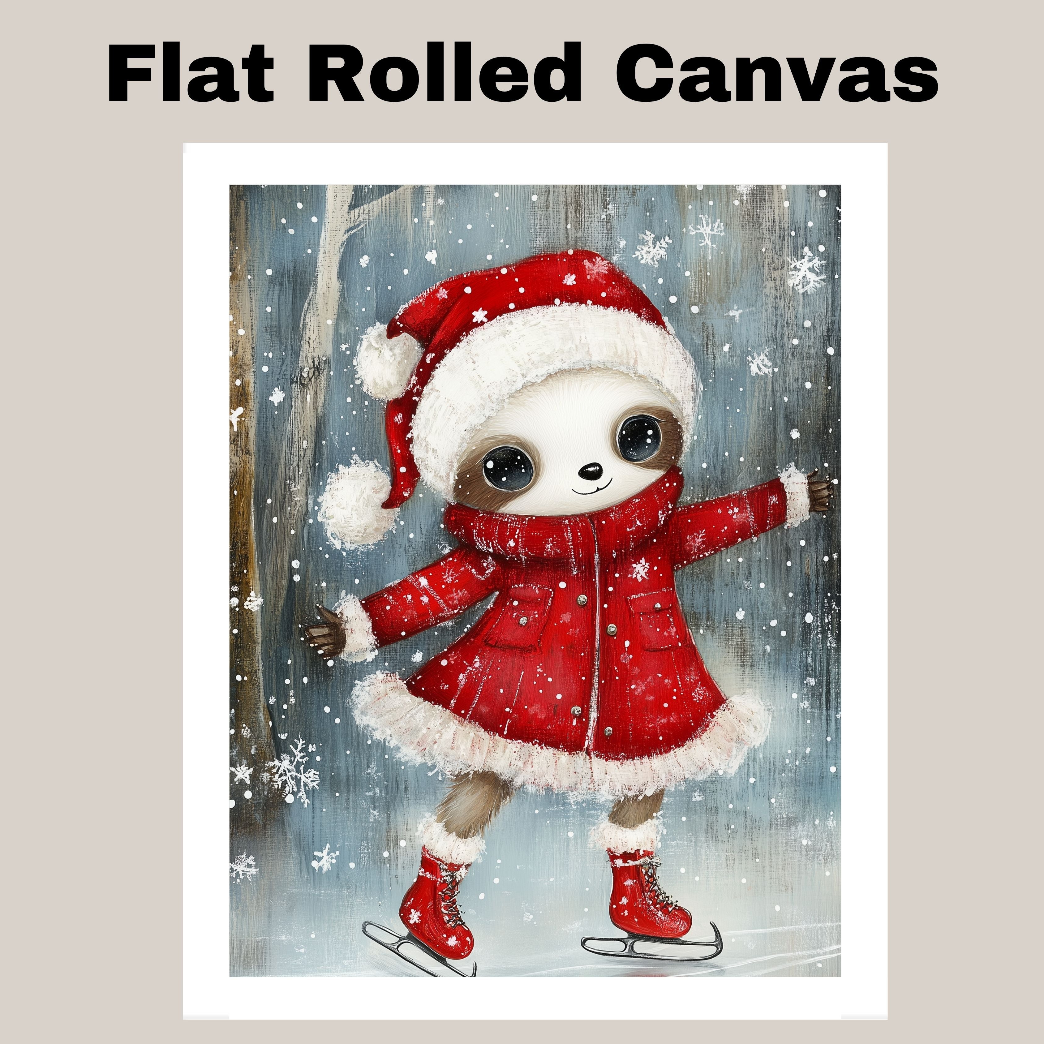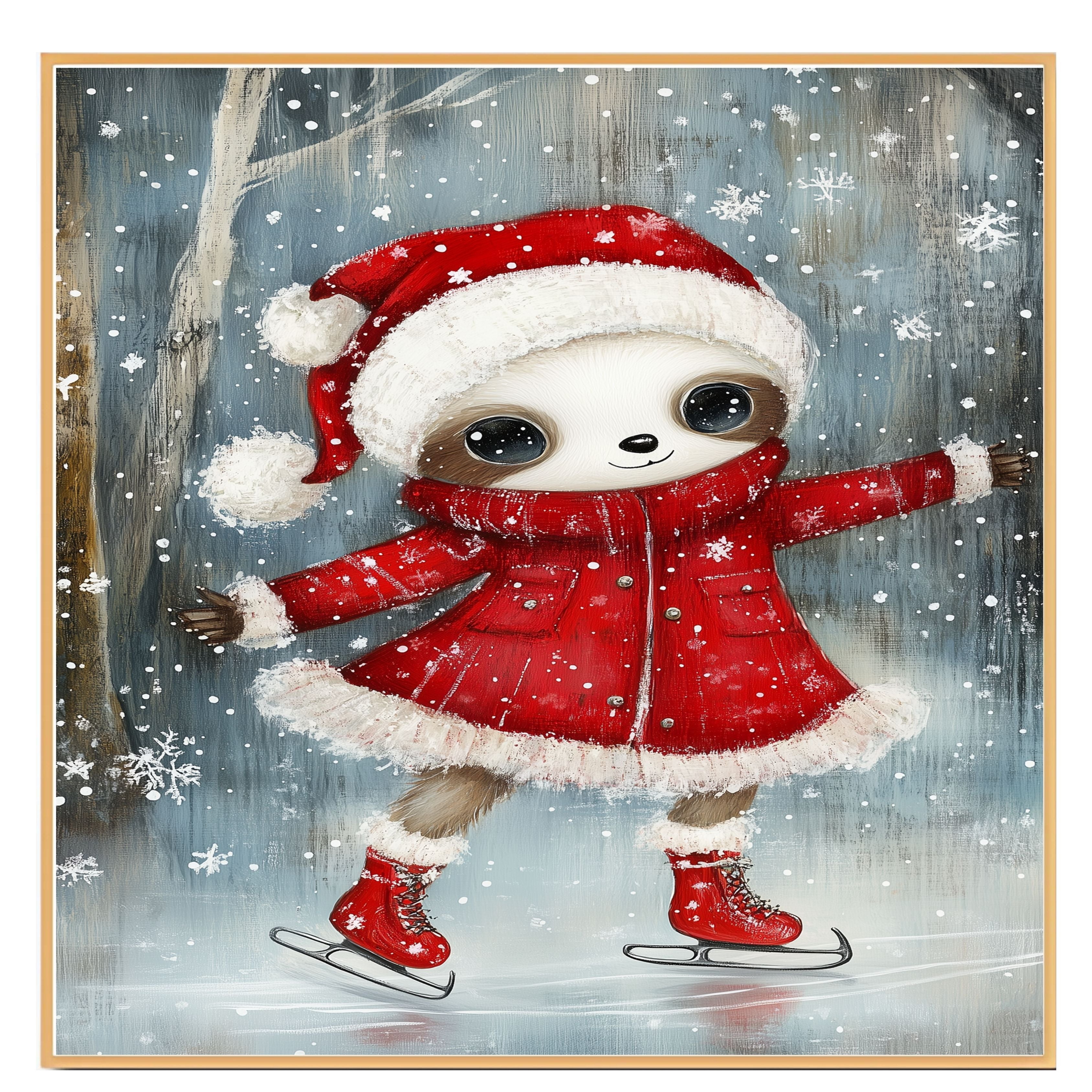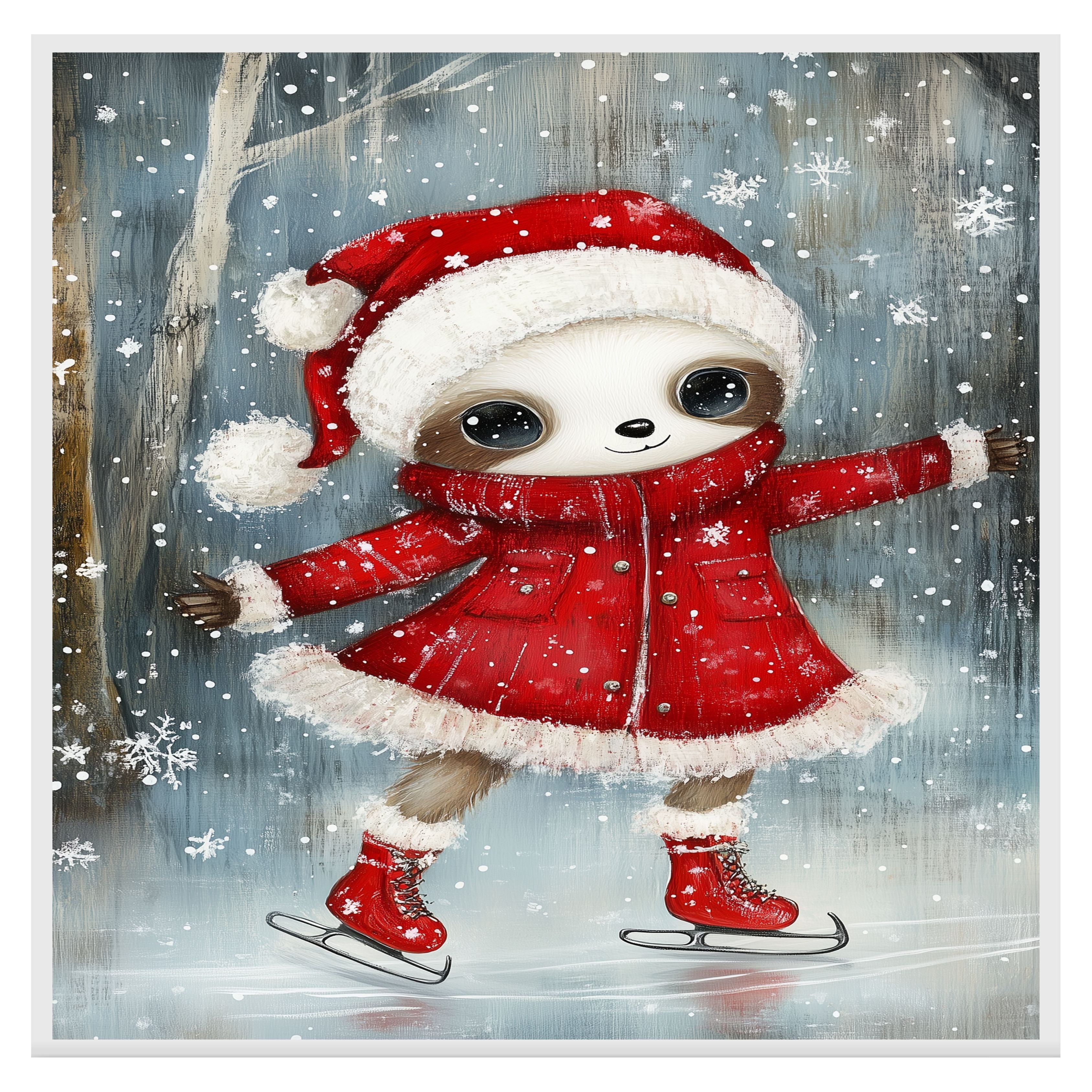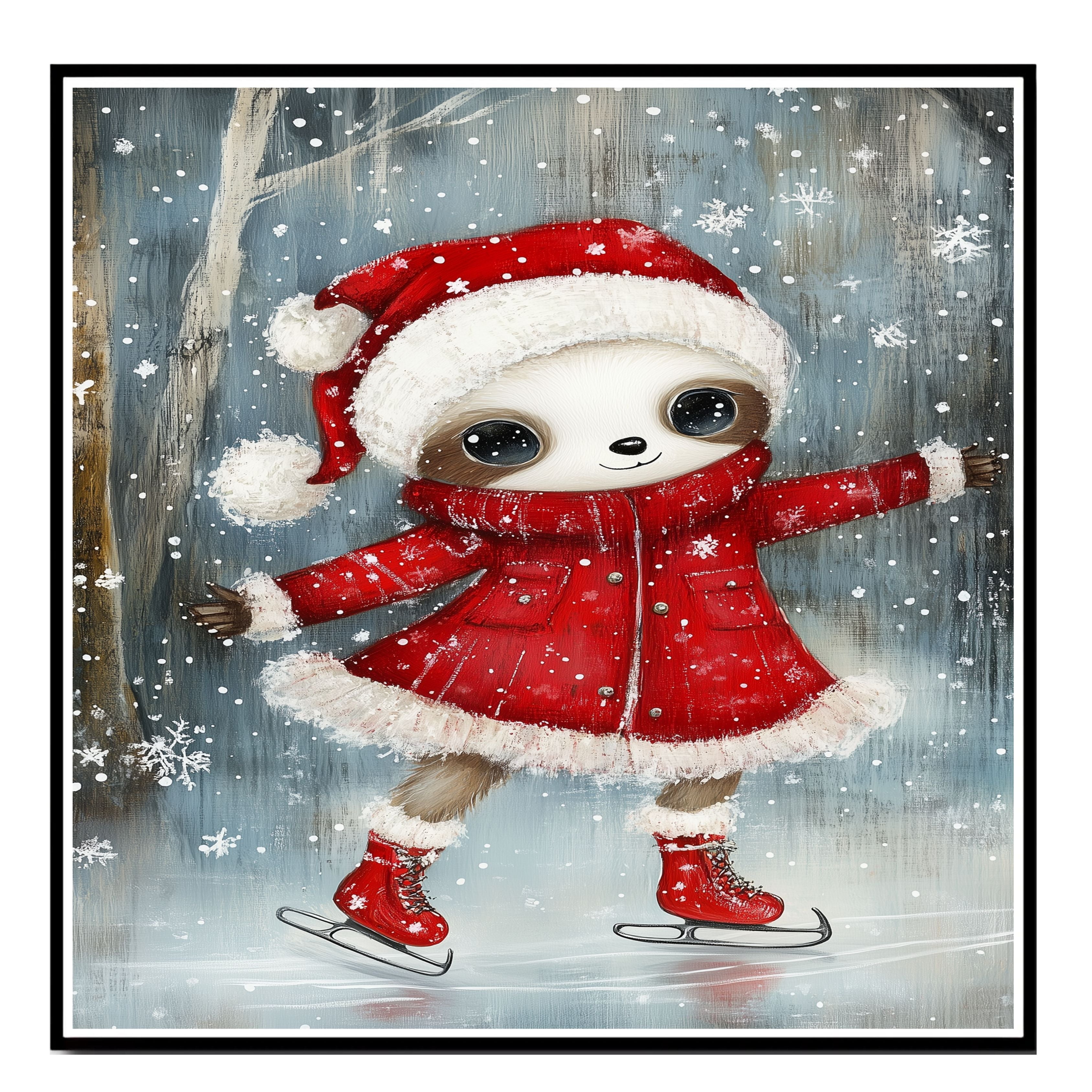 Slow and steady wins the festive race! This whimsical Christmas art print features an adorable sloth ice skating in the most darling red Santa coat and hat, surrounded by falling snow and soft woodland magic. Perfect for children's rooms, woodland nursery themes, or cozy holiday decor, this charming sloth brings a peaceful joy to the winter season. With warm tones and a vintage-style texture, it’s an irresistibly heartwarming holiday print.