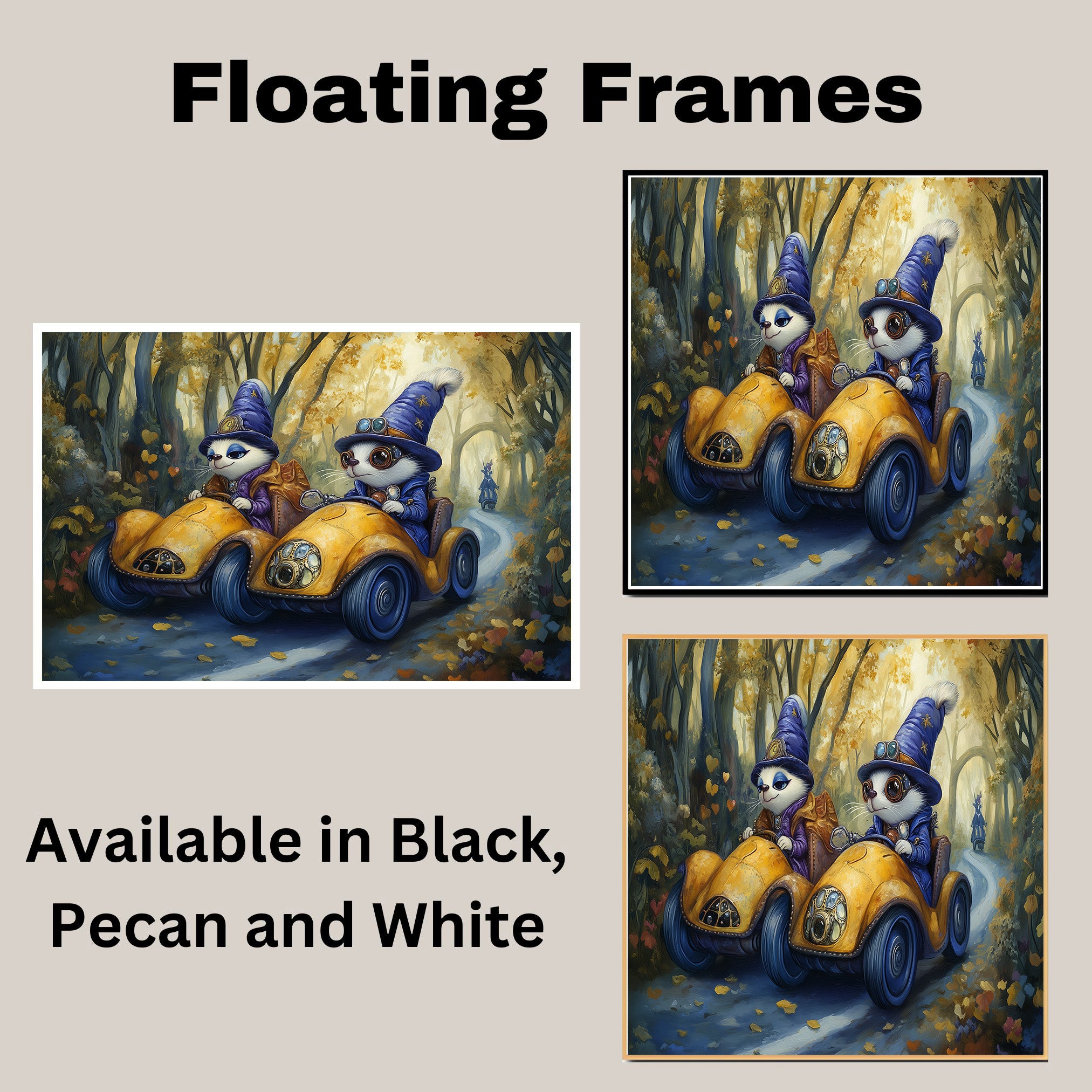 1.5" Thick Floating Framed Canvas: Available in Black, Pecan, and White Grain. Durable shrink-resistant frame. Comes with easy-to-install hanging kits, ready for immediate display.