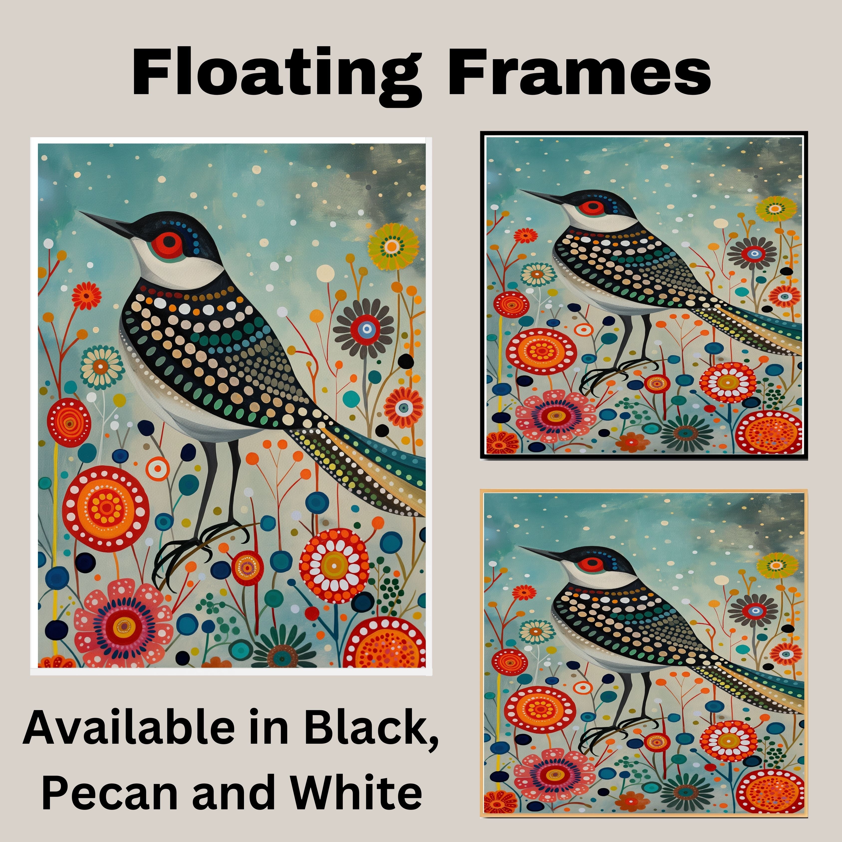 1.5" Thick Floating Framed Canvas: Available in Black, Pecan, and White Grain. Durable shrink-resistant frame. Comes with easy-to-install hanging kits, ready for immediate display.