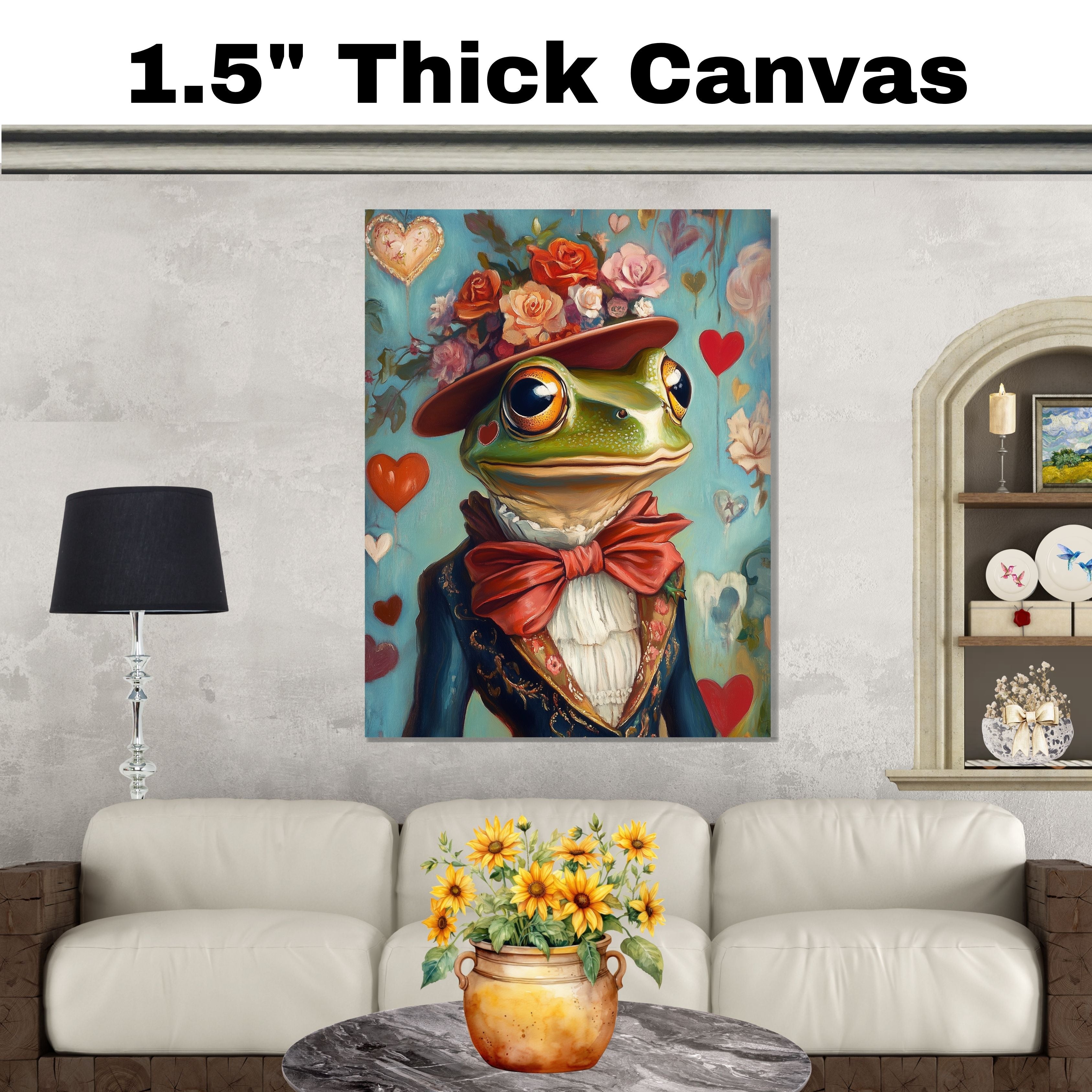Whimsical Romance Canvas Wall Decor Our "Whimsical Romance" Canvas features a charming green frog dressed in a...