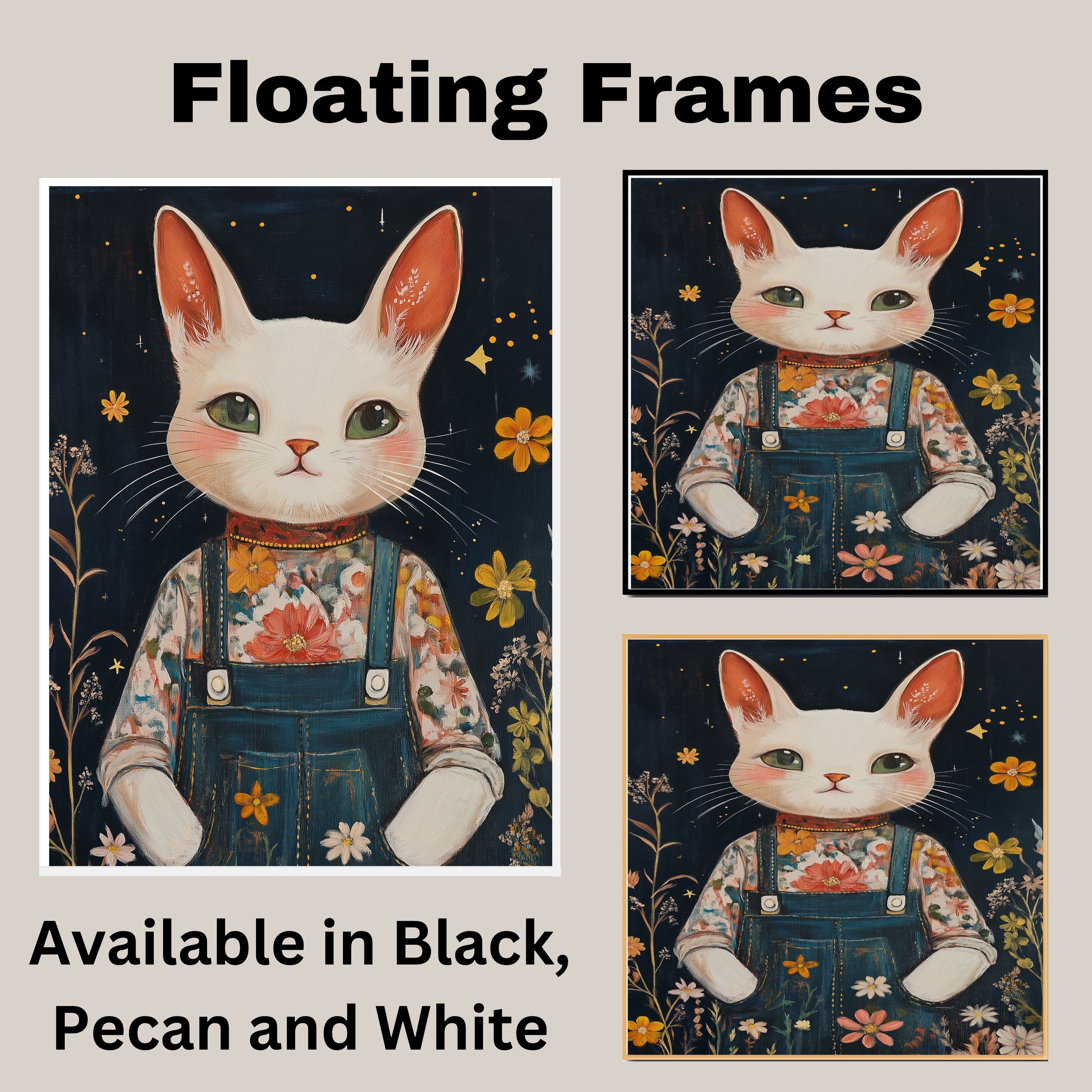 1.5" Thick Floating Framed Canvas: Available in Black, Pecan, and White Grain. Durable shrink-resistant frame. Comes with easy-to-install hanging kits, ready for immediate display.