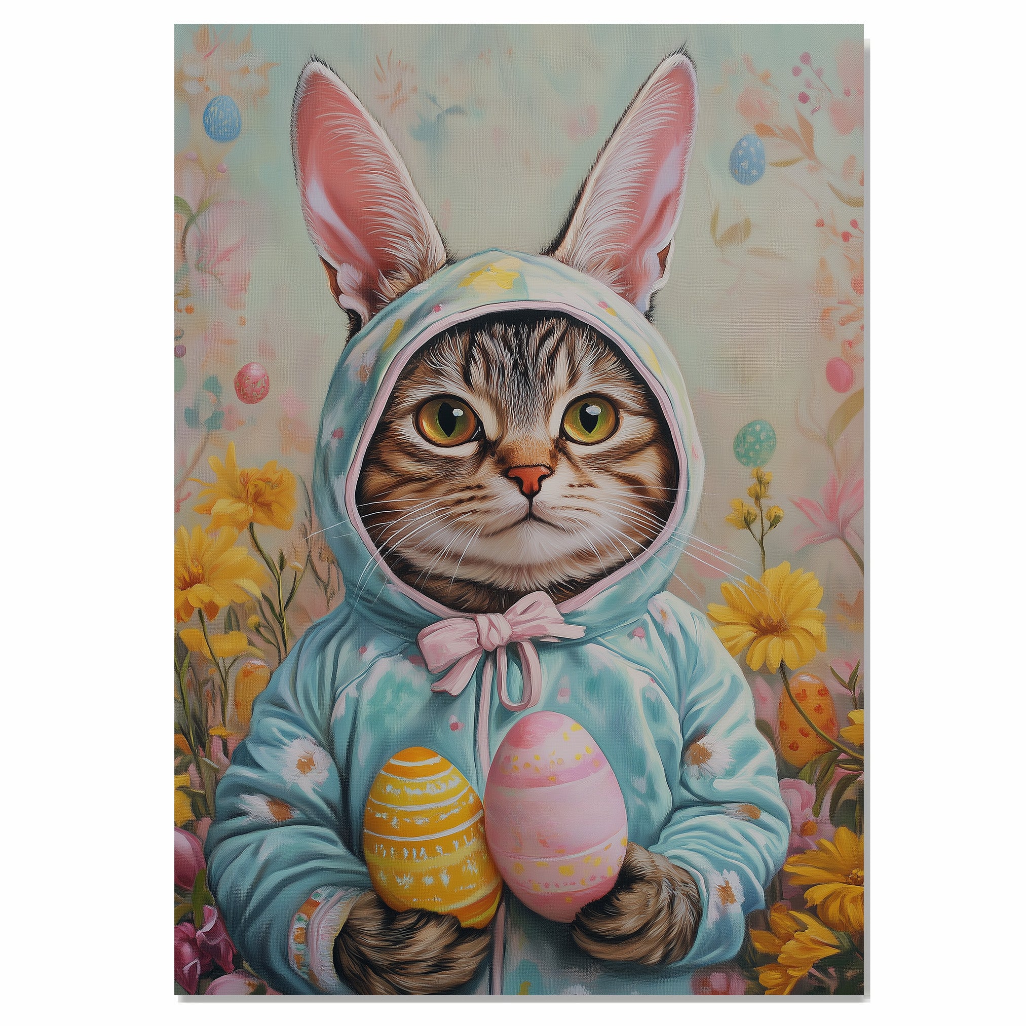Our Whiskers in Bloom Canvas beautifully captures the joy of spring, featuring a charming cat dressed for a joyful seasonal celebration. Adorned in a festive ensemble, this delightful artwork bursts with soft pastels and floral accents, bringing warmth and whimsy to your space. The playful yet elegant scene radiates the magic of the season, making it a perfect addition to your spring decor. Available as a high-quality canvas wrap, framed print, or rolled artwork, this enchanting piece is a wonderful gift for cat lovers and those who cherish the beauty of spring.