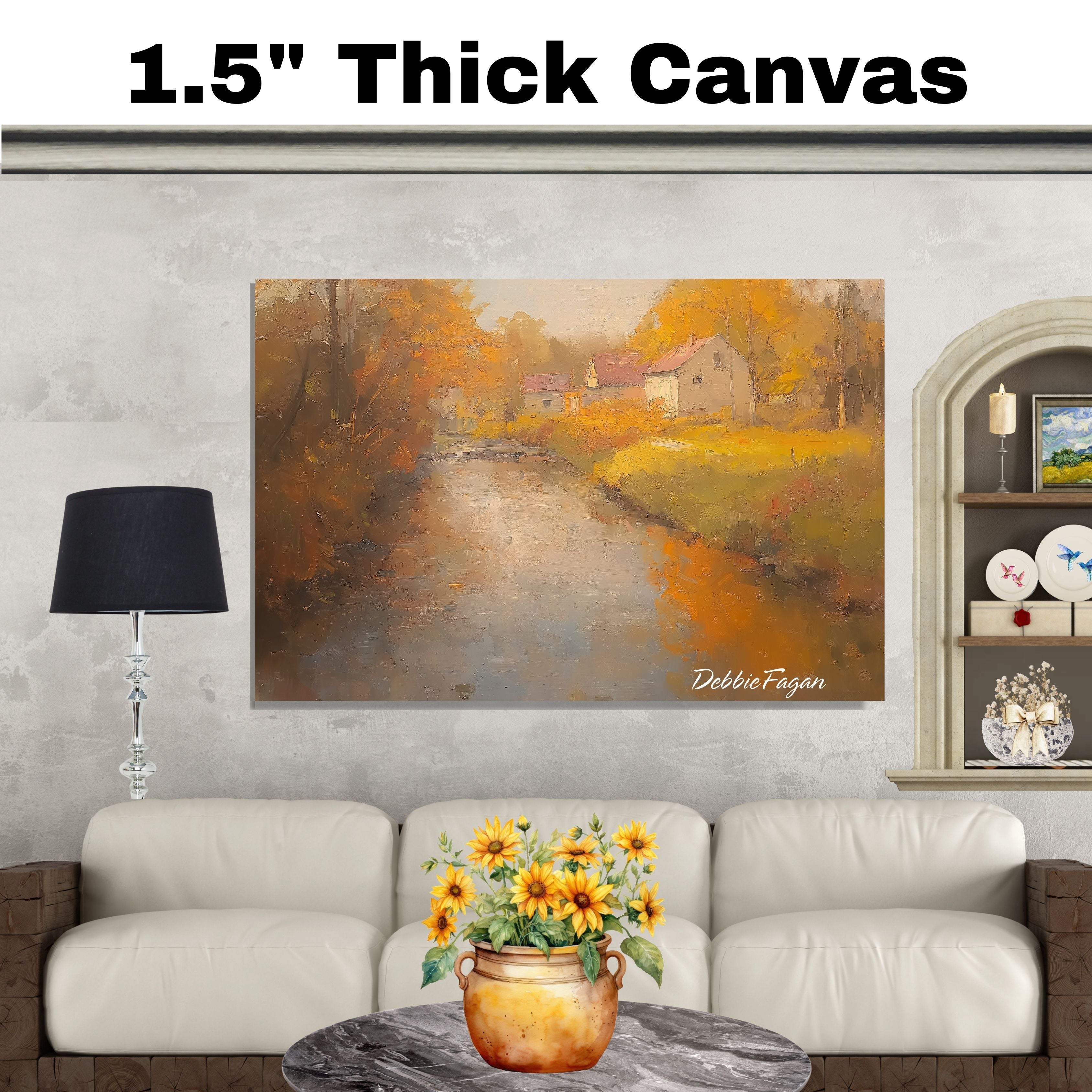 Whispers of Autumn – Rustic River Scene in Warm Tones on Ready to Hang 1.5" Thick Canvas Wrap, Floating Framed Canvas, Flat Rolled Canvas