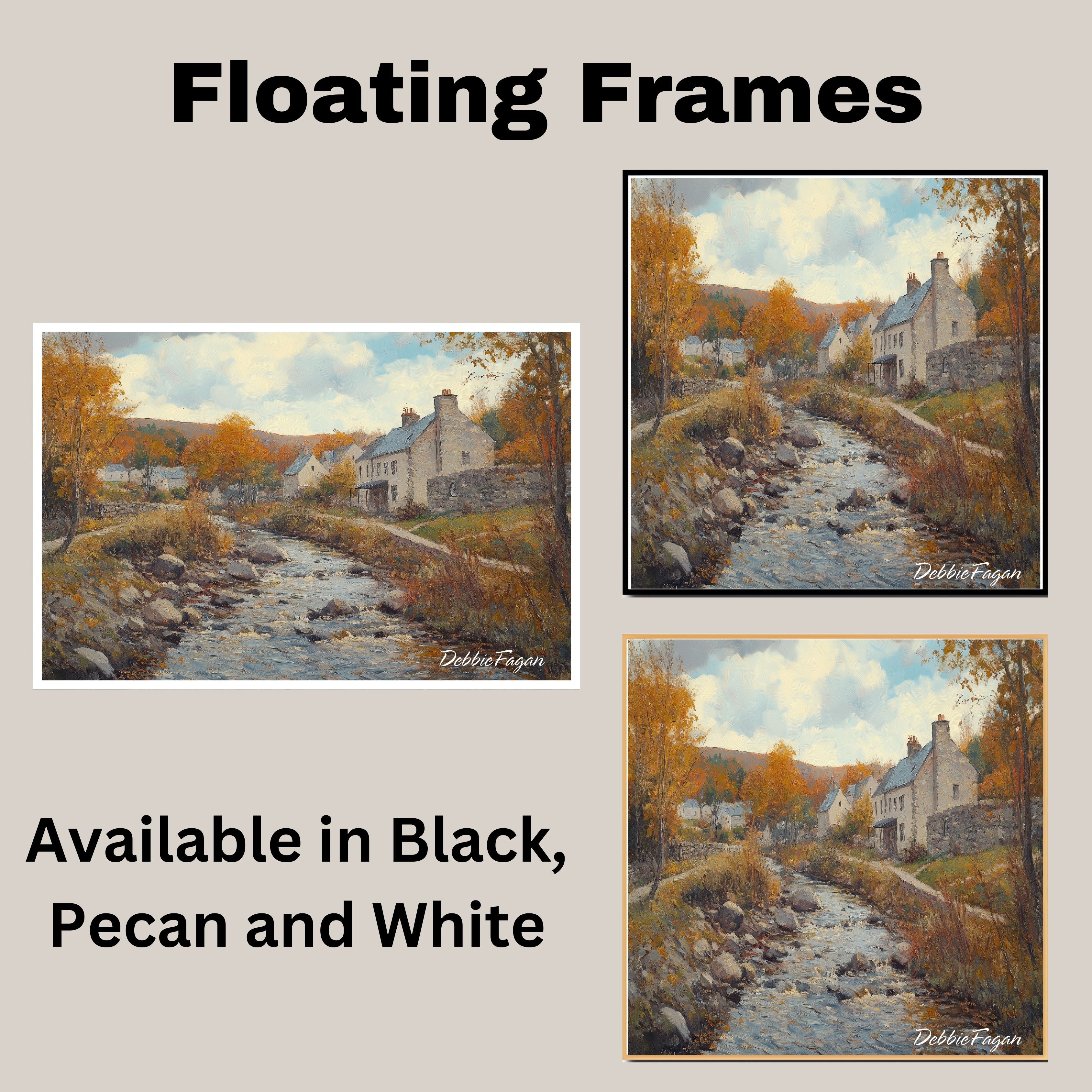 1.5" Thick Floating Framed Canvas: Available in Black, Pecan, and White Grain. Durable shrink-resistant frame. Comes with easy-to-install hanging kits, ready for immediate display.
