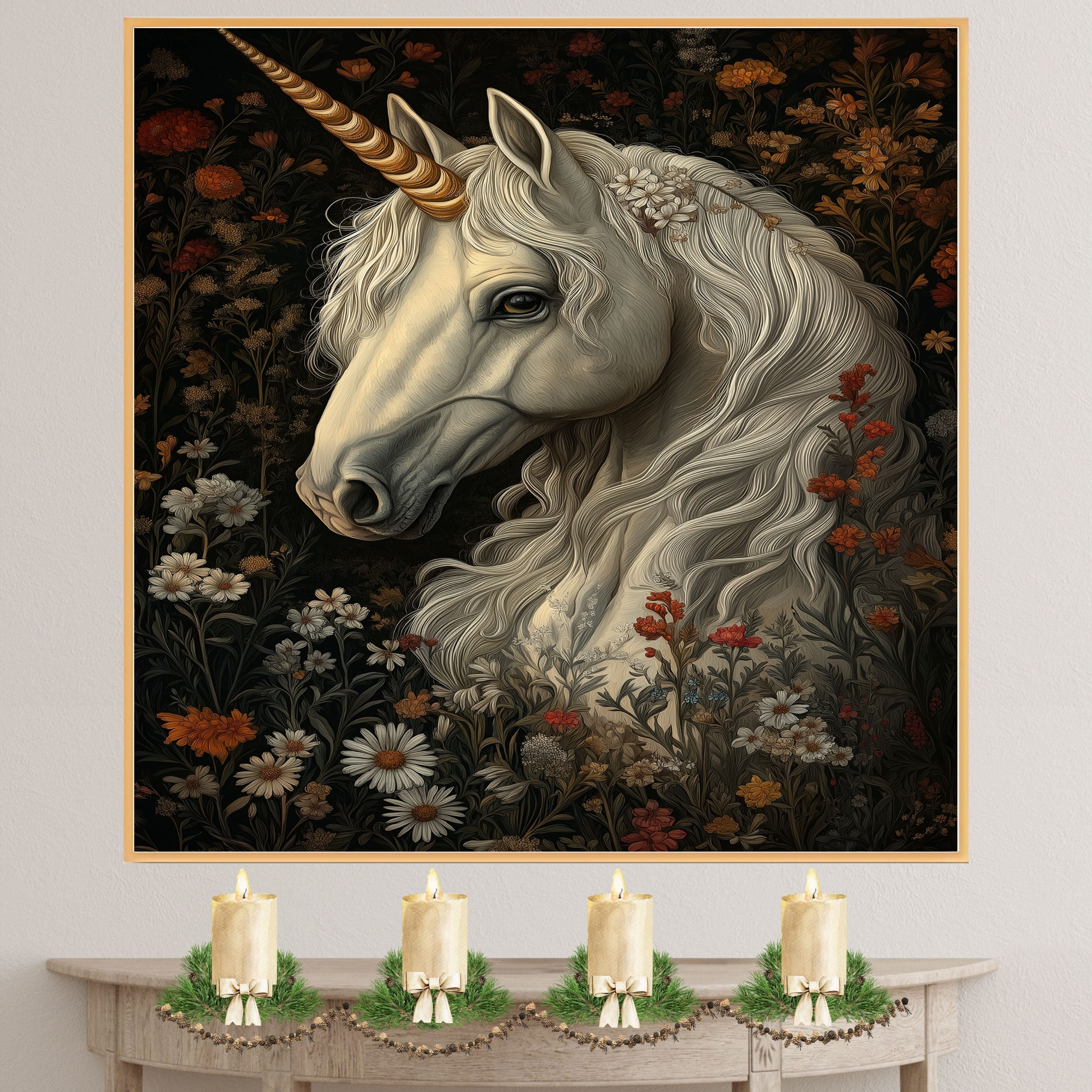 Step into a world of enchantment with this stunning White Unicorn painting, featuring a majestic unicorn surrounded by delicate wildflowers and lush foliage. With exquisite details and a serene magical atmosphere, this artwork is perfect for creating a peaceful and imaginative space in your home, office, or nursery. A wonderful gift for fantasy lovers, horse enthusiasts, or anyone who cherishes beauty and wonder.