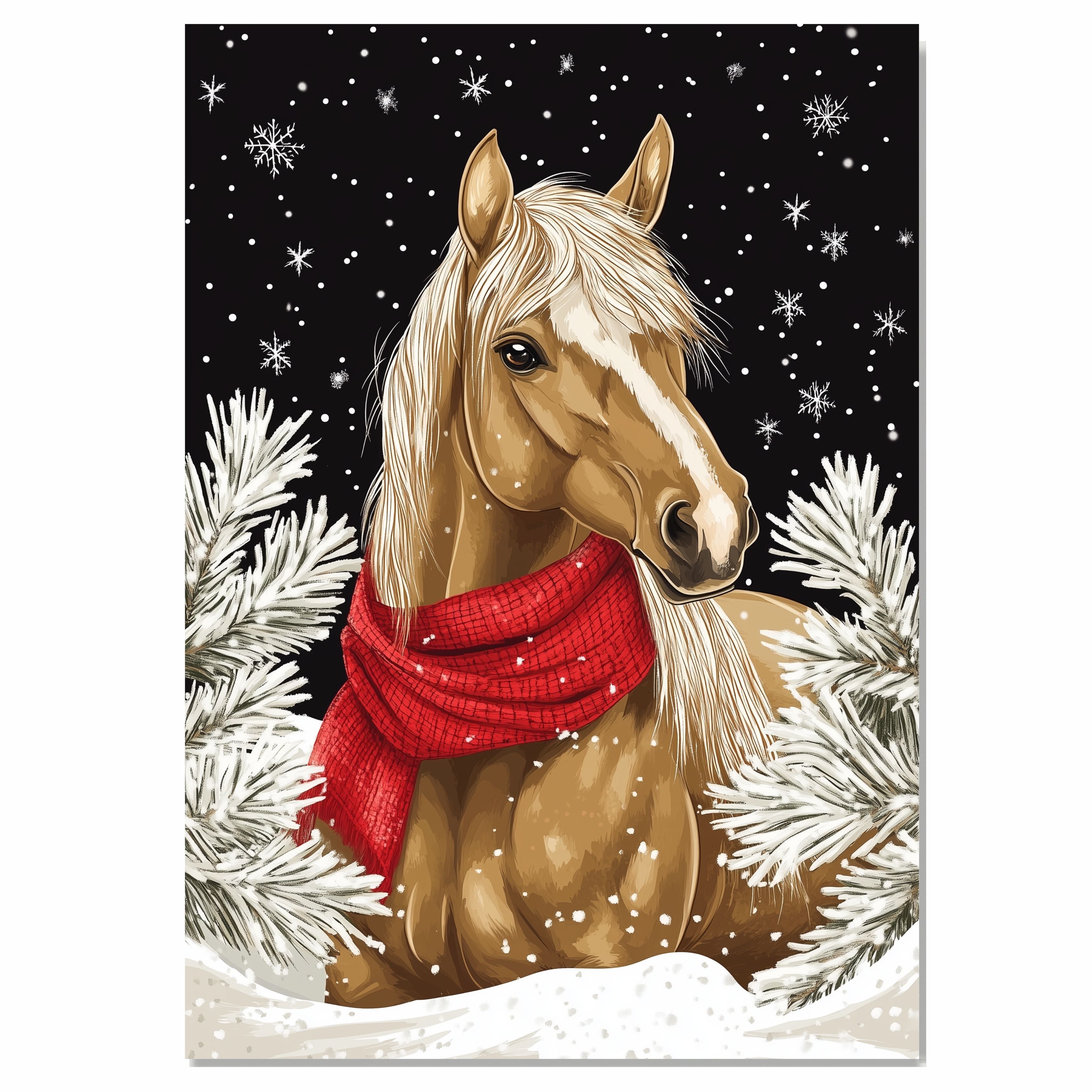 Our Winter Whisper Horse Canvas Wall Decor adds a touch of serene elegance and winter warmth to your space, showcasing a majestic horse wrapped in a vibrant red scarf against a peaceful snowy landscape. Available on a 1.5" thick canvas wrap, floating framed canvas, or as a flat rolled canvas, this beautiful piece titled Winter Whisper Horse captures the tranquil beauty of winter. With its timeless charm and seasonal grace, this artwork is perfect for enhancing your holiday decor and serves as a stunning focal point in any room, inviting a sense of calm and natural beauty into your home.