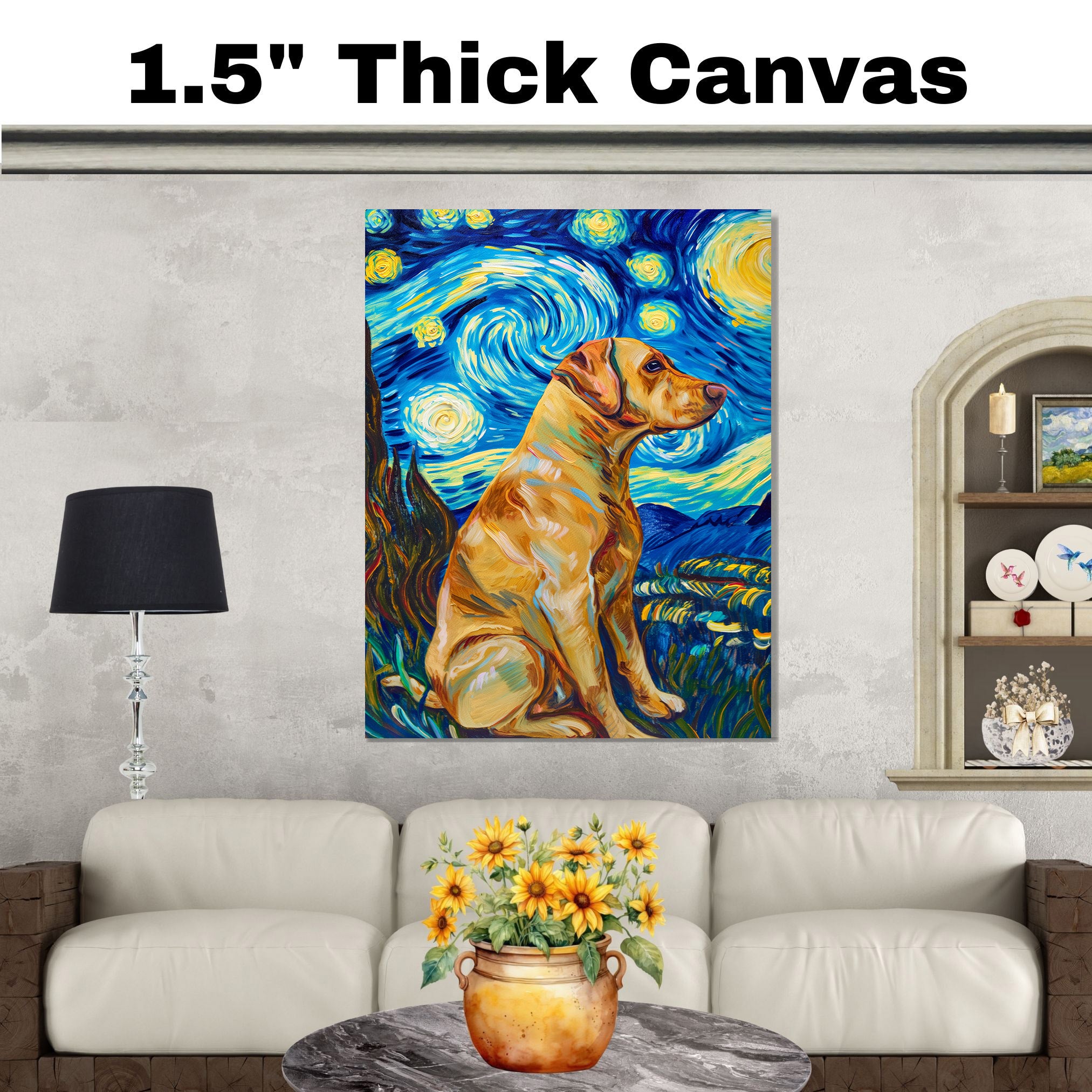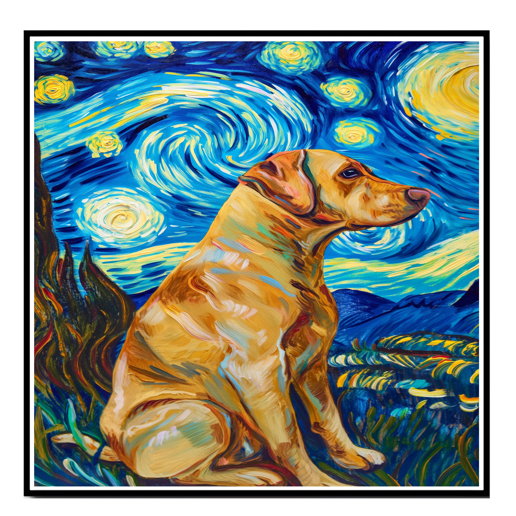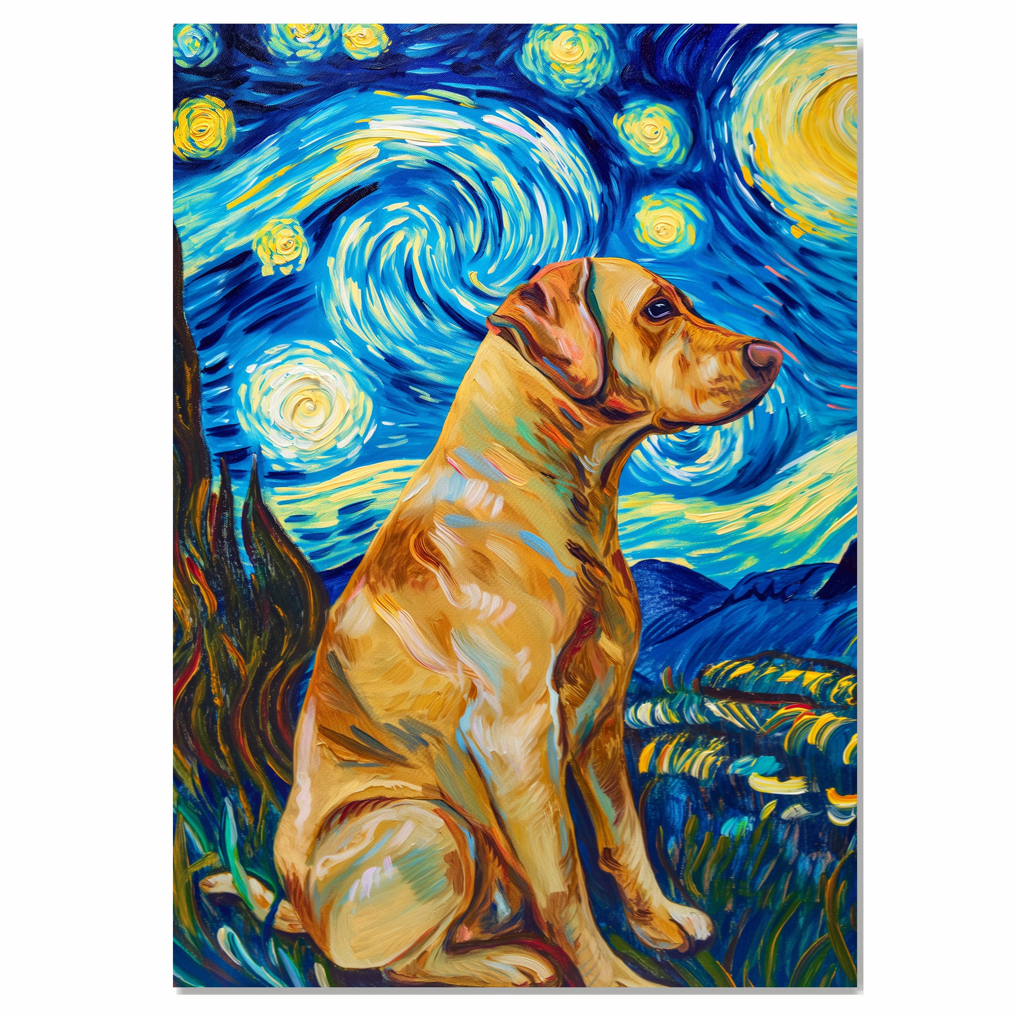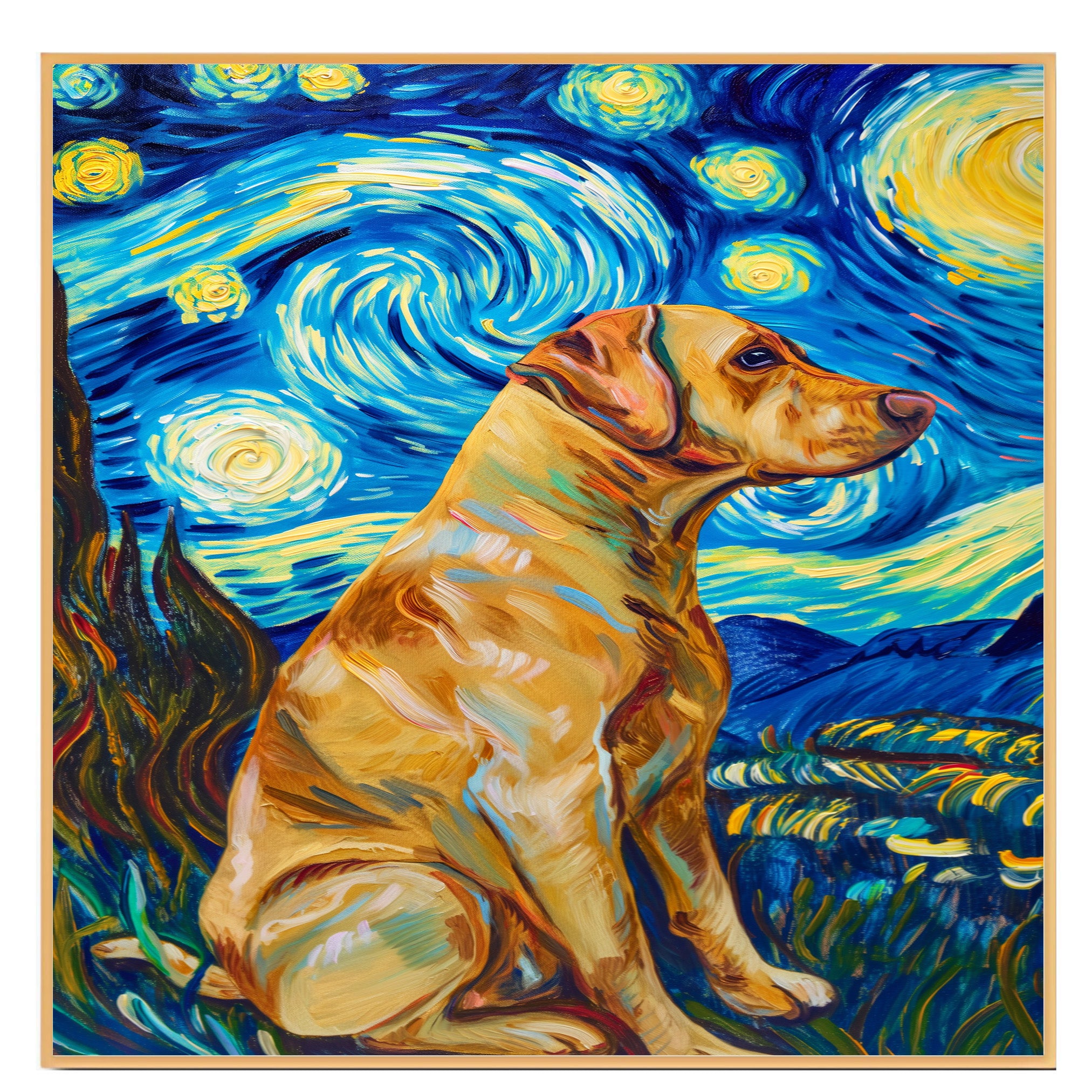 This expressive Yellow Labrador painting reimagines Van Gogh’s Starry Night with a loyal companion at its heart. Swirling skies and bold brushstrokes bring warmth and emotion to this unique piece, perfectly capturing the Labrador’s calm presence and deep gaze. Ideal for dog lovers, art collectors, or anyone looking to add colorful, heartwarming energy to their home or office.