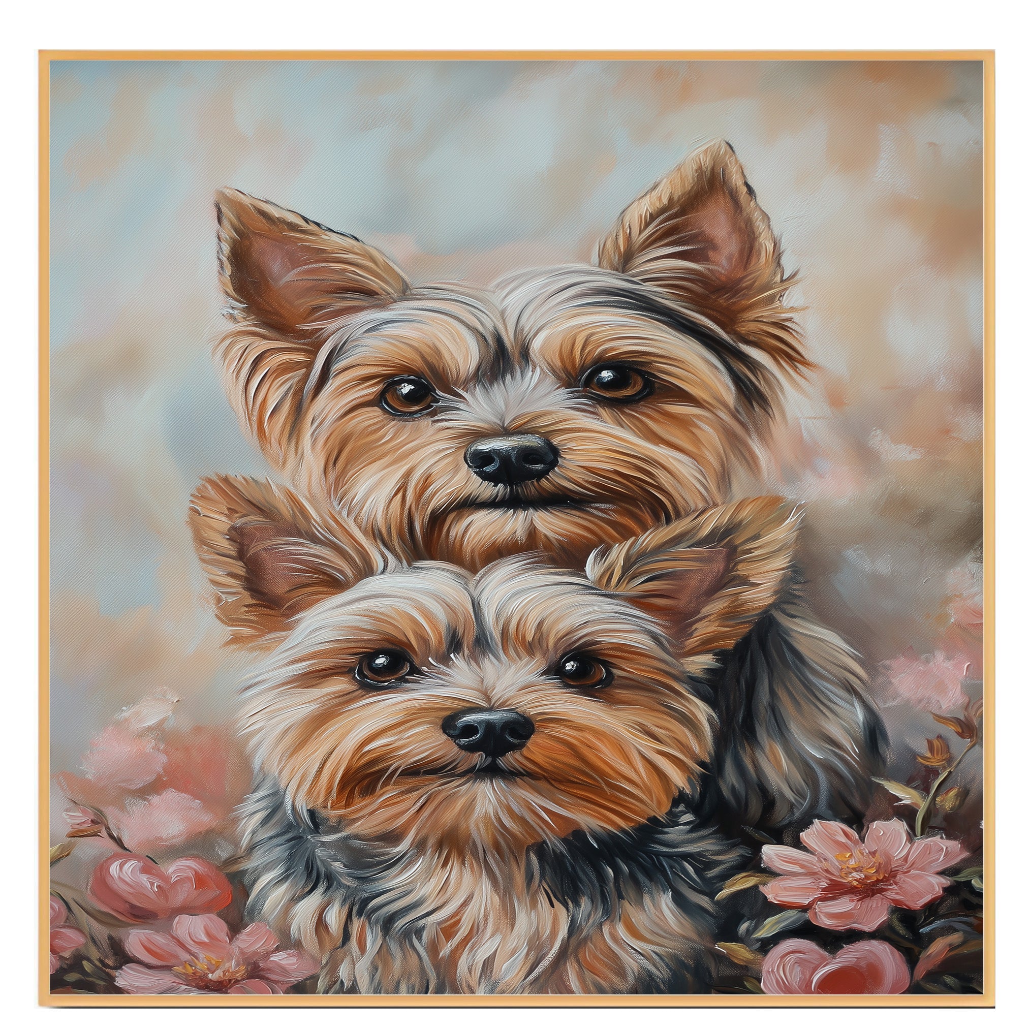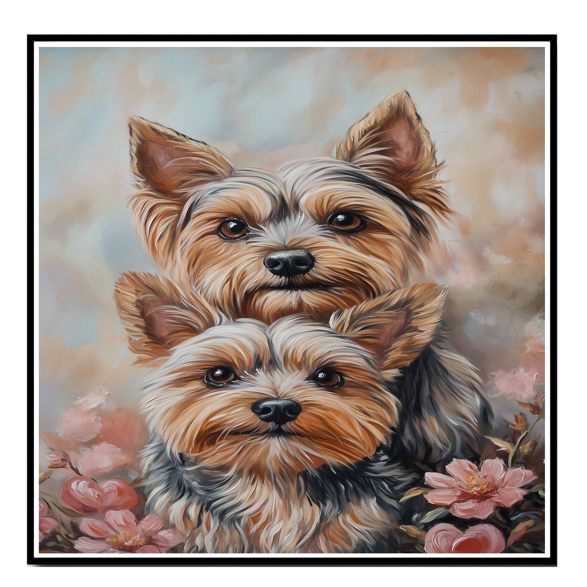 Celebrate charm and companionship with this Yorkshire Terrier couple painting. A sweet, loving tribute to loyal pets, perfect for dog lovers and cozy home decor.