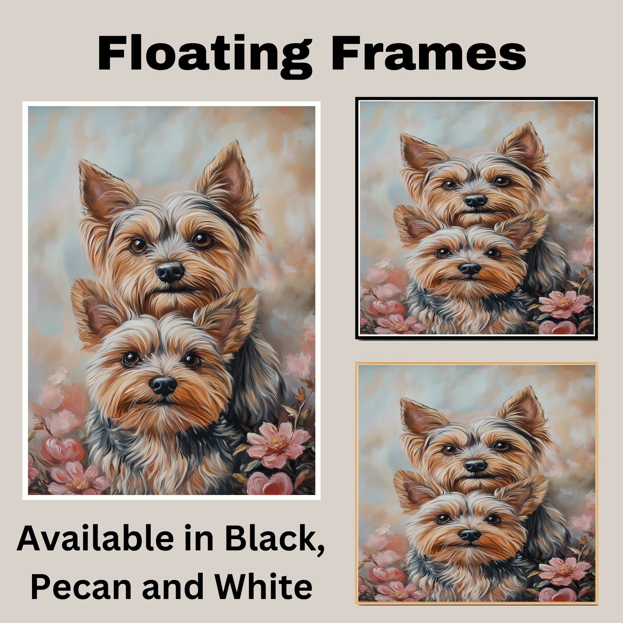 Yorkshire Terrier Couple Painting Gift for Dog Lovers and Cozy Home Accent on Ready to Hang 1.5" Thick Canvas Wrap, Floating Framed Canvas, Flat Rolled Canvas