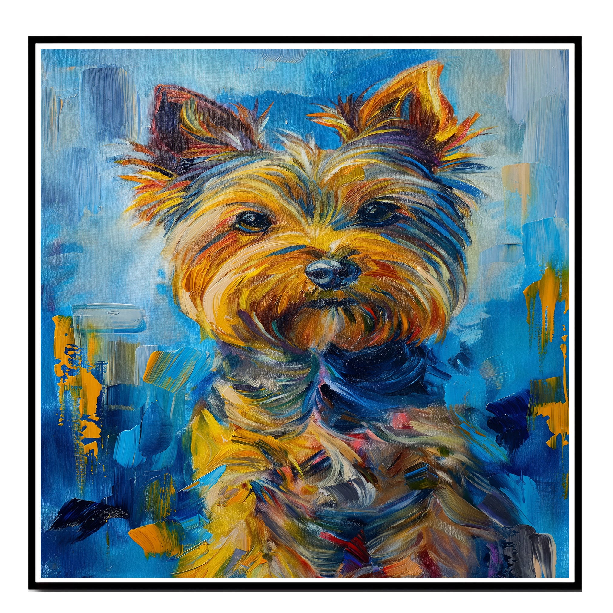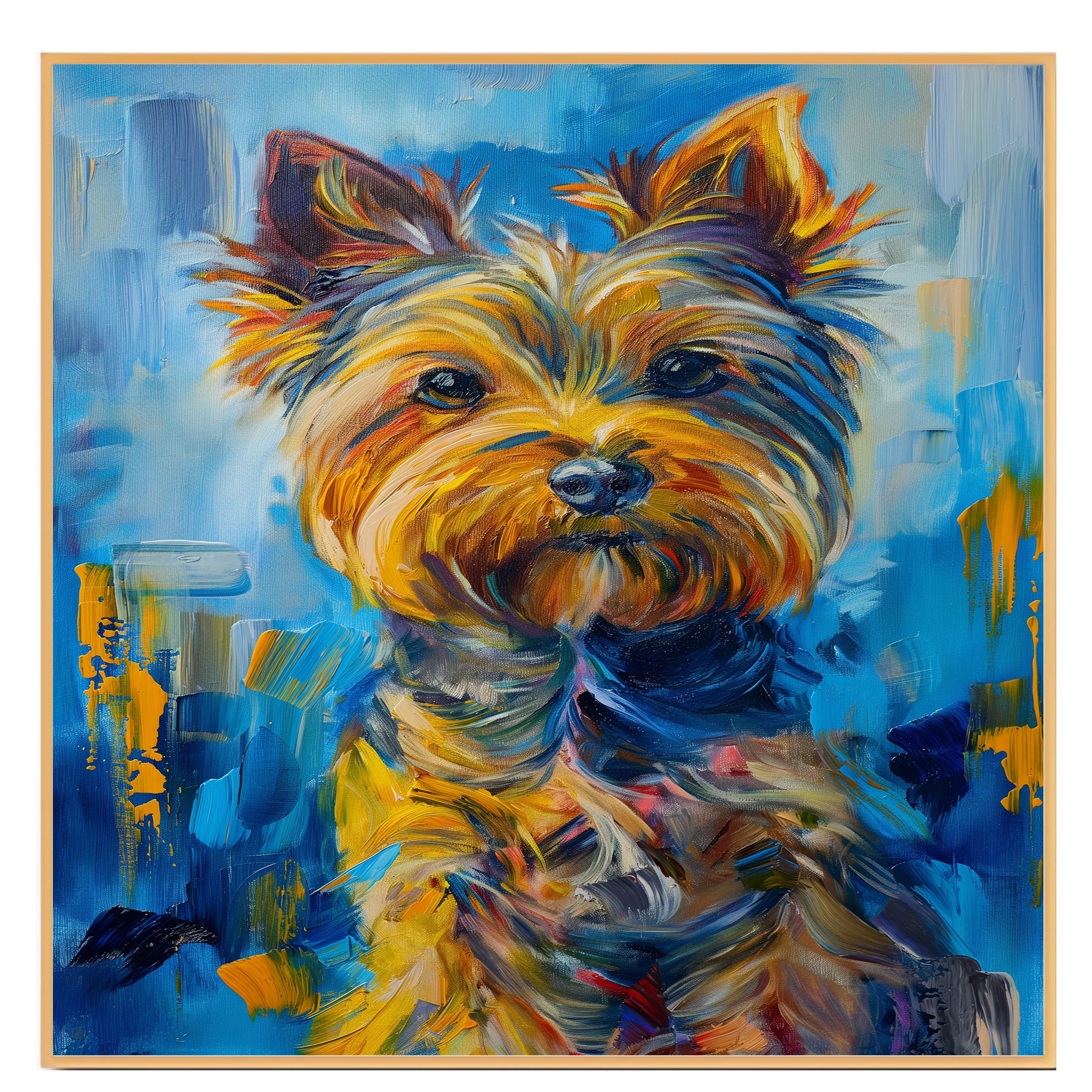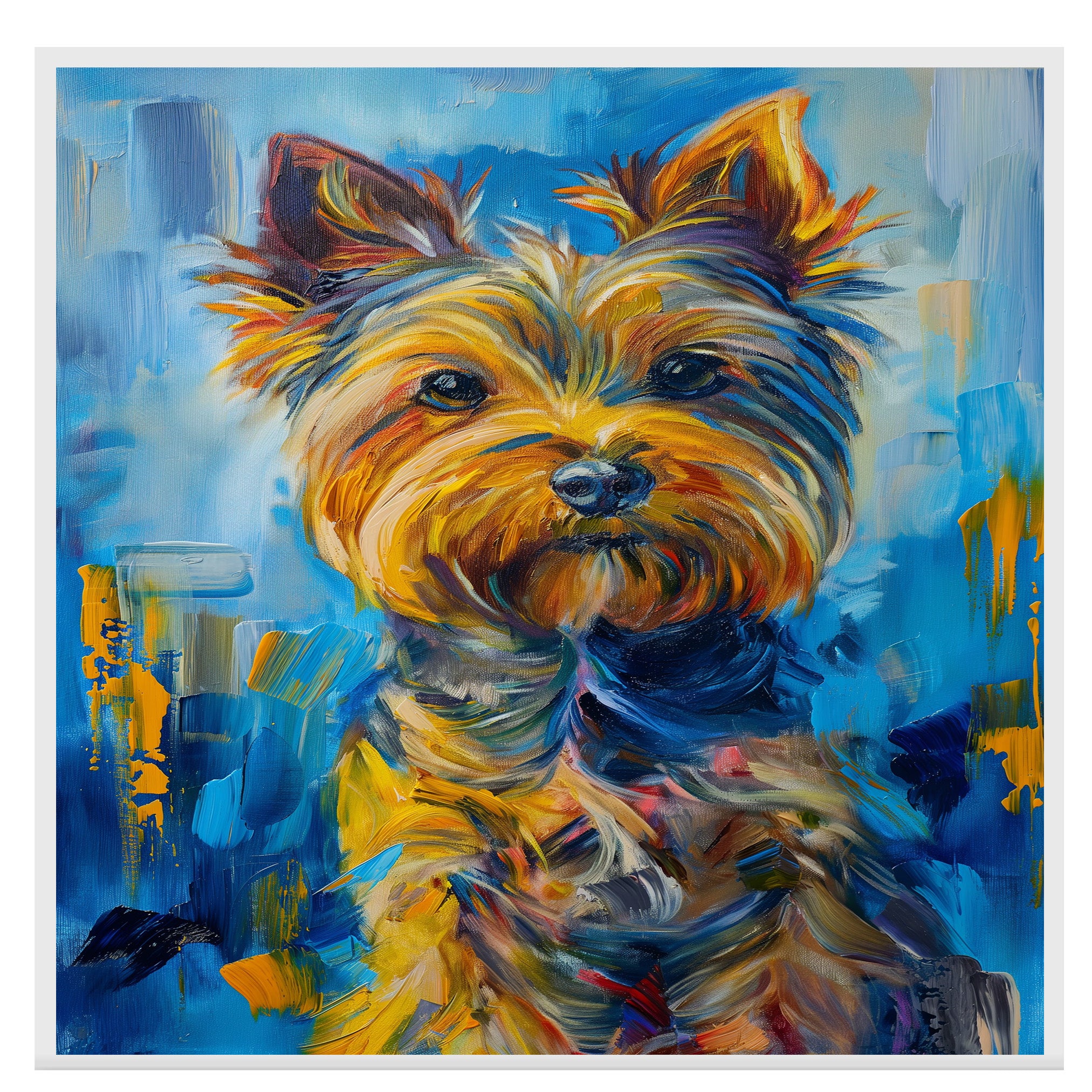 Bring charm and character to your space with this expressive Yorkshire Terrier painting in the iconic style of Van Gogh’s Starry Night. Featuring swirling blue skies, bold brushstrokes, and a lifelike Yorkie with rich golden fur, this artwork merges fine art with canine devotion. Ideal for dog lovers, collectors, and fans of vibrant impressionist art, this piece adds personality, warmth, and visual energy to any room.