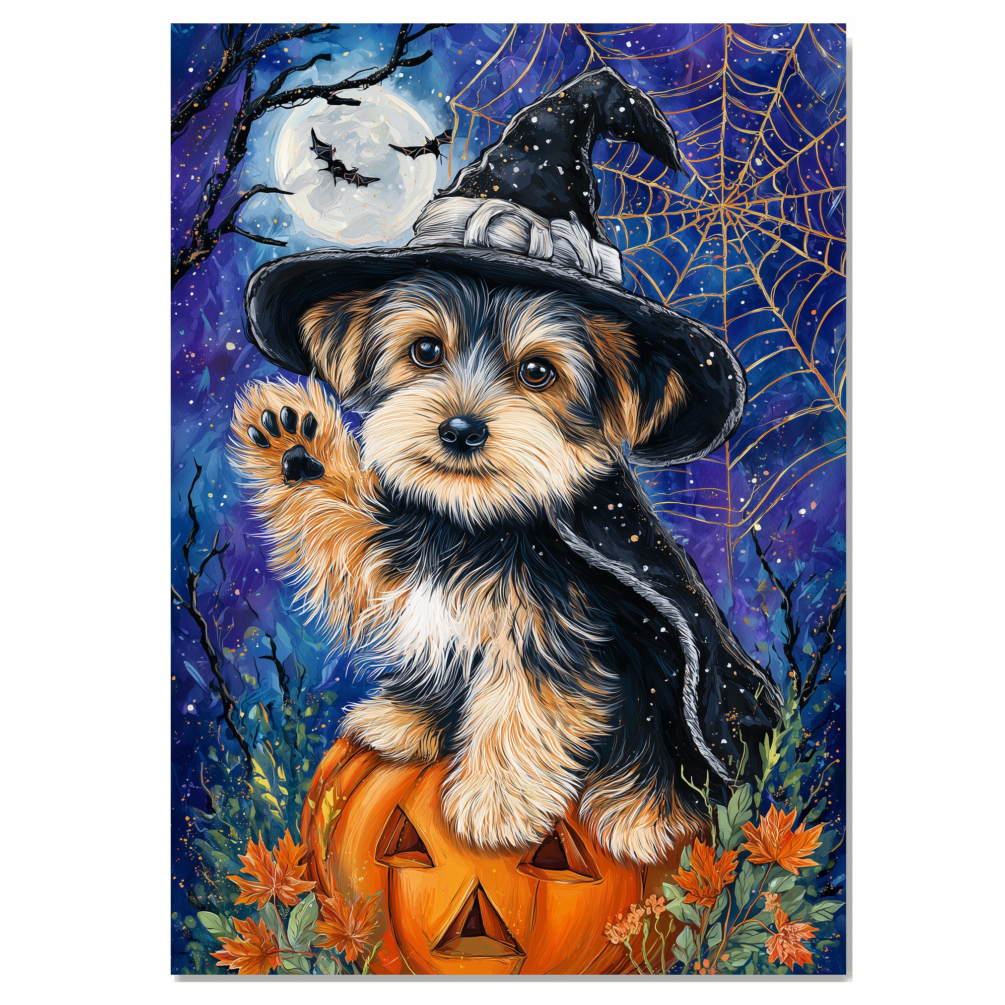 Add Halloween charm to your home with this Yorkshire Terrier puppy canvas wall art. Featuring an adorable...